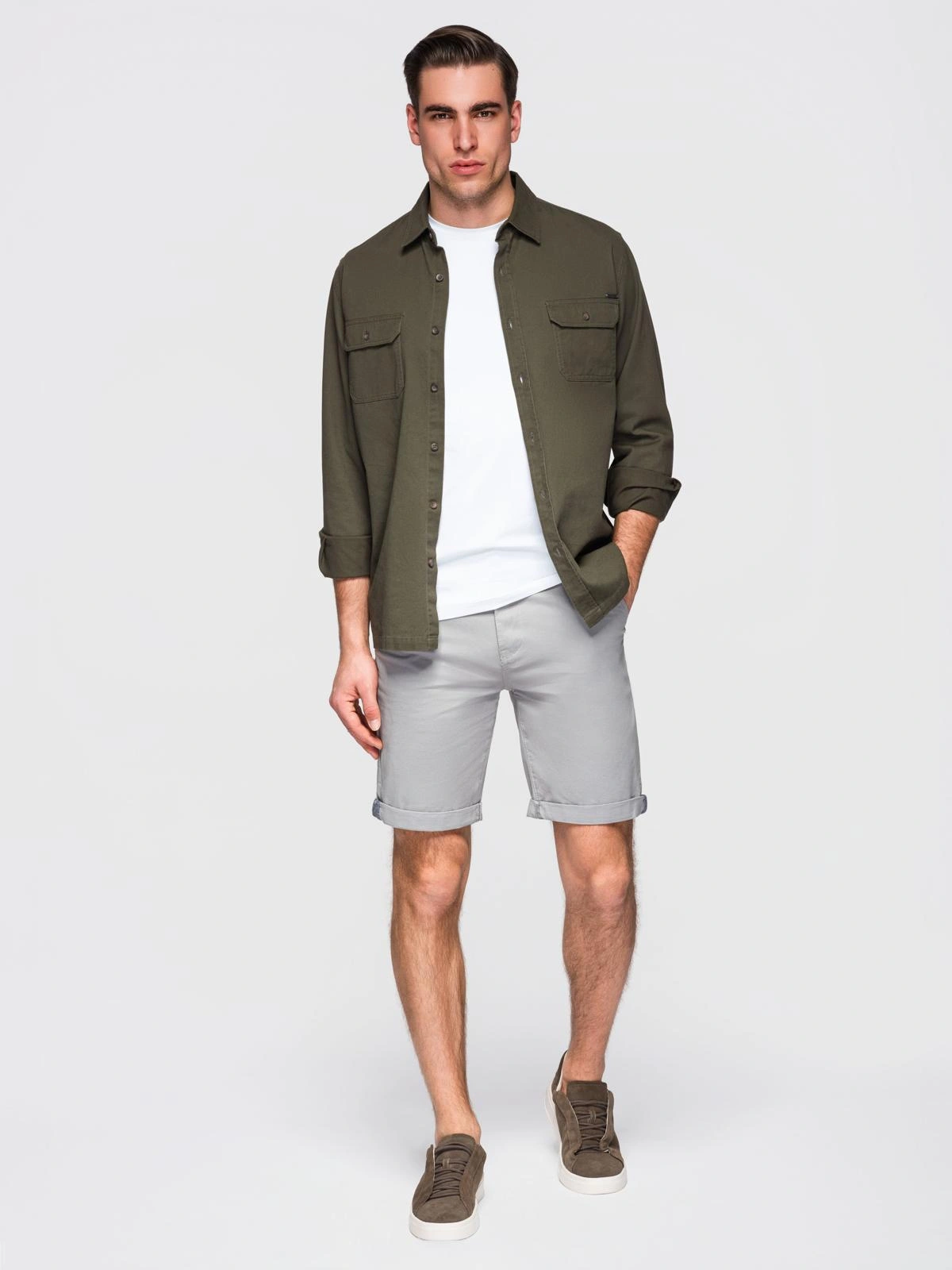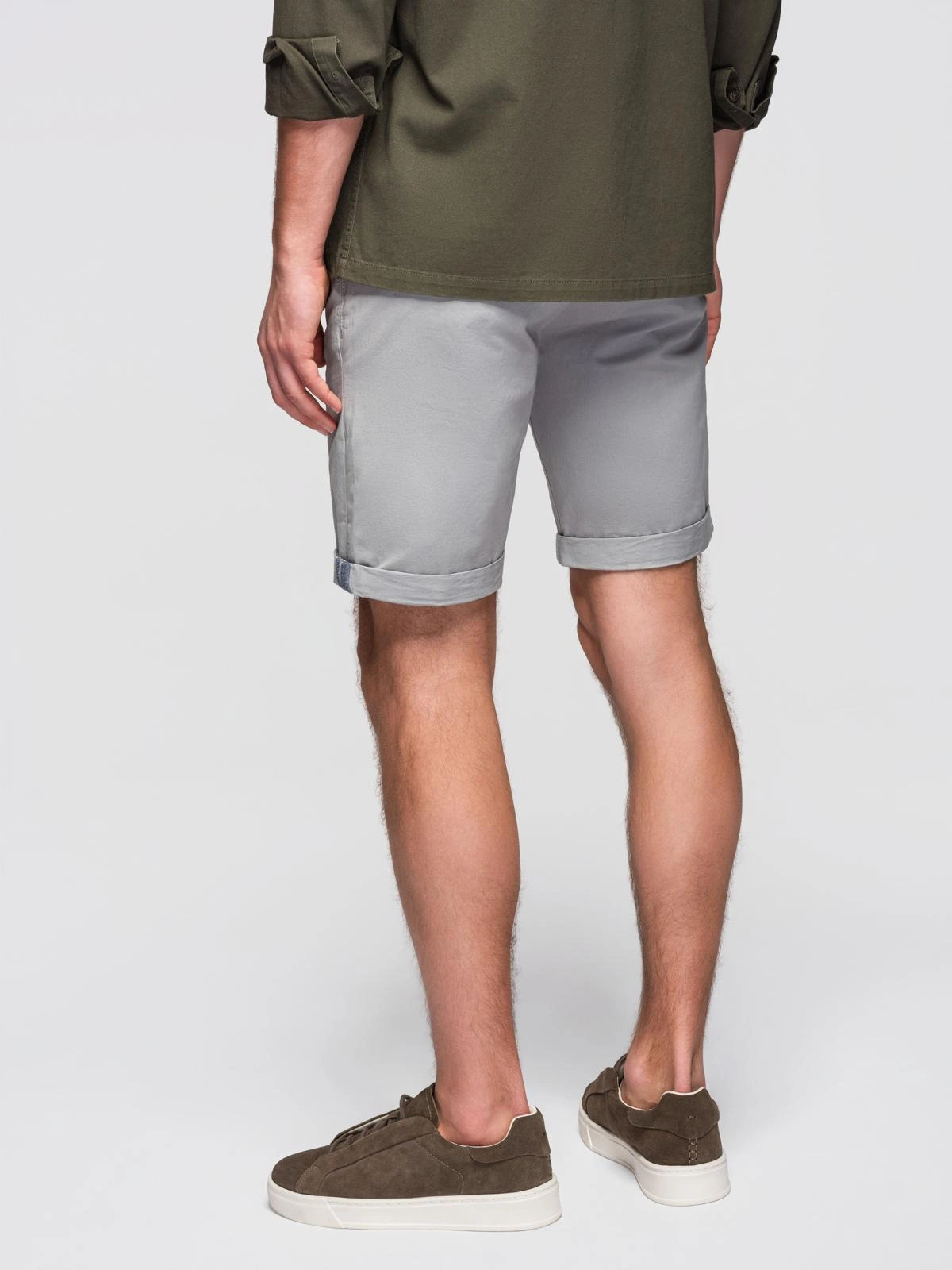 Szorty klasyczne męskie chino z podwiniętą nogawką - szare V12 OM-SRCS-0197