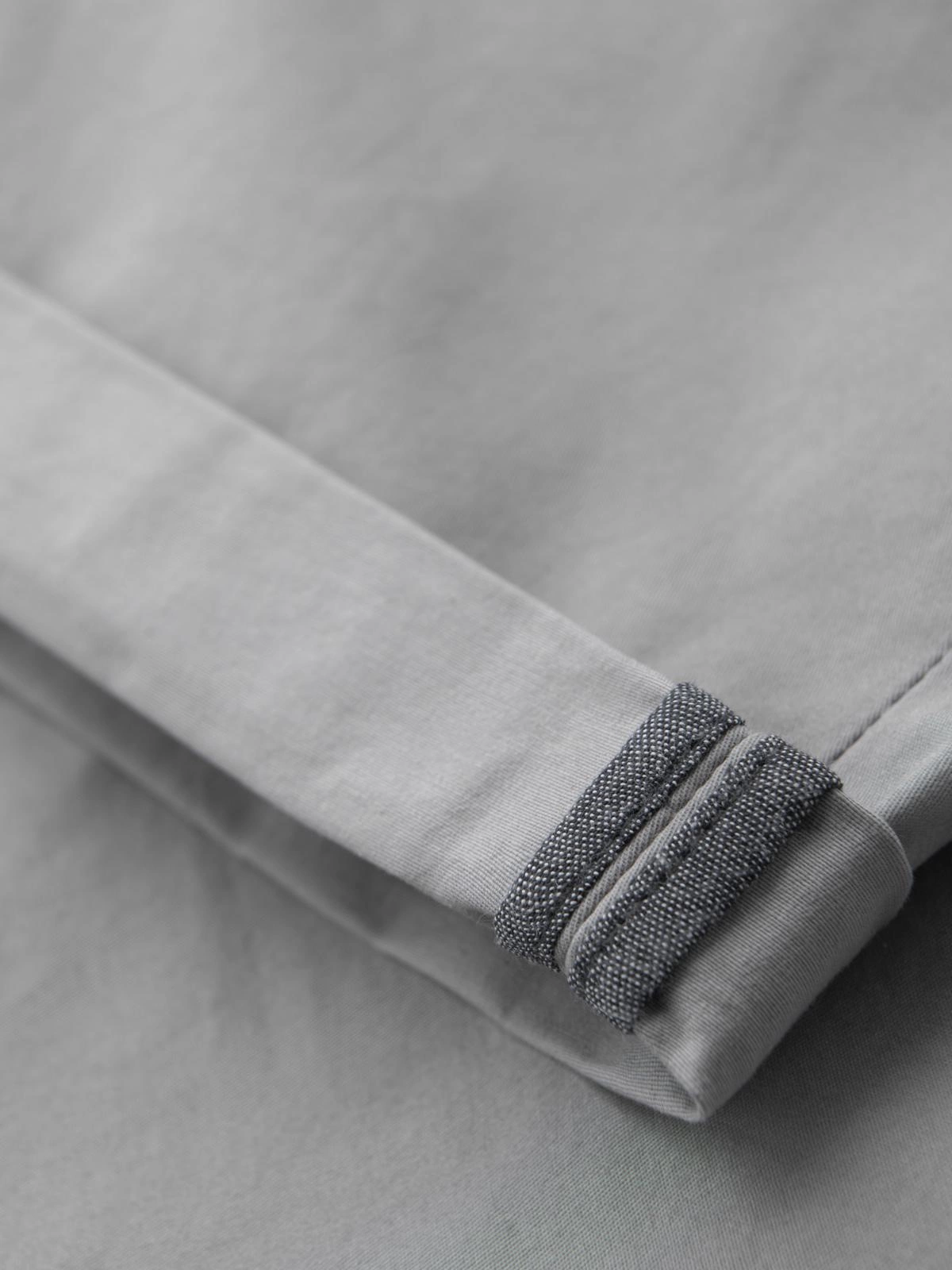 - podwinięta nogawka z lamówką chambray blue