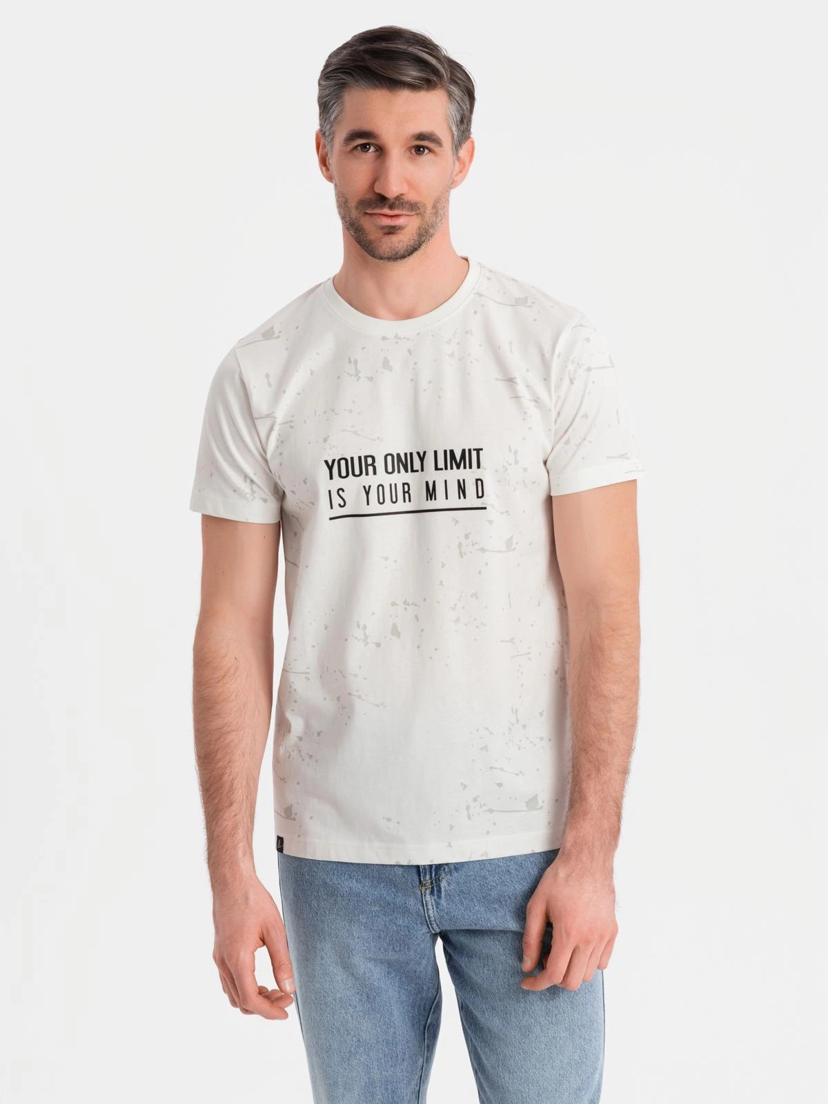 Męski t-shirt z nadrukiem i okrągłym dekoltem – biały V1 OM-TSFP-0187