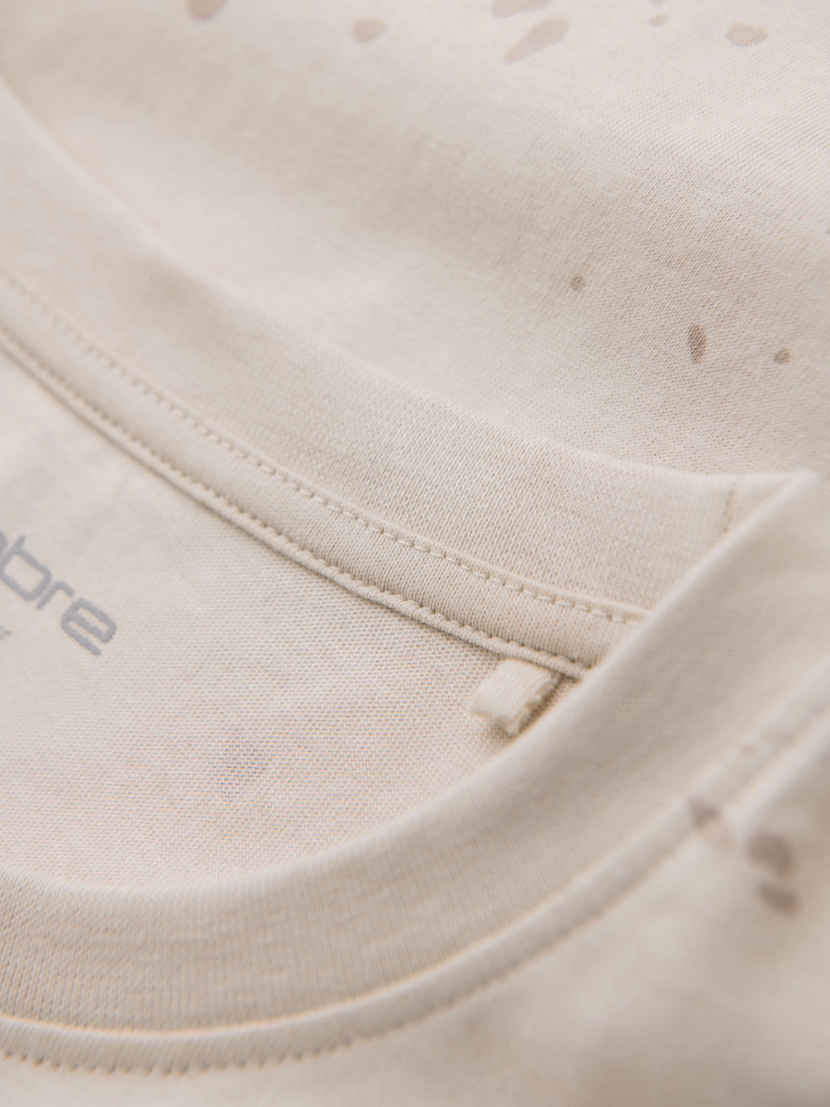 T-shirt męski z nadrukiem i okrągłym dekoltem – kremowy V2 OM-TSFP-0187