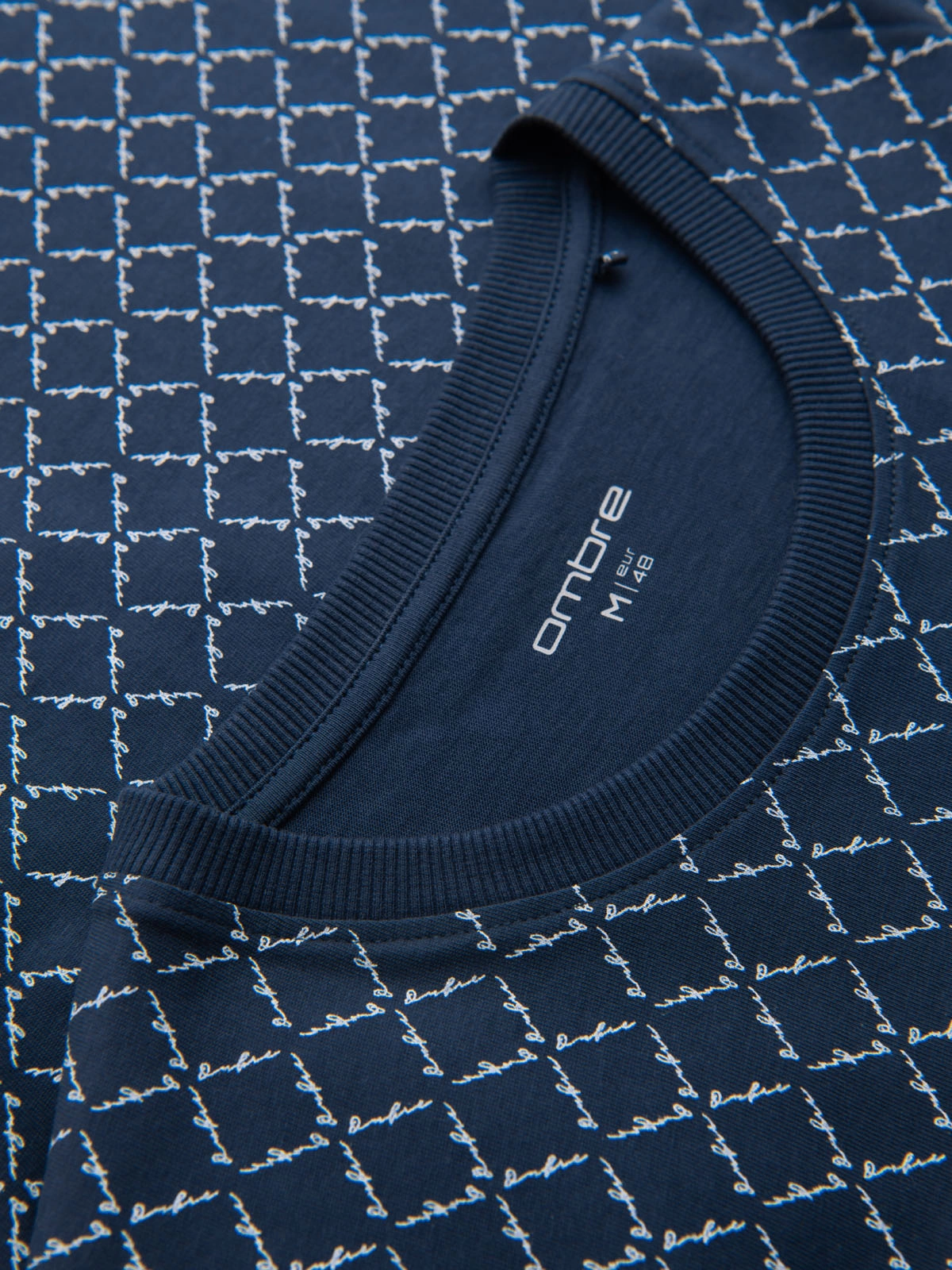 - Męska koszulka dzianinowa z nadrukiem full print – granatowa V1 OM-TSFP-0250