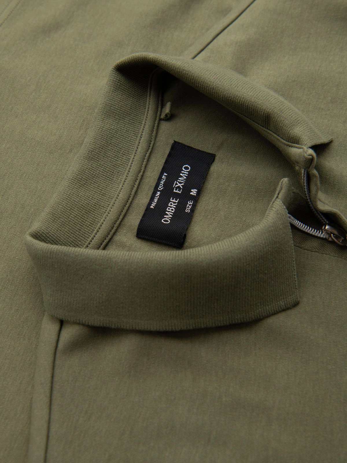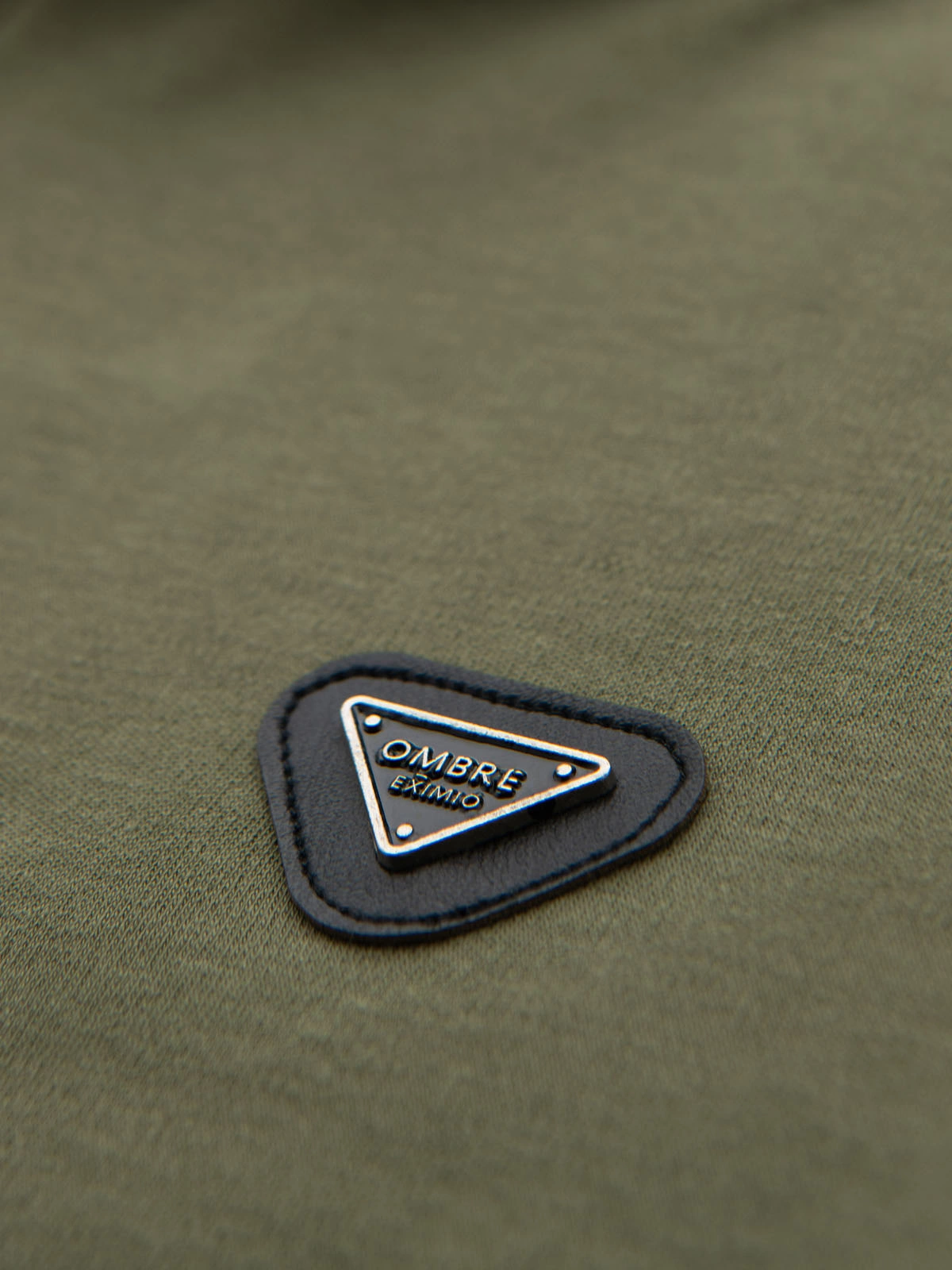 Męska koszulka polo z dekoltem na zamek - oliwkowa V5 OM-POSS-0148
