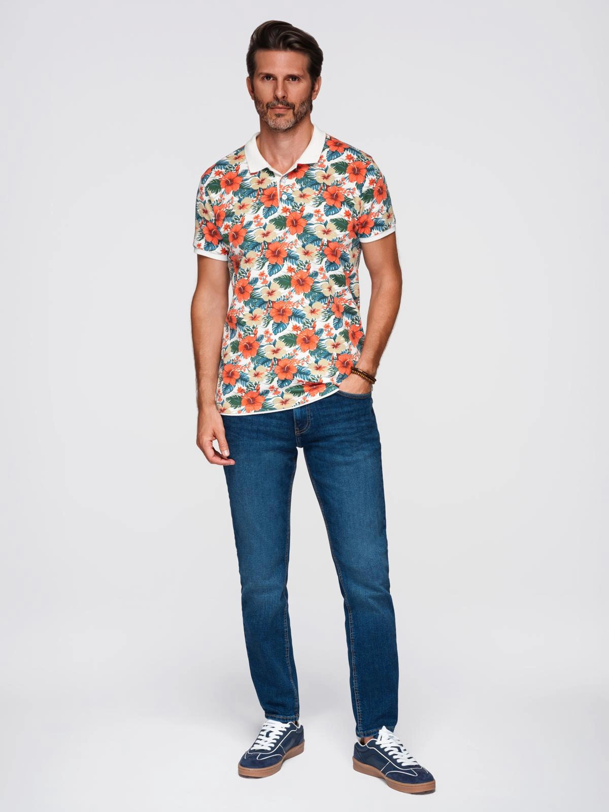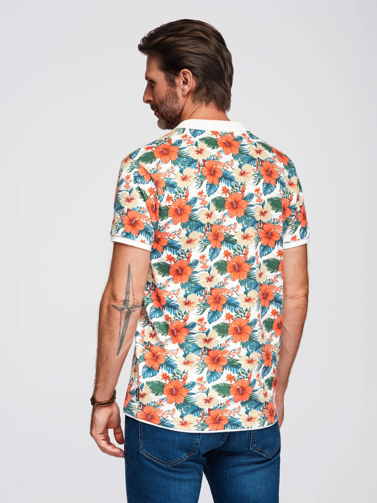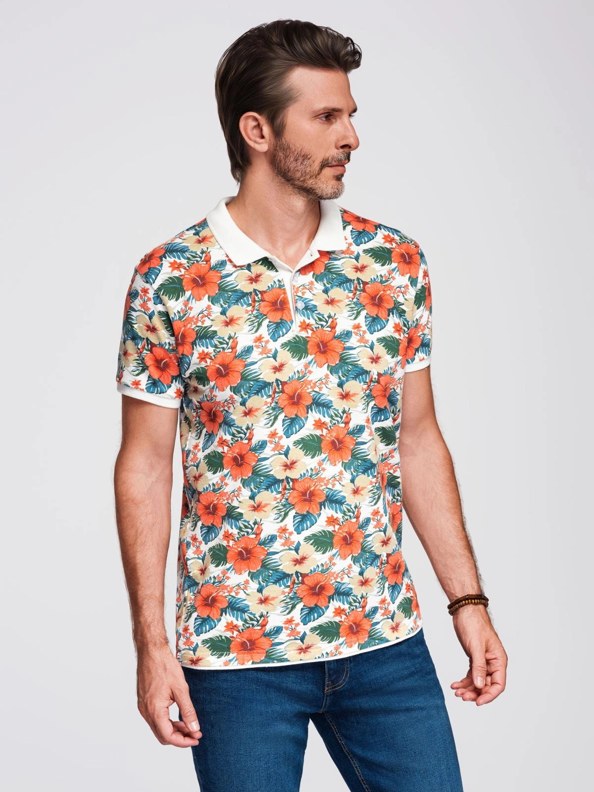 Koszulka polo bawełniana z nadrukiem w kwiaty – biała V1 OM-POSS-0149