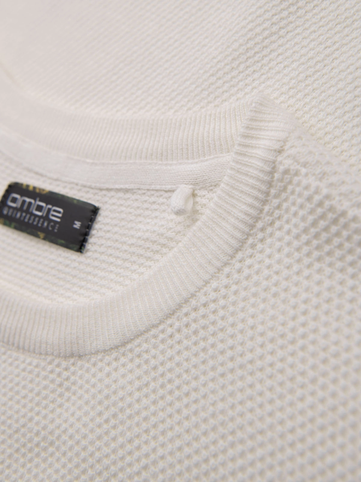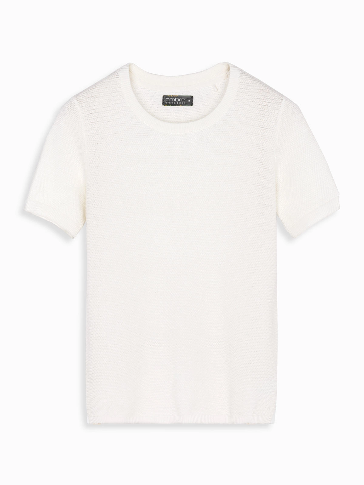 Dzianinowa koszulka męska z delikatną drobną strukturą - biała V1 OM-TSCT-0244