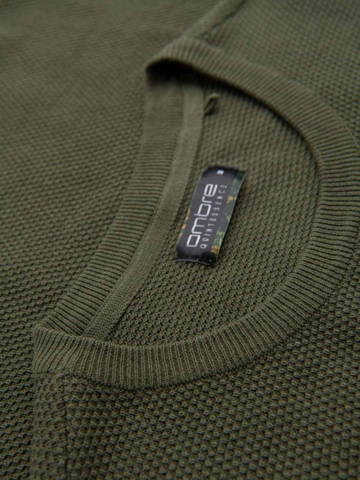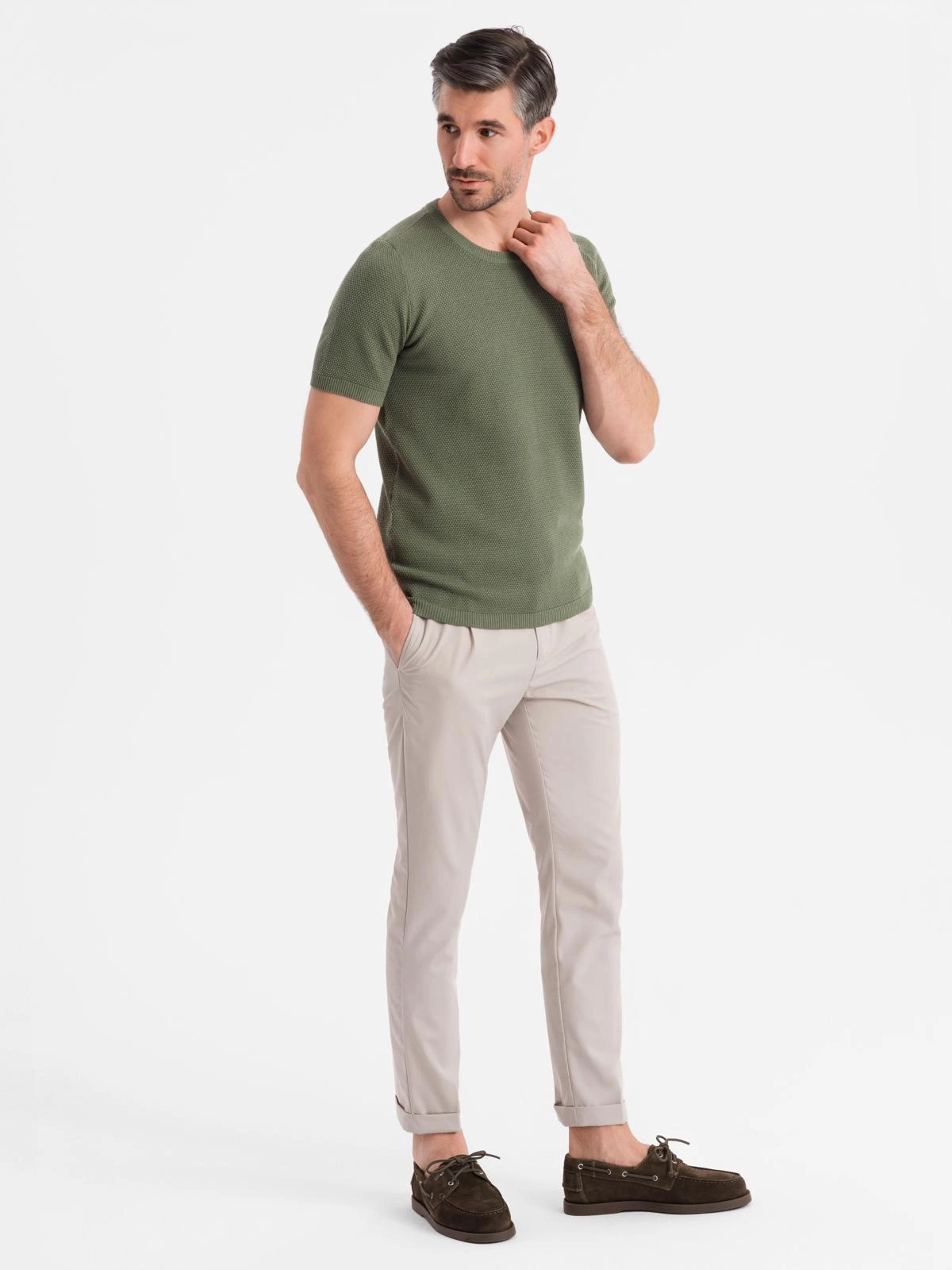 - Dzianinowa koszulka męska z delikatną drobną strukturą - oliwkowa V5 OM-TSCT-0244