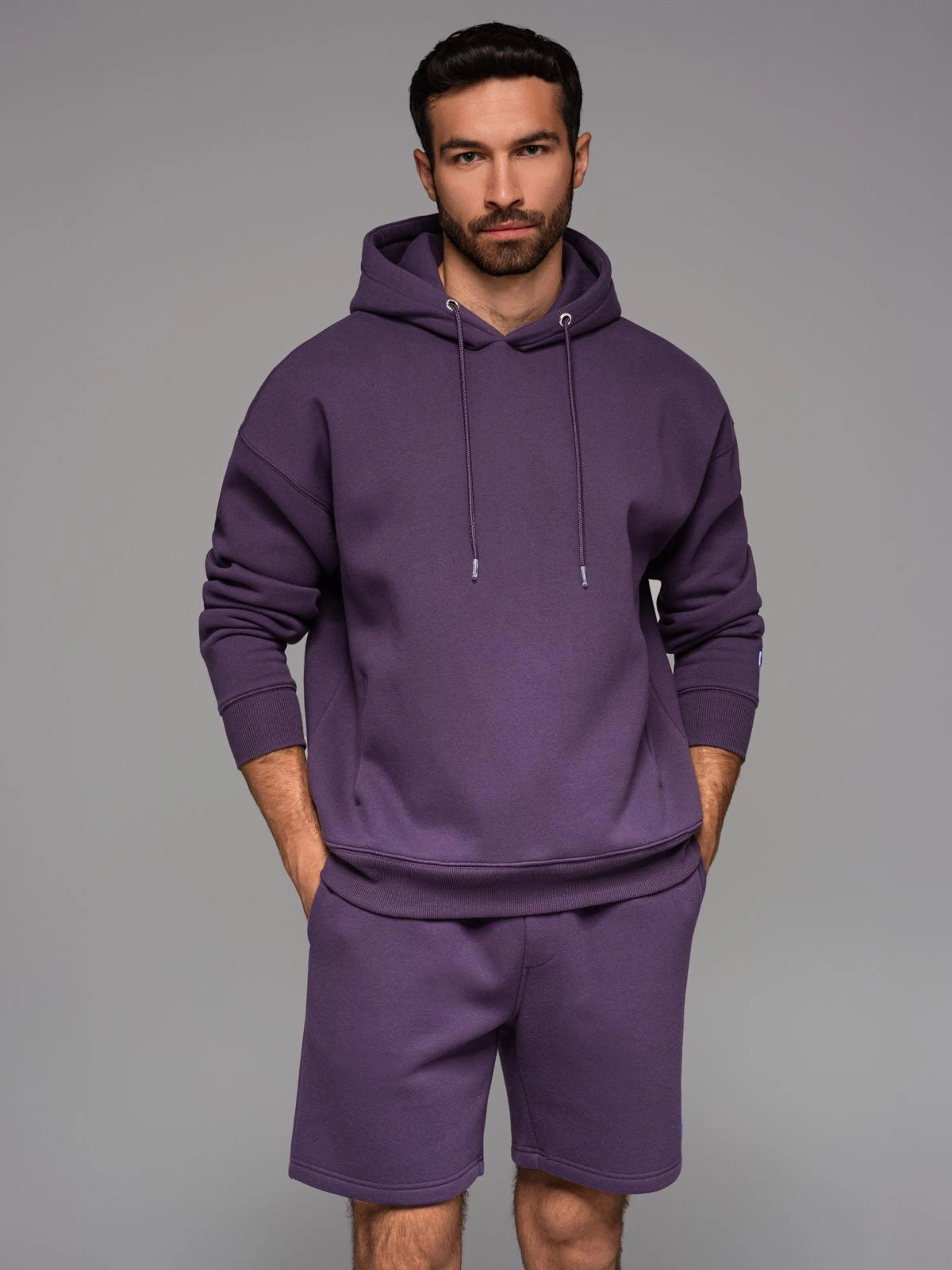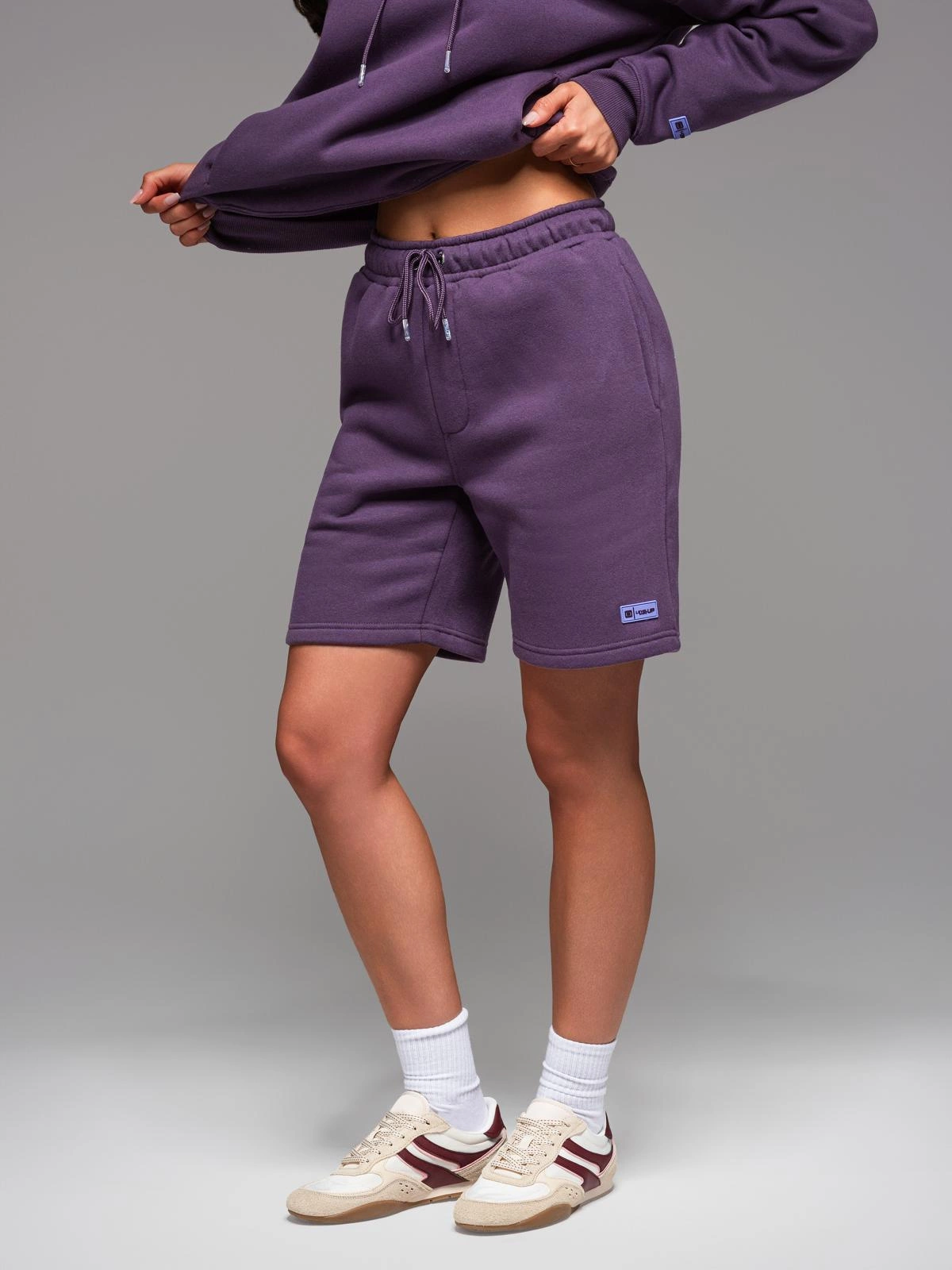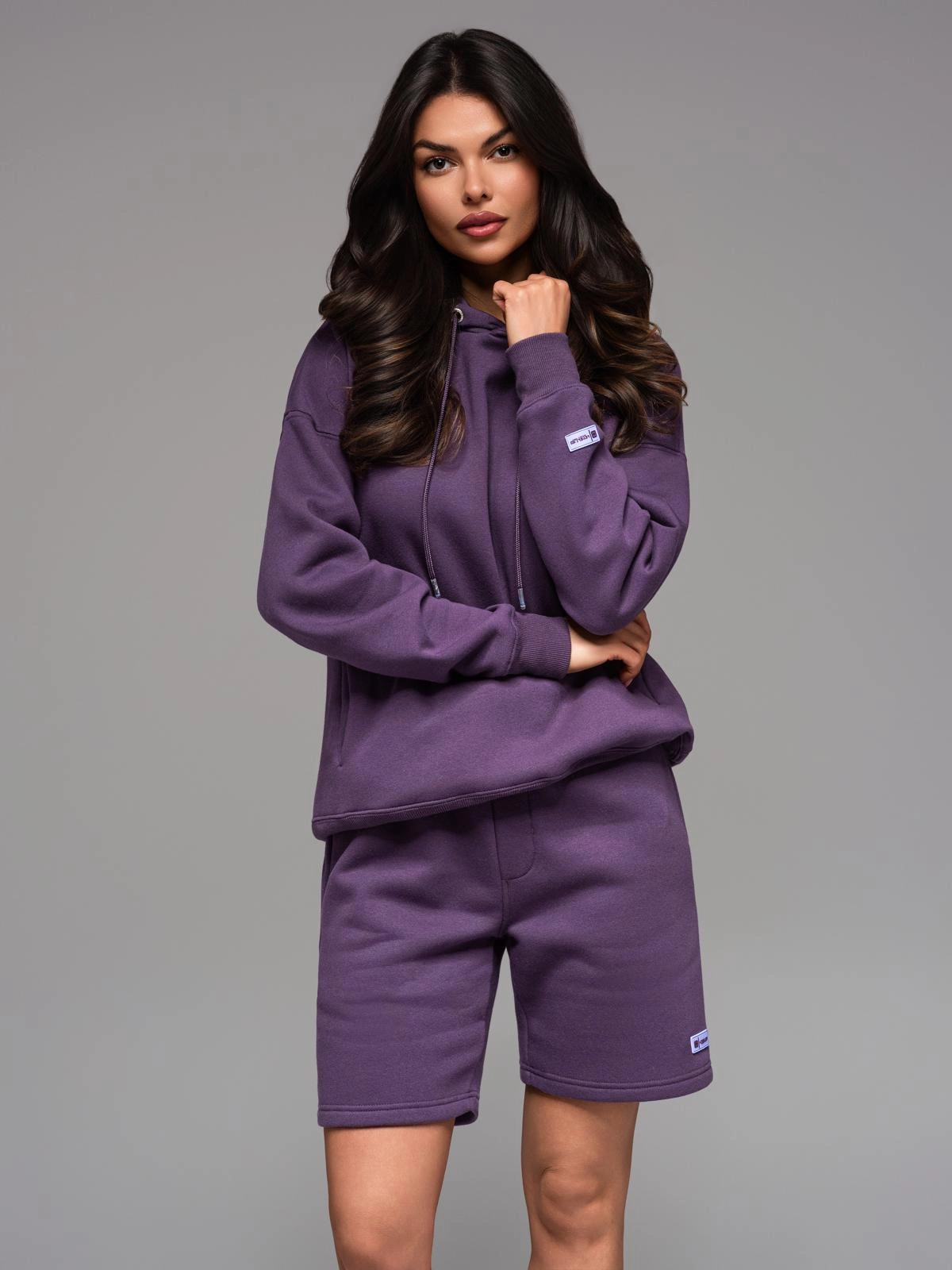 Komplet dresowy UNISEX bluza z kapturem + szorty w stylu athleisure – fioletowe V13 Z110