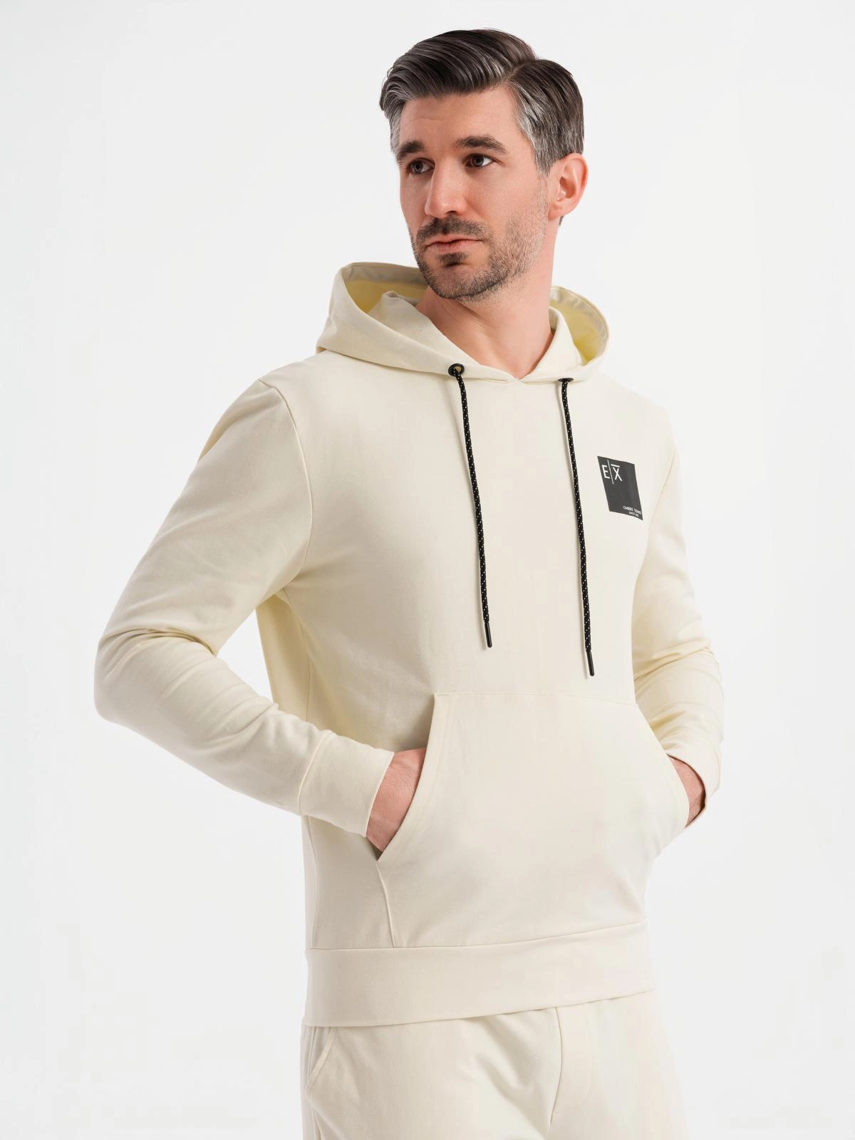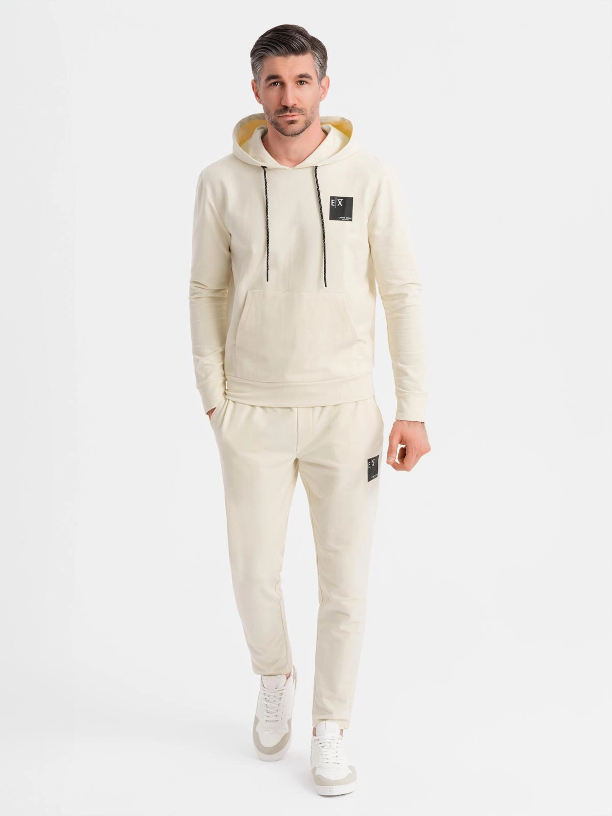 Męski komplet dresowy bluza z kapturem + spodnie dresowe - kremowy V2 Z107