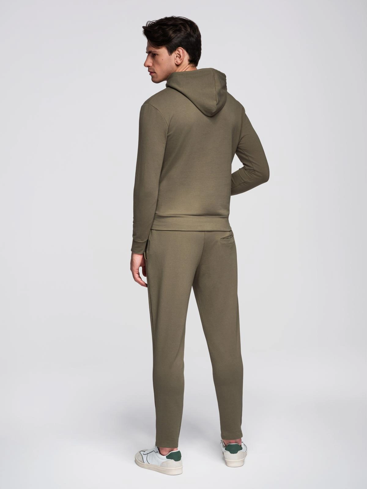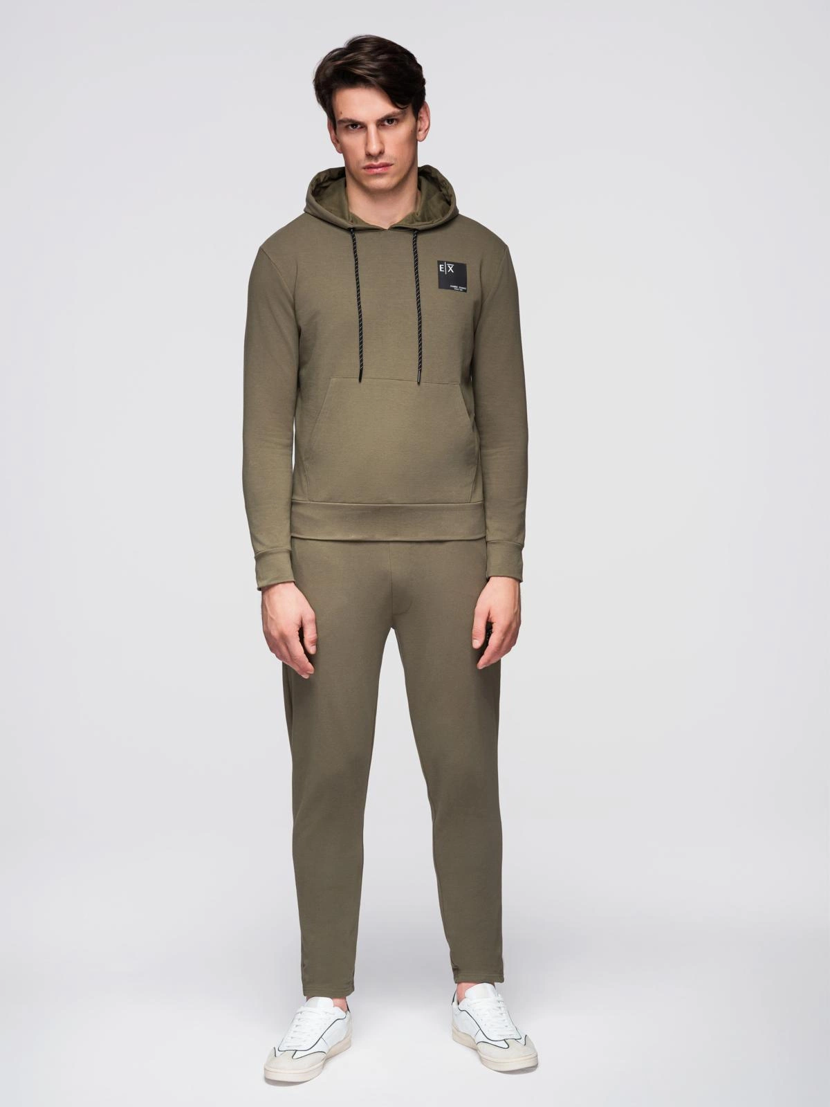Męski komplet dresowy bluza z kapturem + spodnie dresowe - oliwkowy V4 Z107