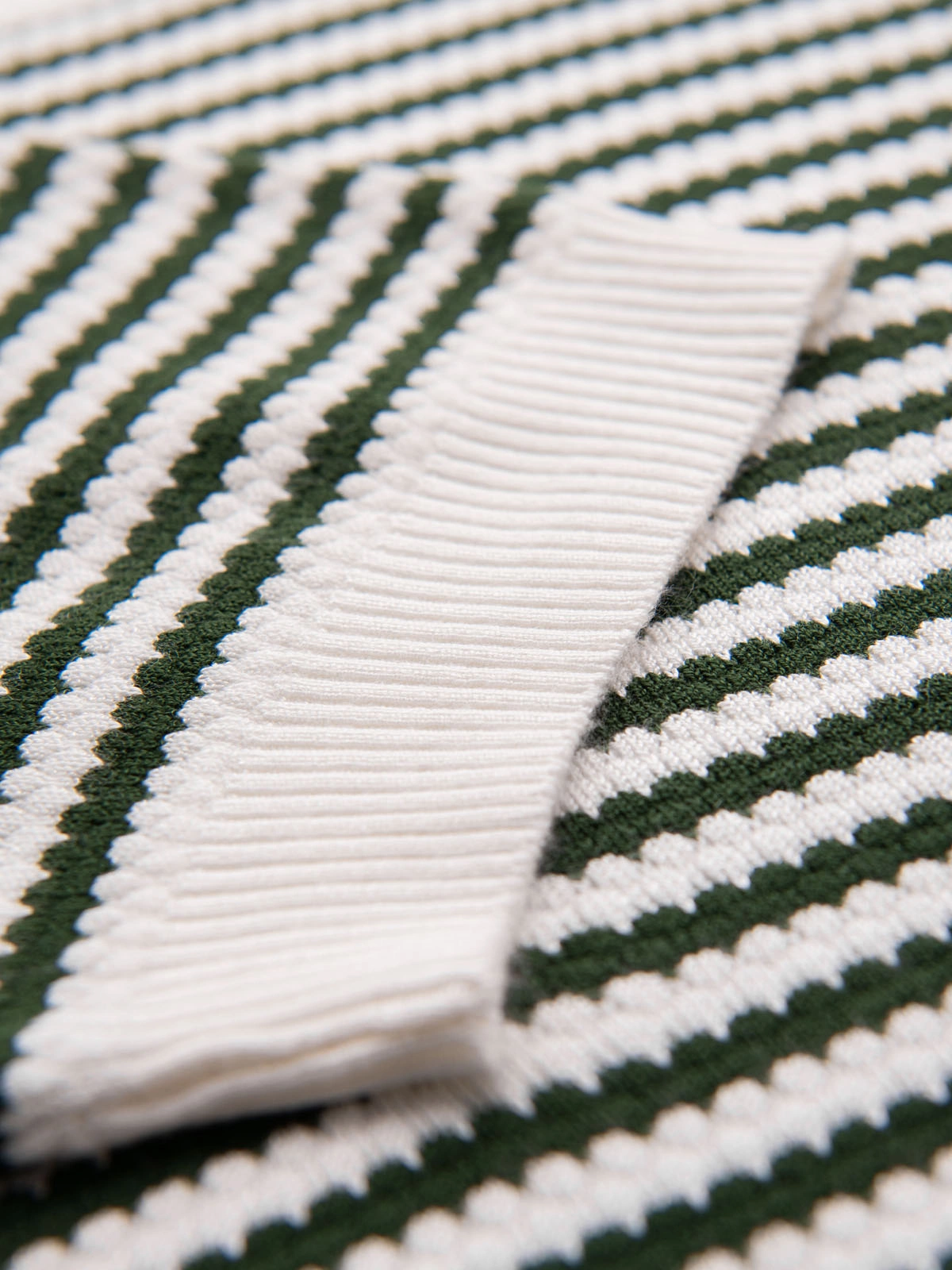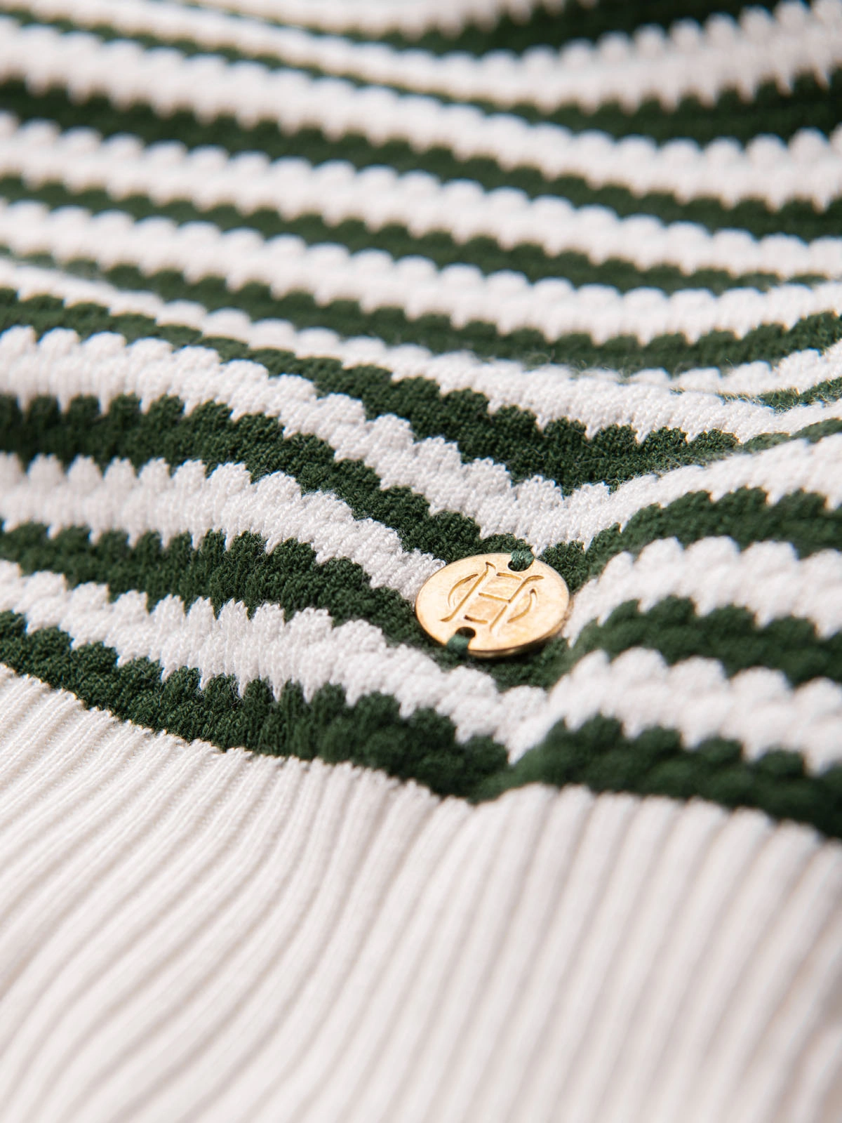 Opinie o Męski dzianinowy t-shirt w marynarskie paski z ażurowym splotem – oliwkowo-biały V3 OM-TSCT-0255