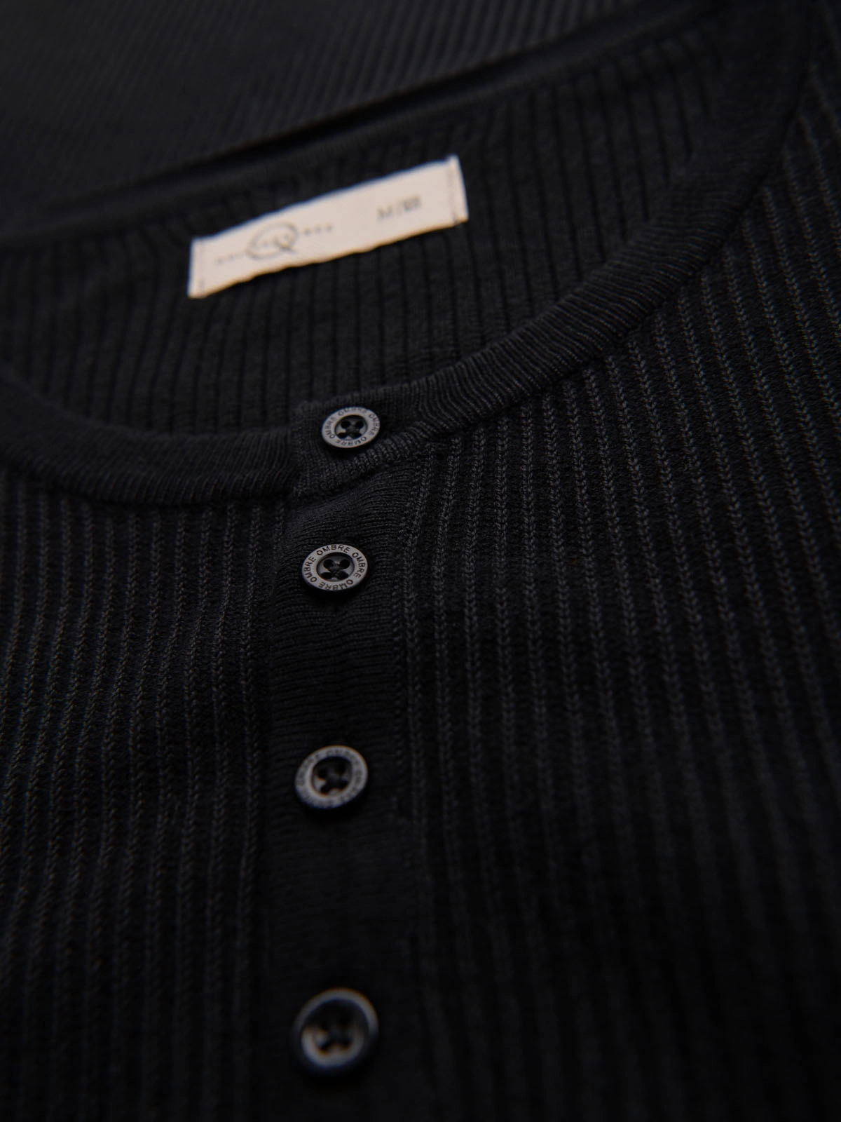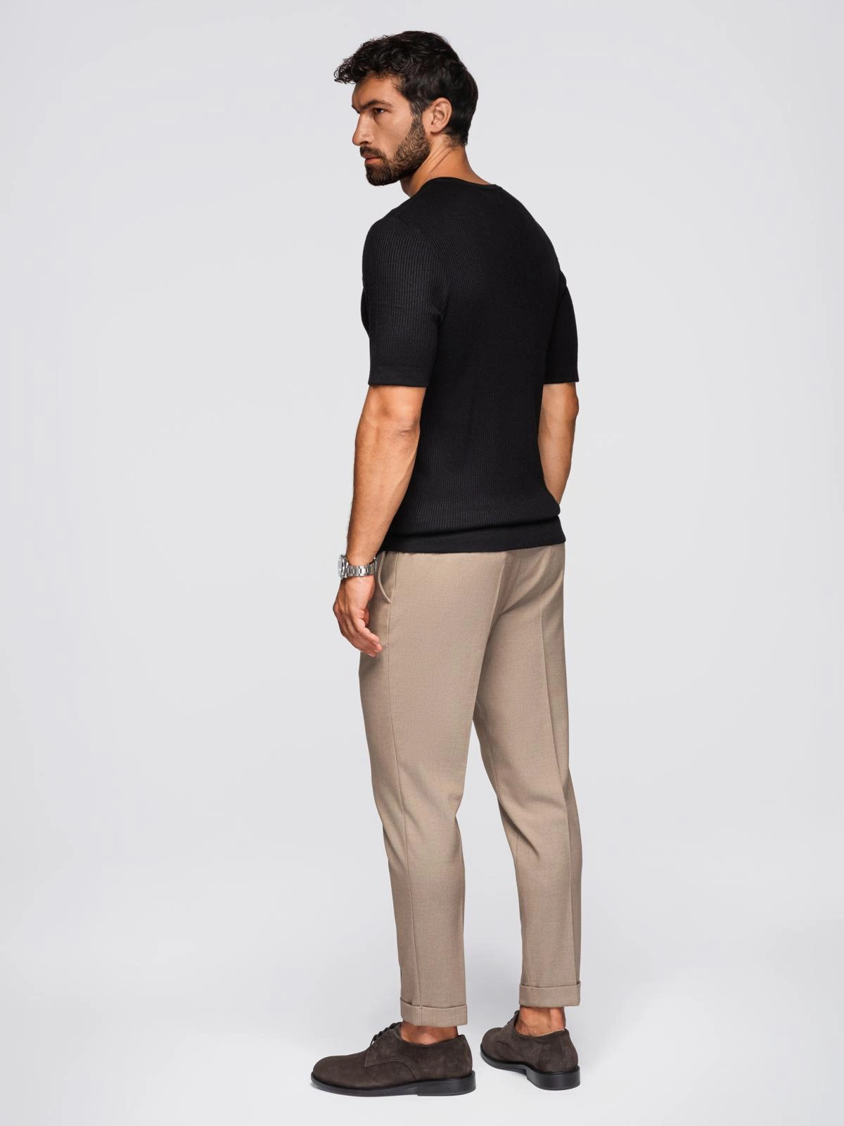 T-shirt męski dzianinowy z guzikami przy dekolcie – czarny V2 OM-TSCT-0254