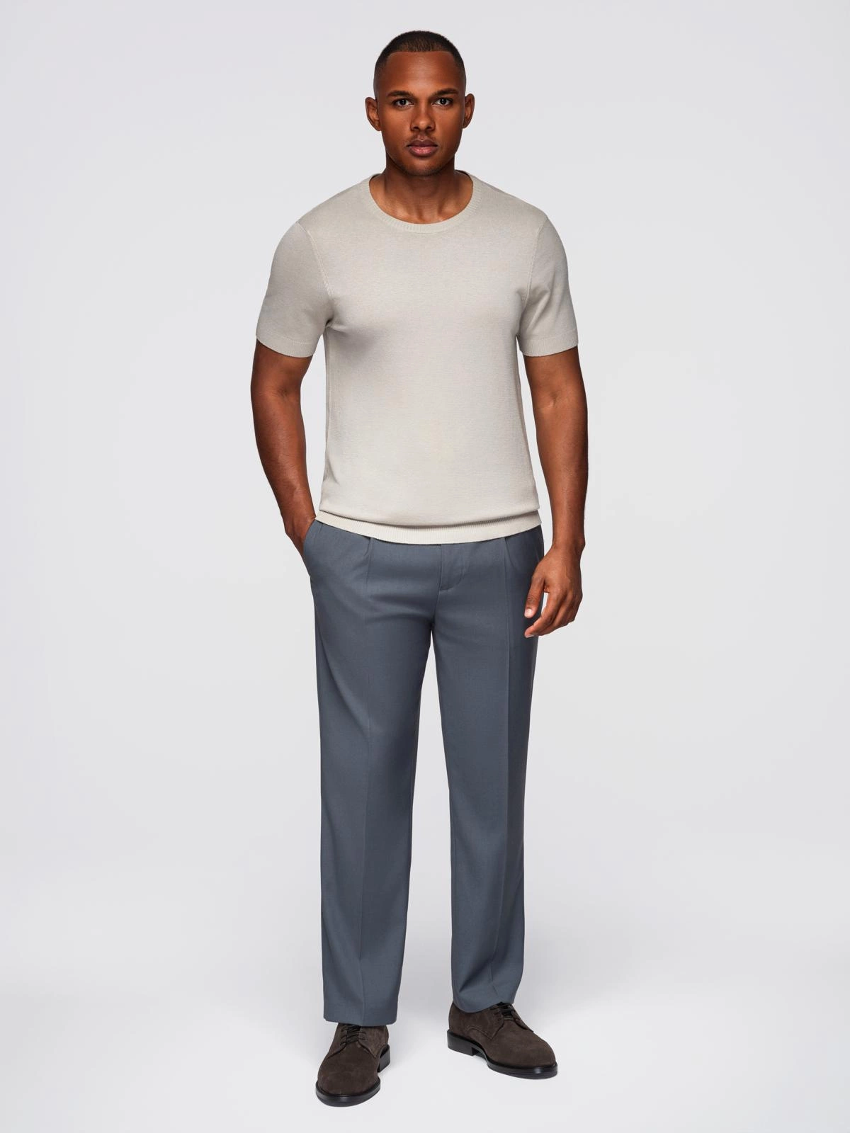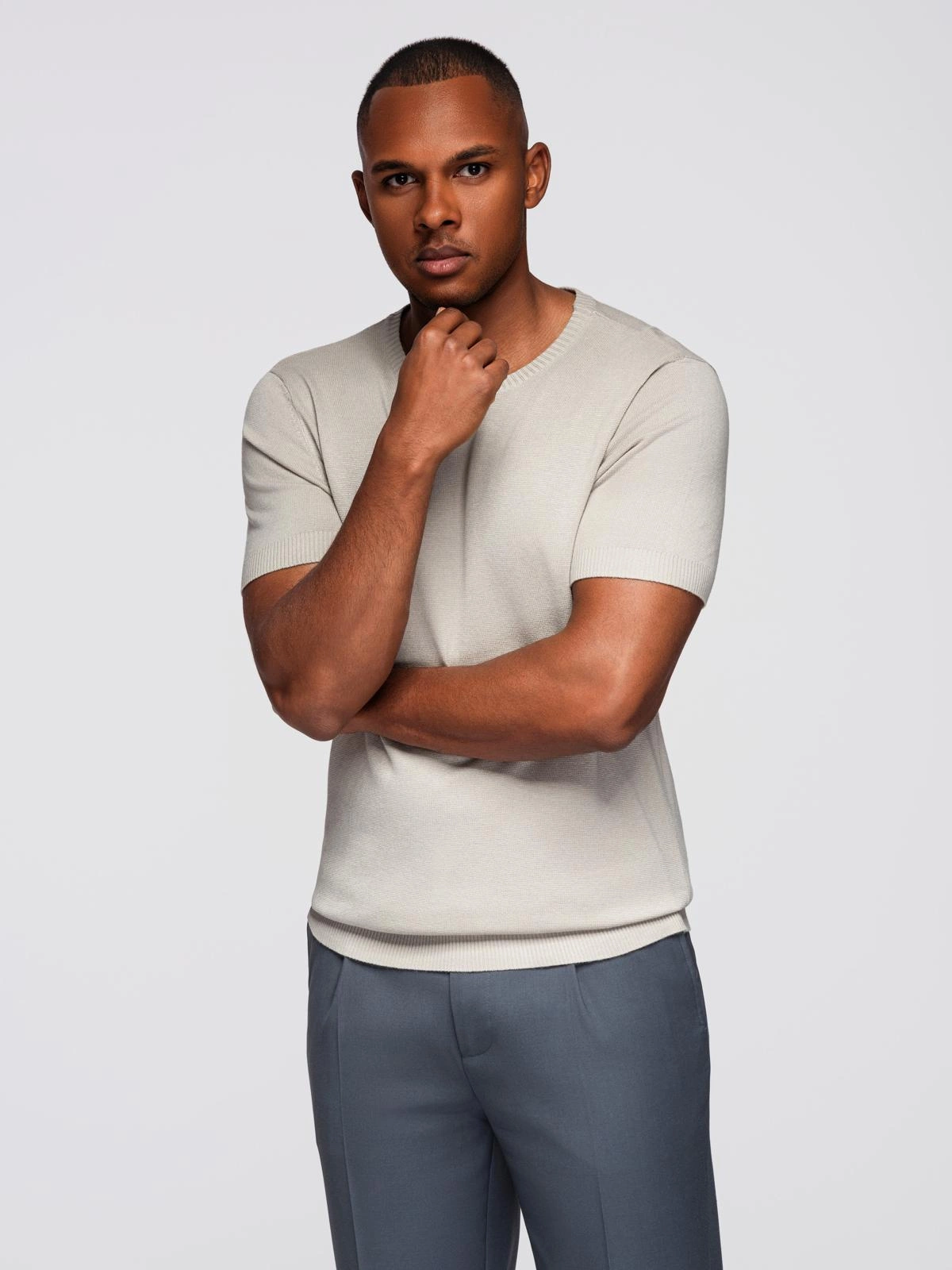 - Klasyczna dzianinowa koszulka męska ze ściągaczami– jasnoszara V3 OM-TSCT-0252