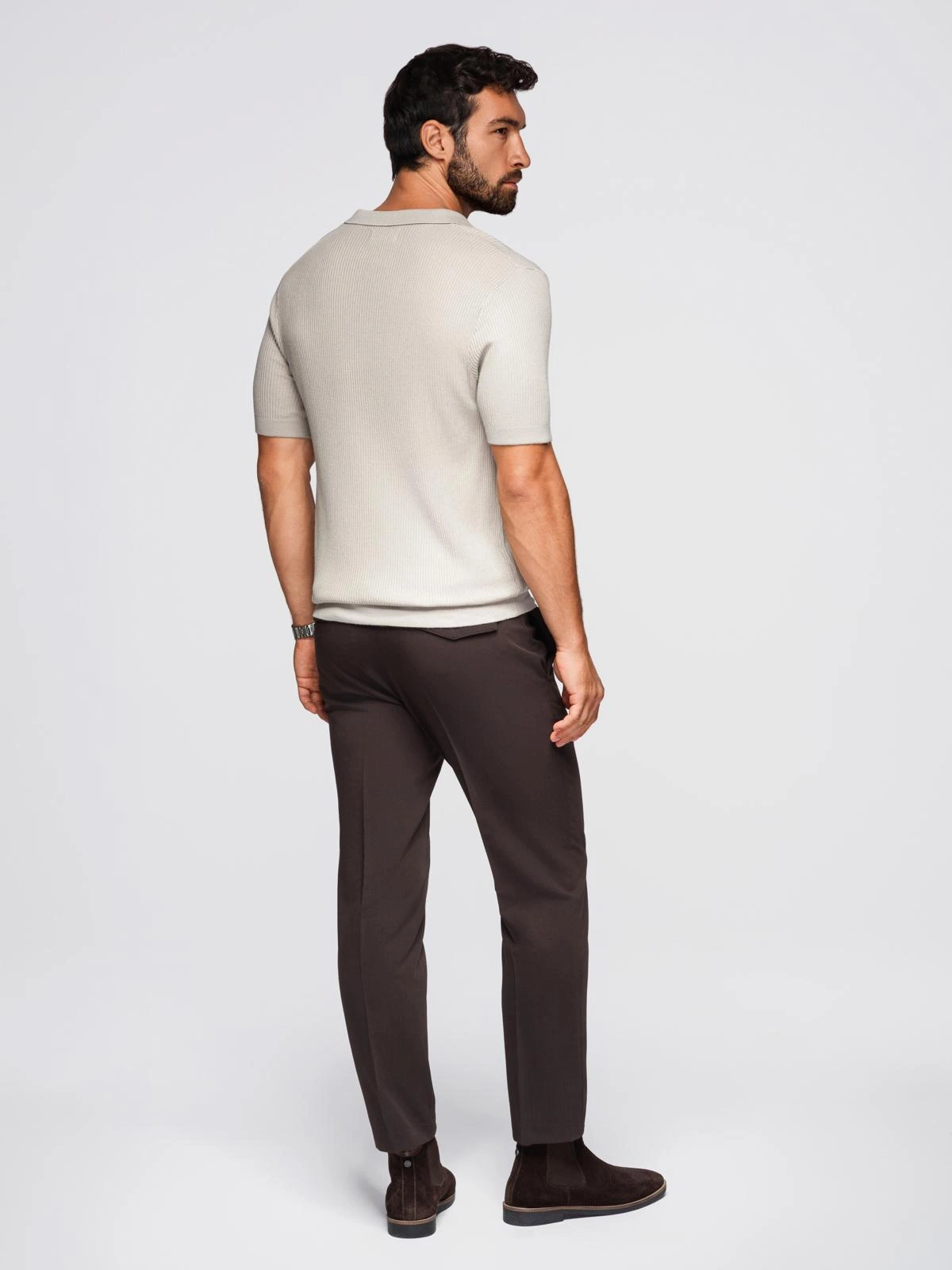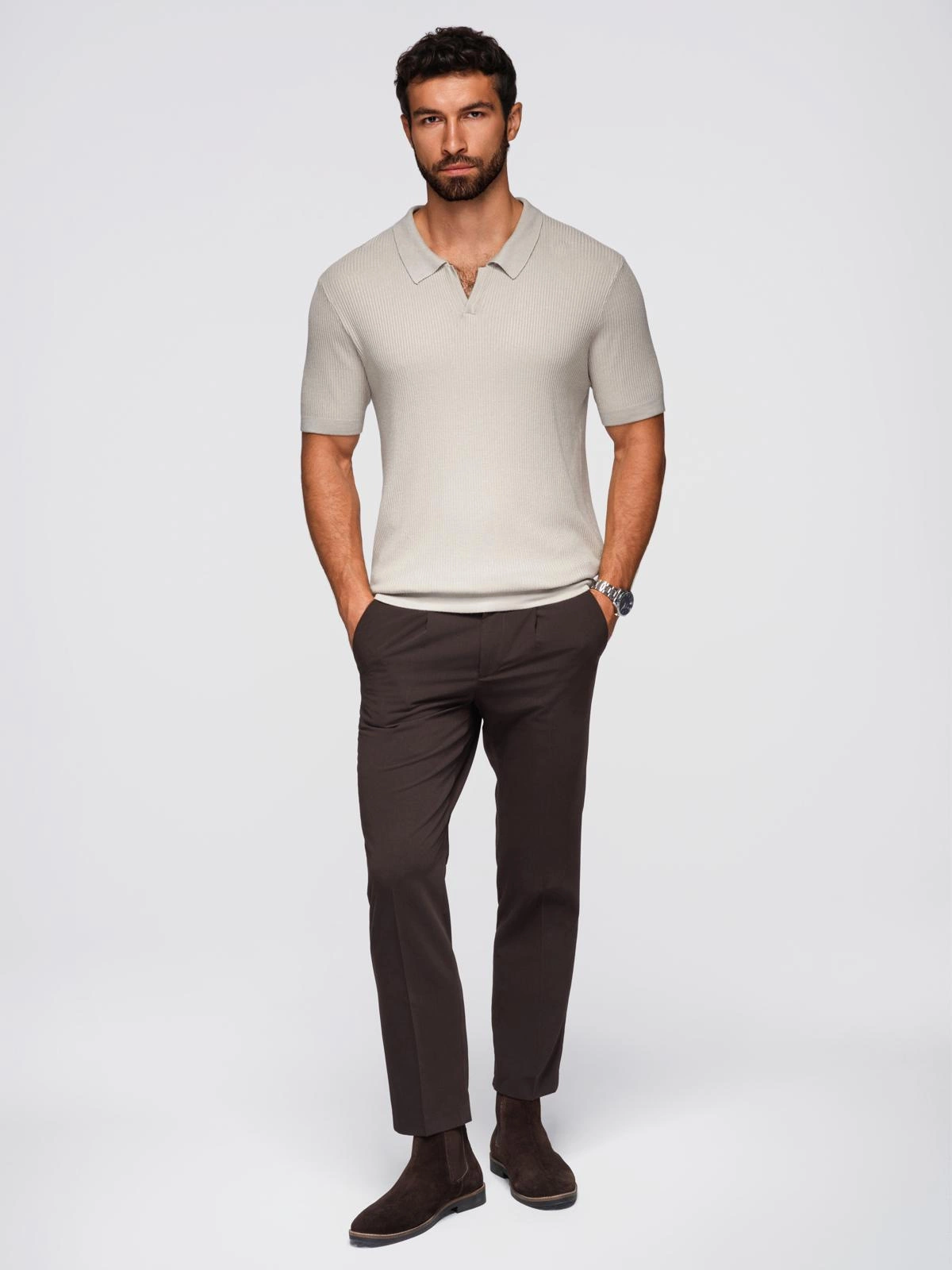Opinie o Koszulka męska polo bez guzików z otwartym kołnierzykiem – jasnoszara V3 OM-POSS-0160