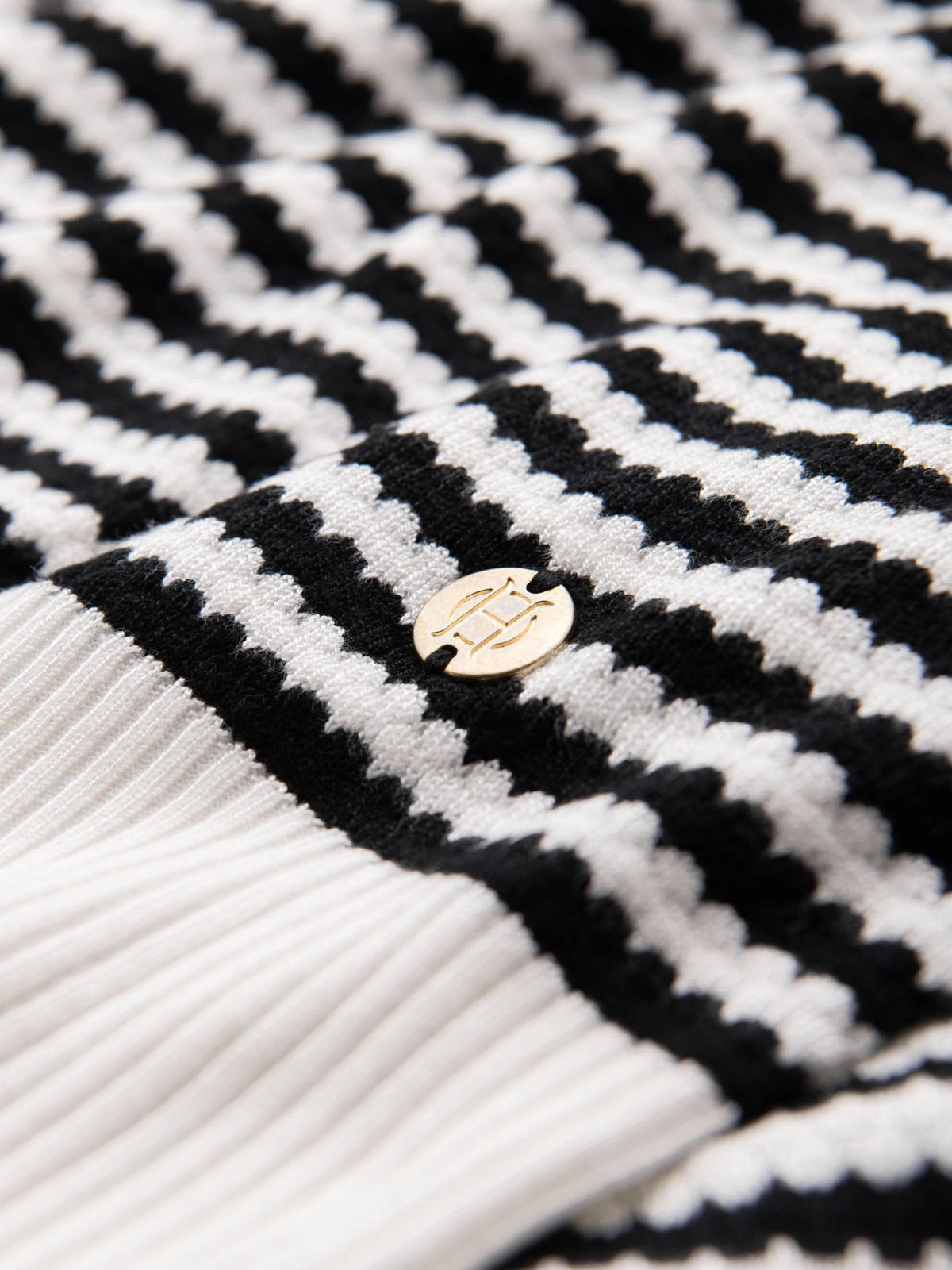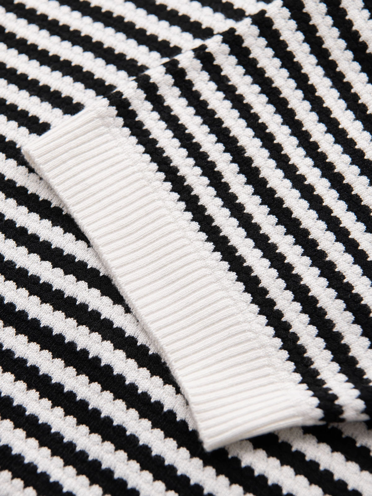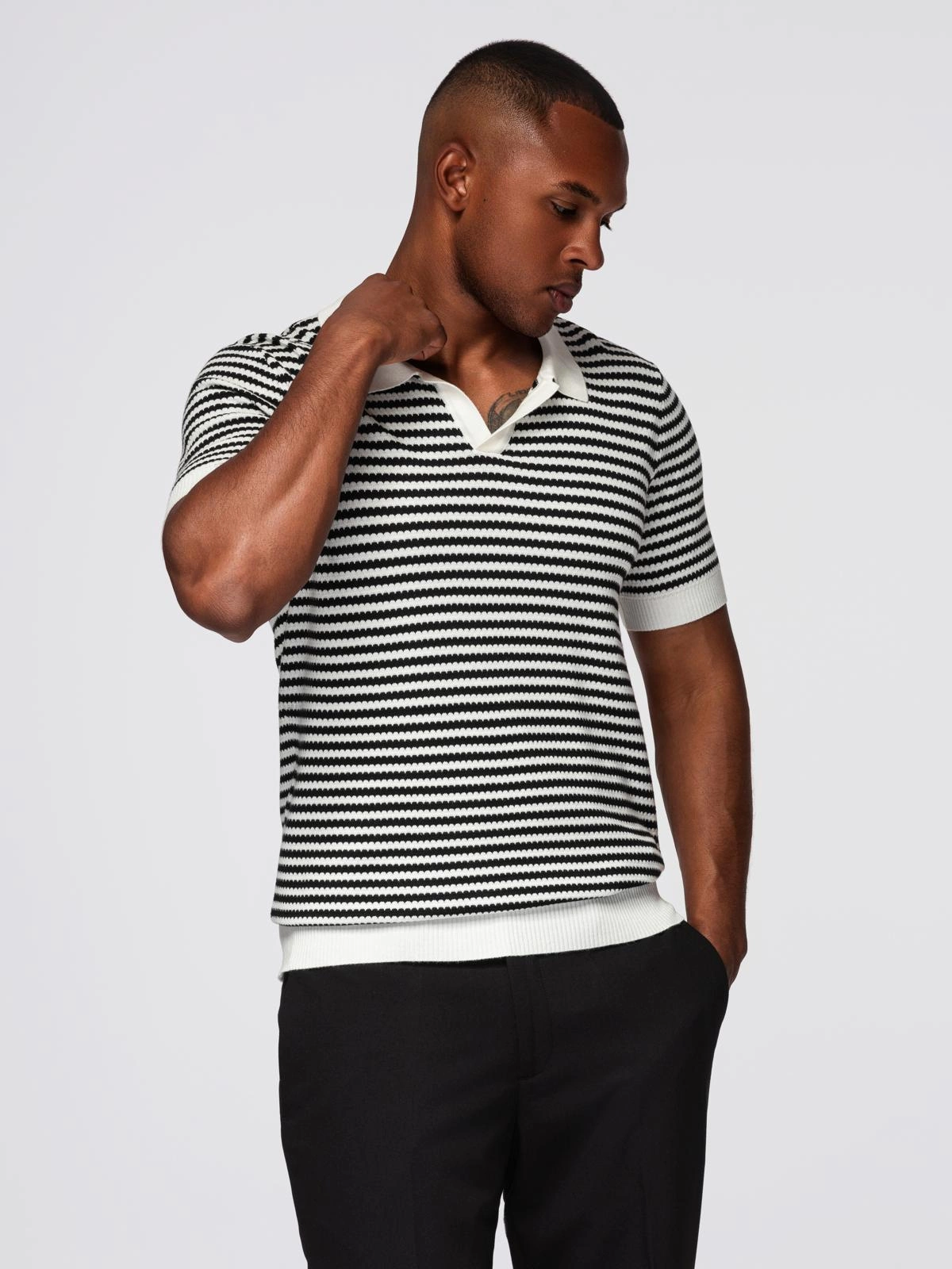 Męska dzianinowa koszulka polo bez guzików w marynarskie paski – czarno-biała V1 OM-POSS-0161