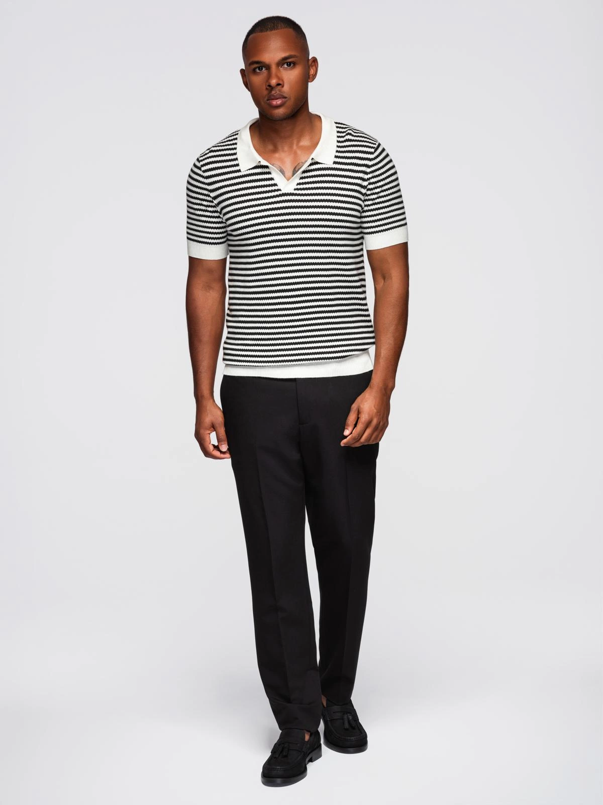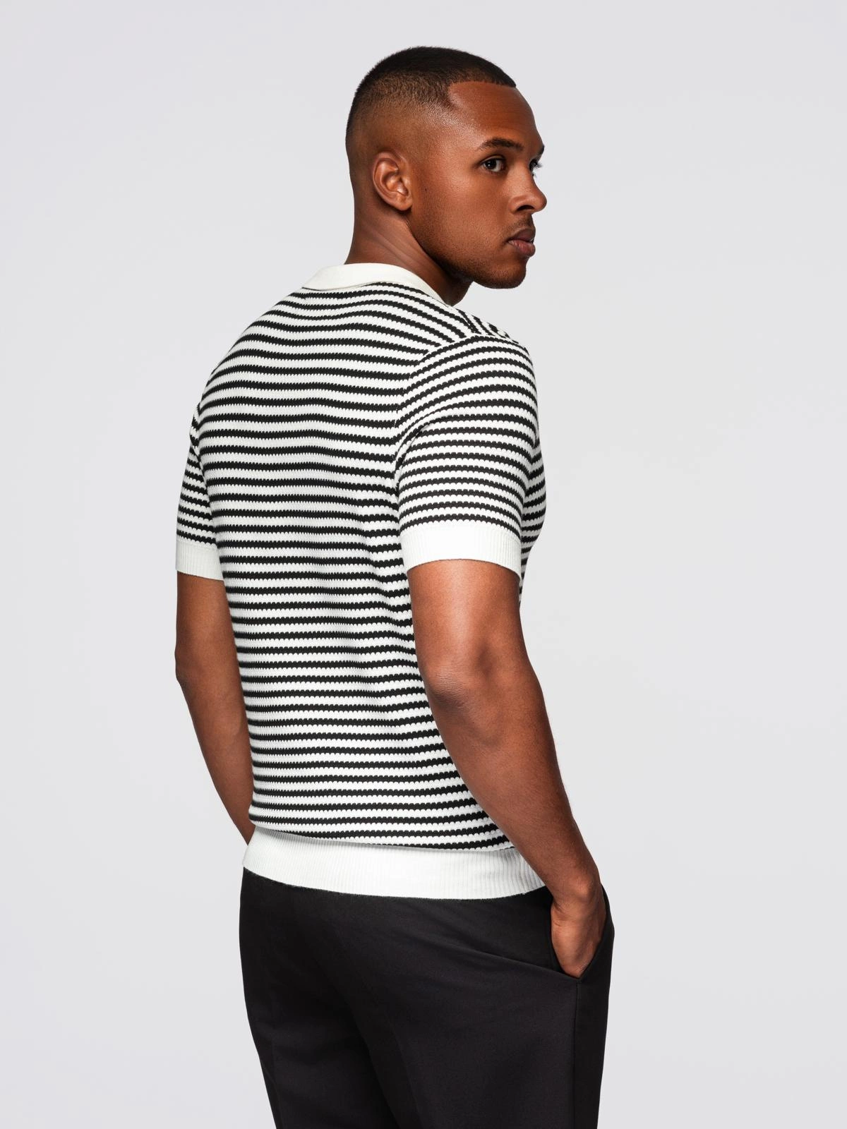 - Męska dzianinowa koszulka polo bez guzików w marynarskie paski – czarno-biała V1 OM-POSS-0161
