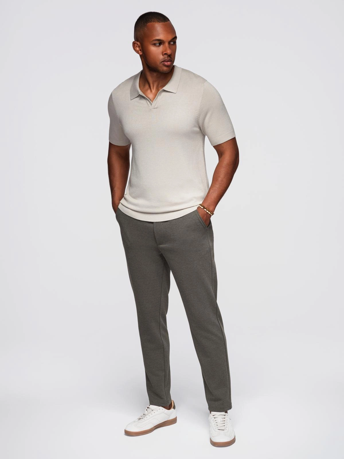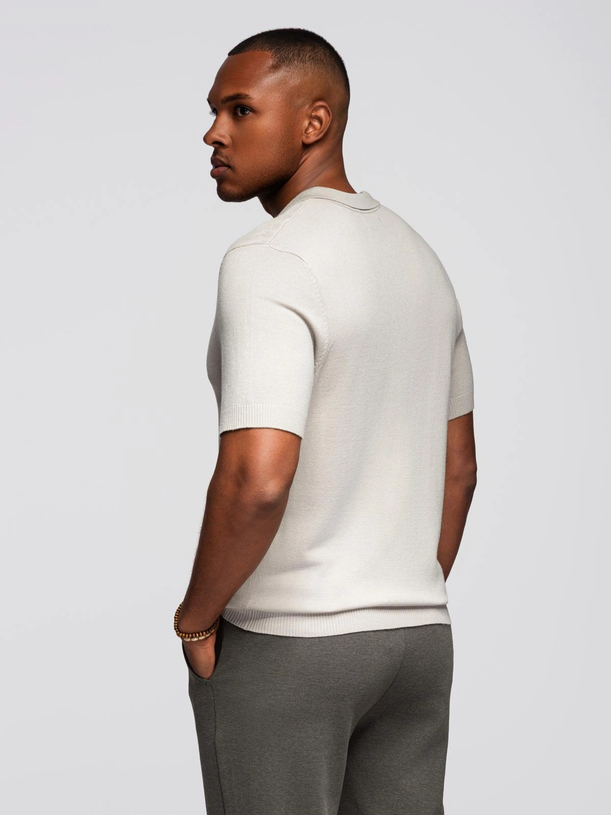 - Męska koszulka polo bez guzików z klasycznym splotem – jasnobeżowa V3 OM-POSS-0159