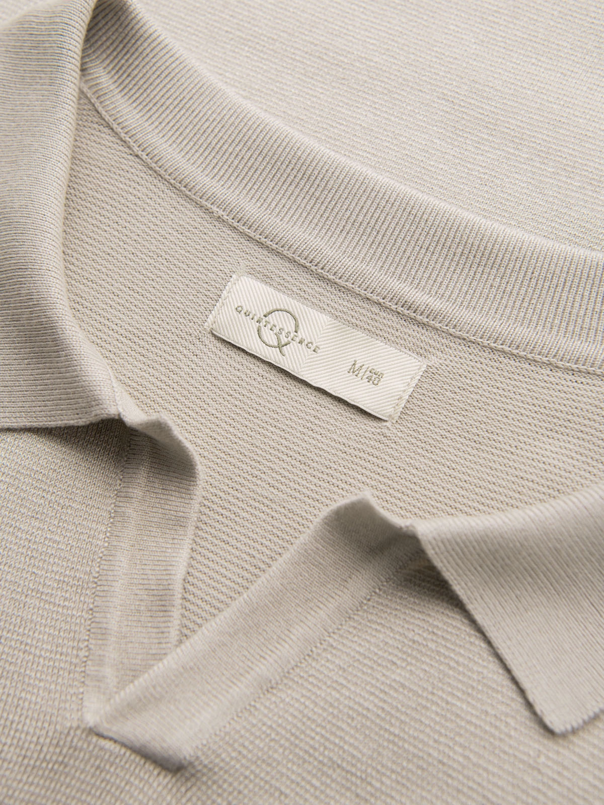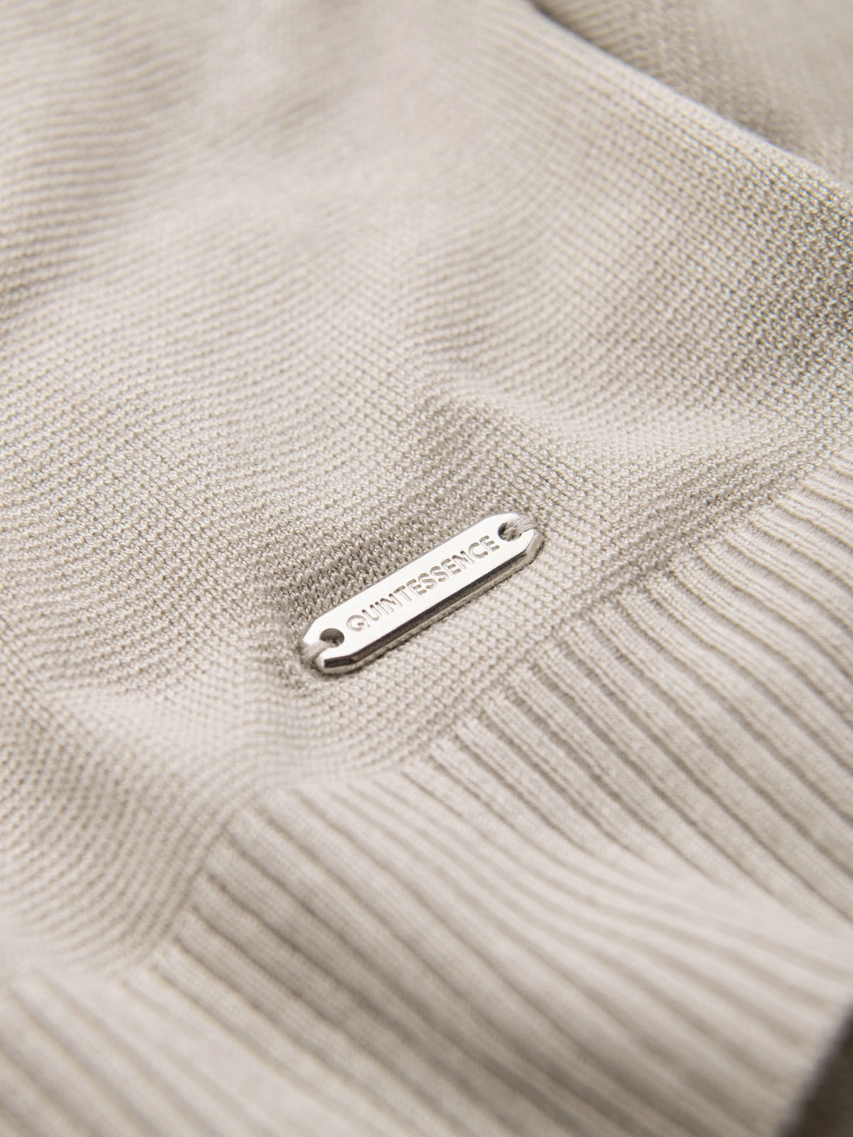 Męska koszulka polo bez guzików z klasycznym splotem – jasnobeżowa V3 OM-POSS-0159