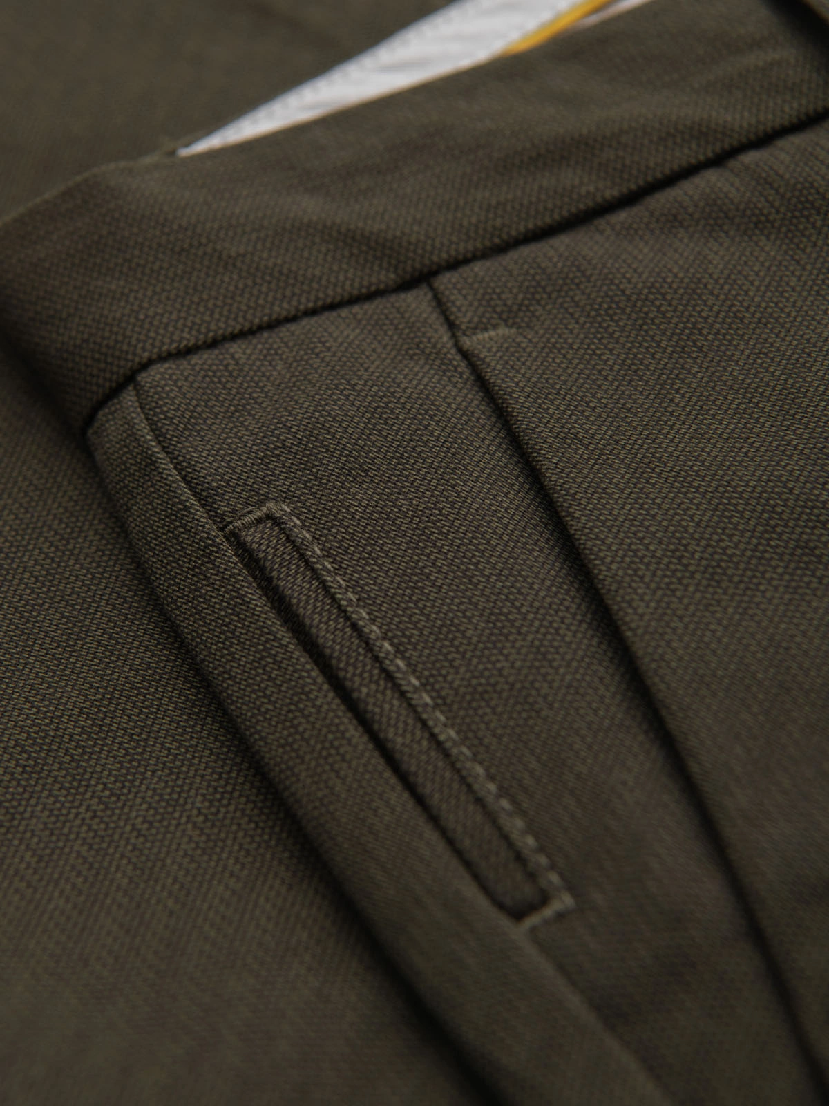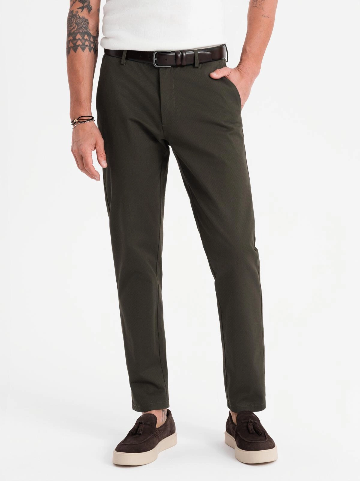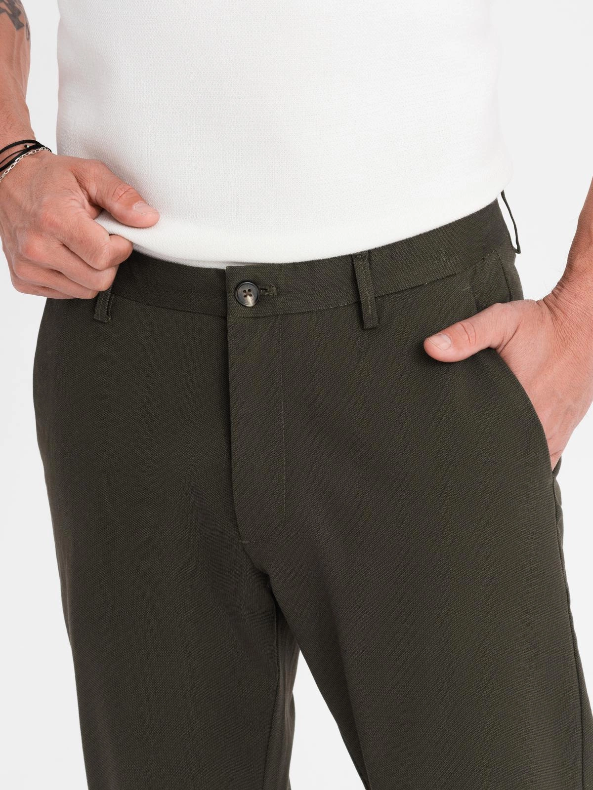 Męskie spodnie chino REGULAR FIT z delikatną strukturą – ciemnozielone V4 OM-PACP-0184
