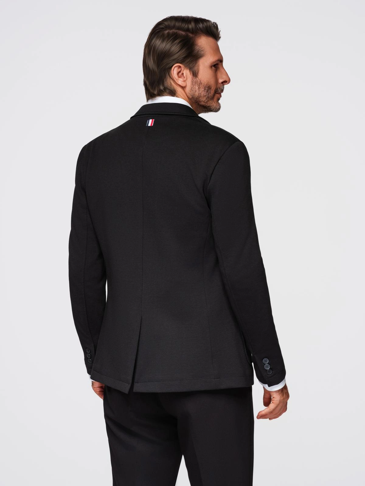 Marynarka męska SLIM z dzianiny o subtelnej strukturze – czarna V2 OM-BLZB-0101