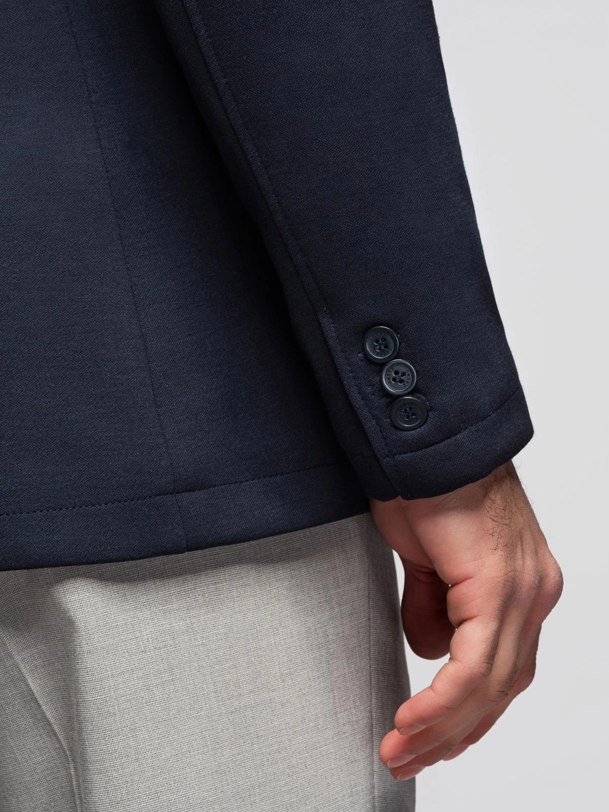 Opinie o Męska marynarka SLIM z dzianiny o subtelnej strukturze – granatowa V3 OM-BLZB-0101