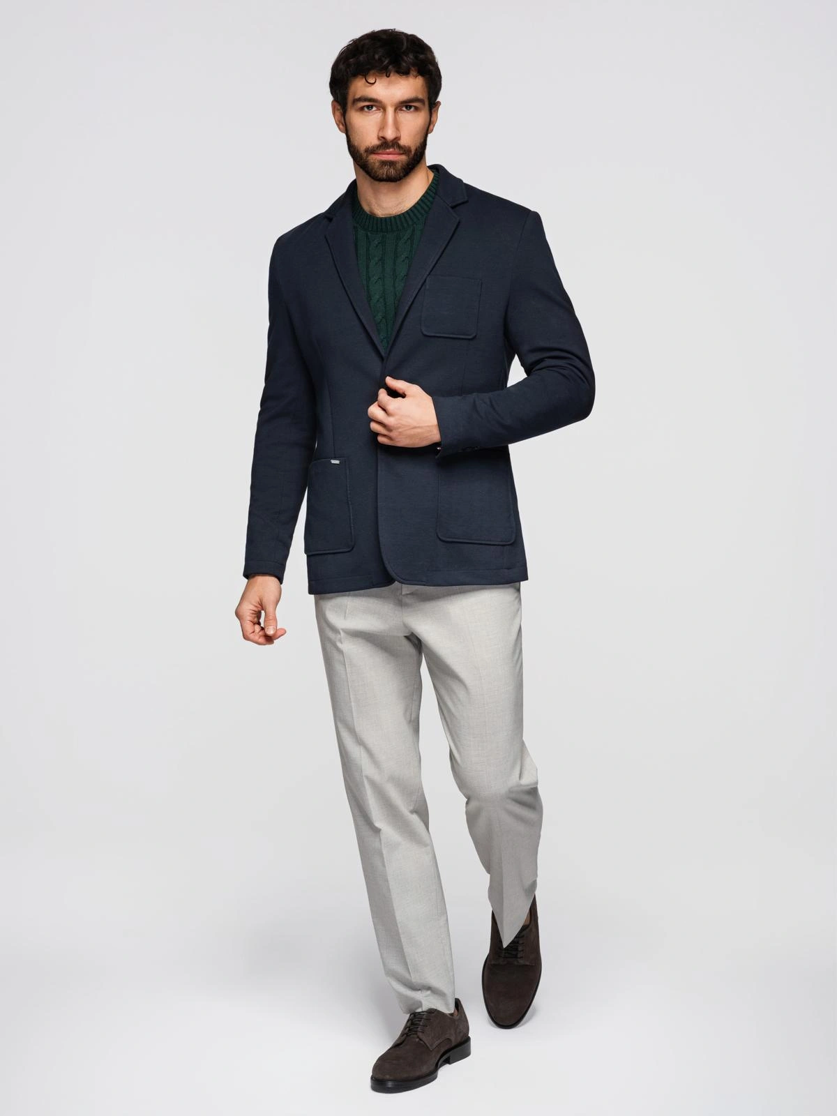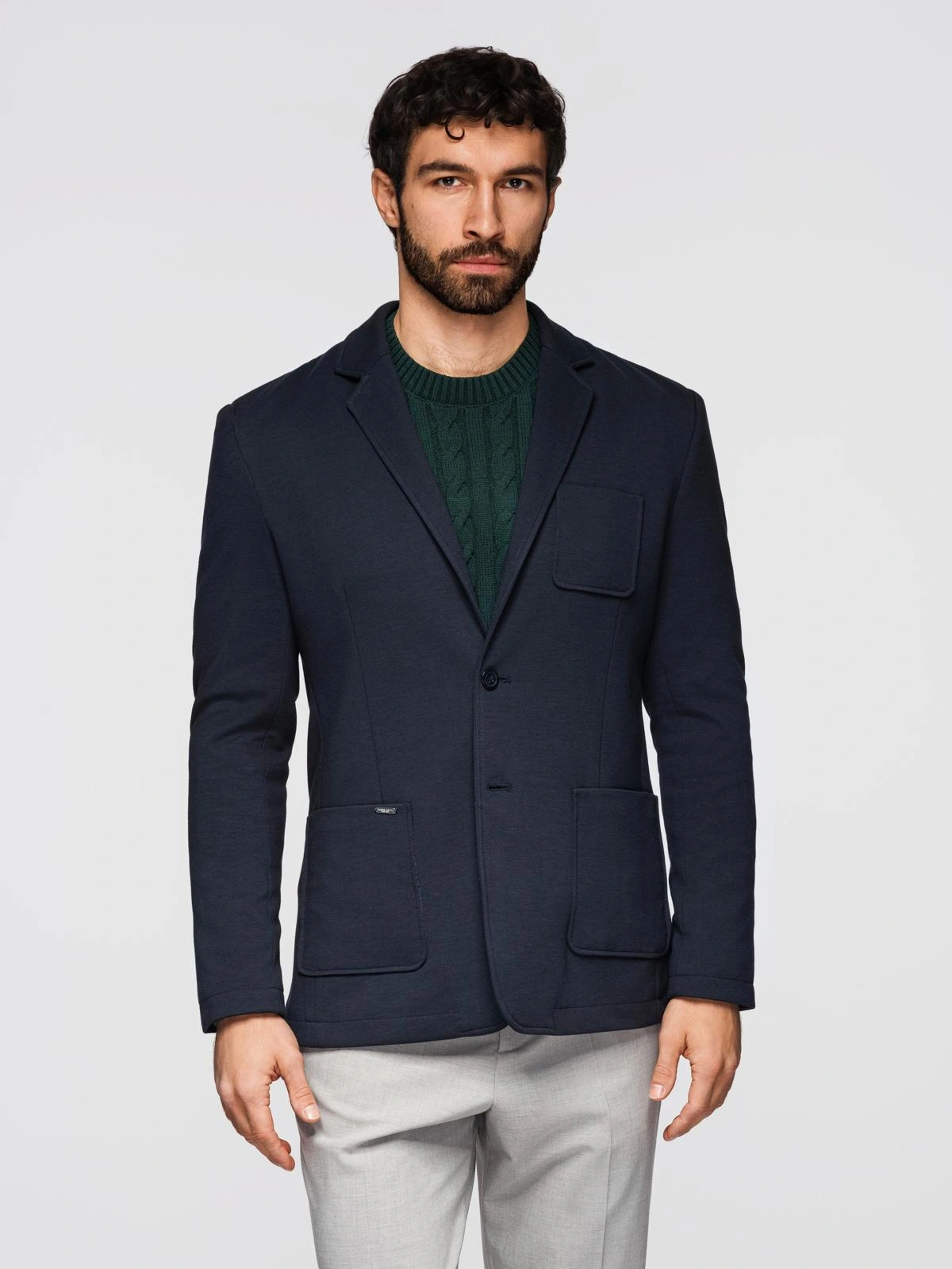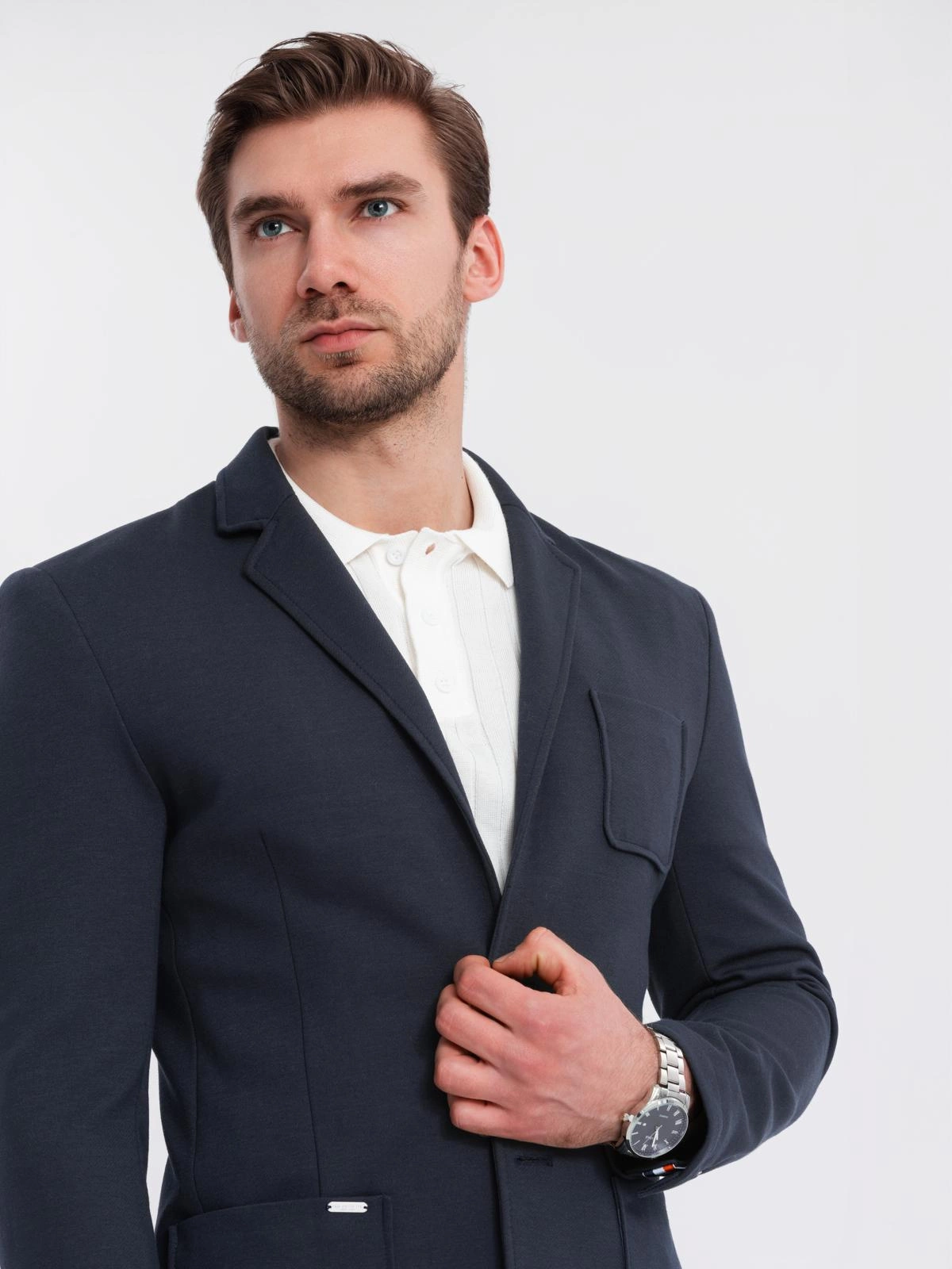 Męska marynarka SLIM z dzianiny o subtelnej strukturze – granatowa V3 OM-BLZB-0101
