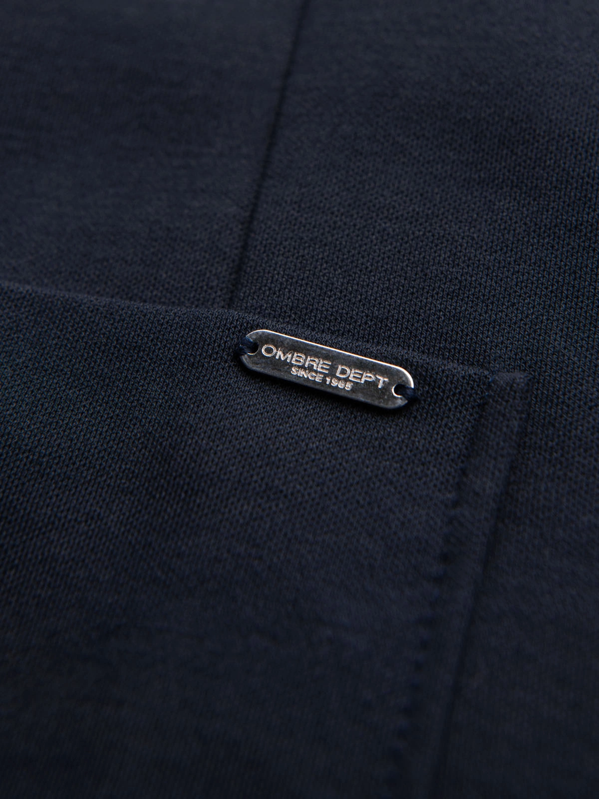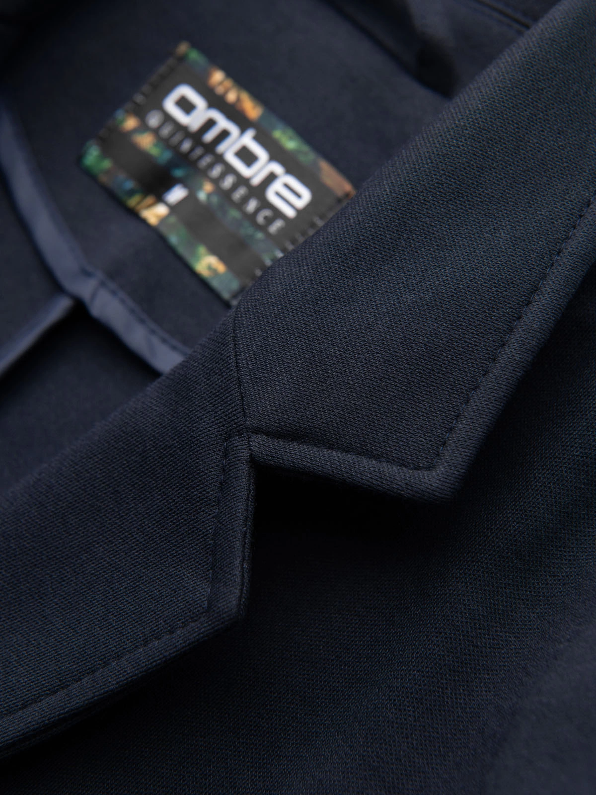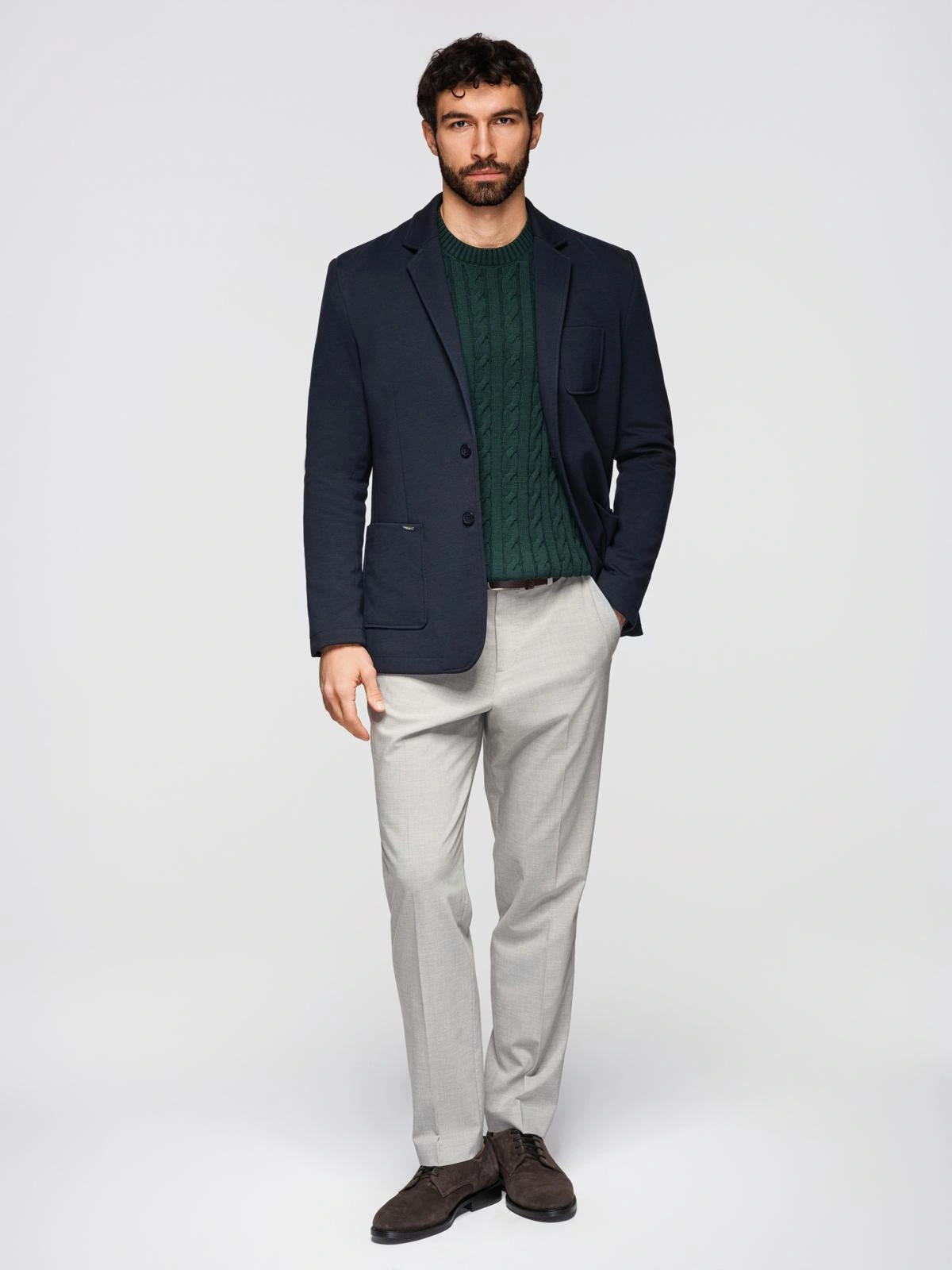 Męska marynarka SLIM z dzianiny o subtelnej strukturze – granatowa V3 OM-BLZB-0101