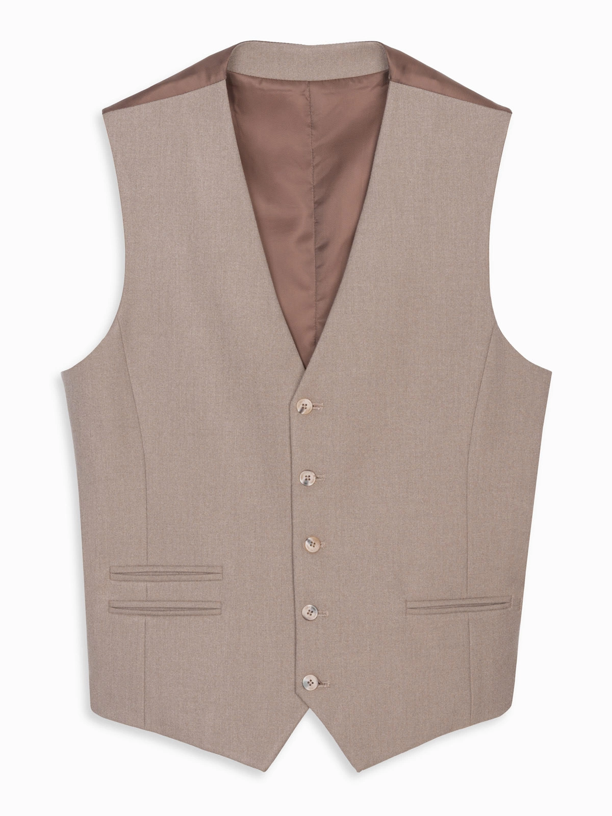 Kamizelka męska garniturowa z klasycznym detalem i podszewką – beżowa V1 OM-BLZV-0142