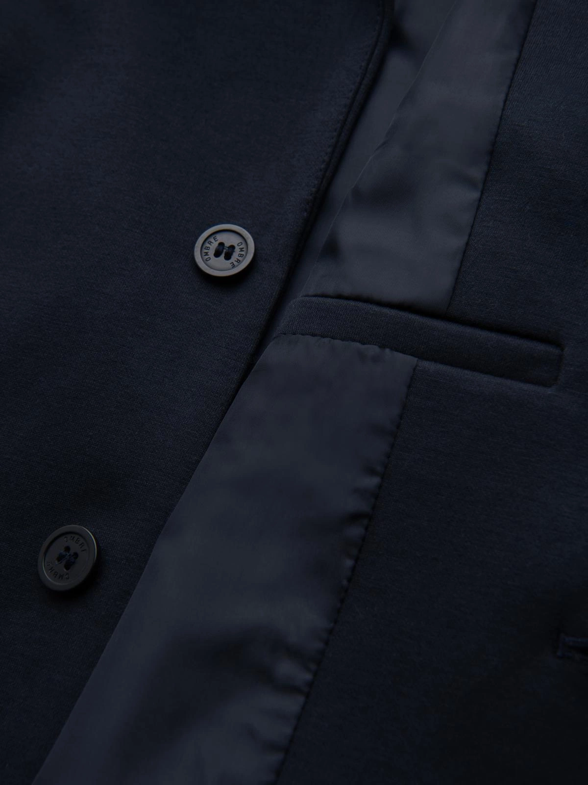 Marynarka z linii QUINTESSENCE to stylowa propozycja dla mężczyzn, którzy oczekują od marynarki czegoś więcej niż tylko formalnego charakteru. Model wykonany z dzianiny zapewnia swobodę ruchów i wysoki komfort noszenia, zachowując przy tym klasyczną, elegancką, slimowaną linię. Idealna do biura, na spotkania lub jako element codziennego outfitu w stylu smart casual.
