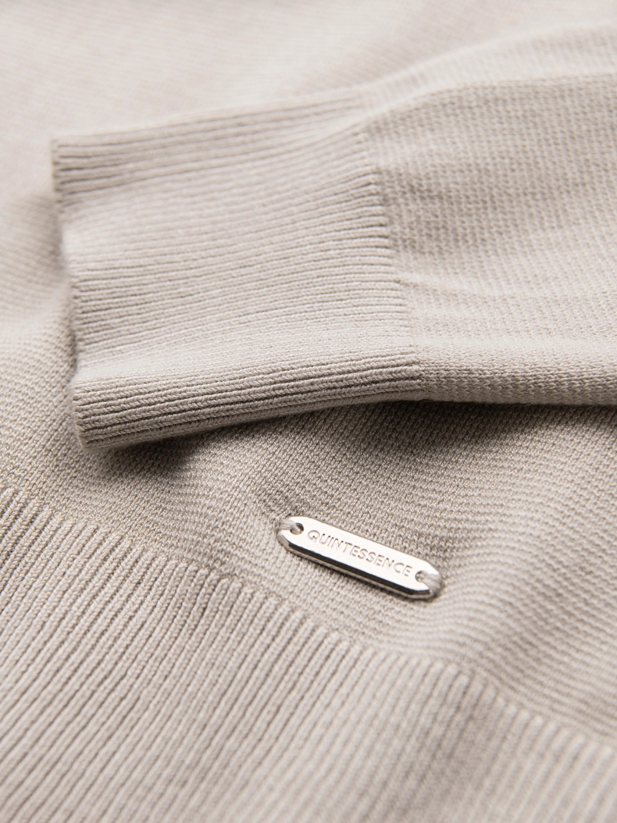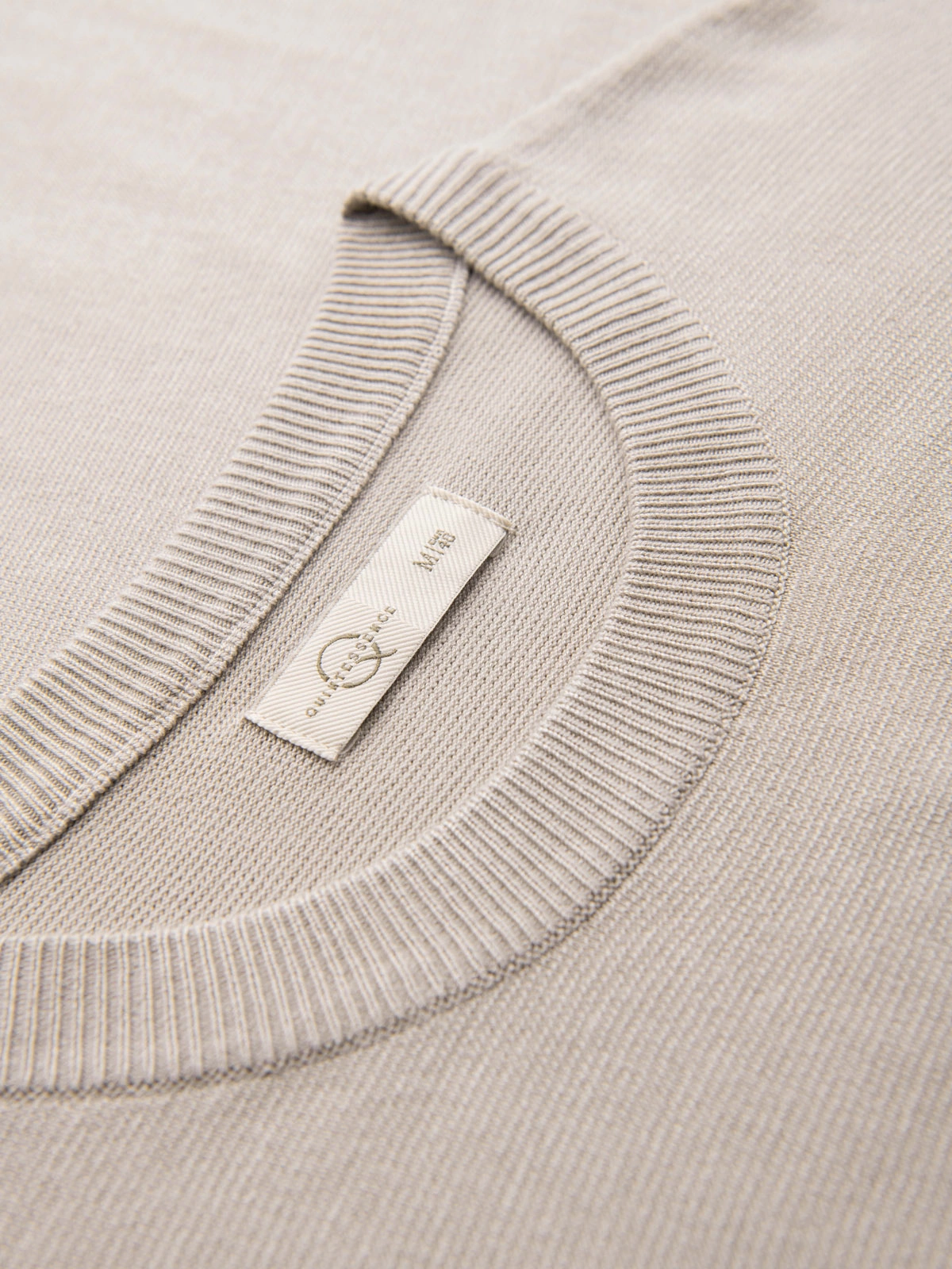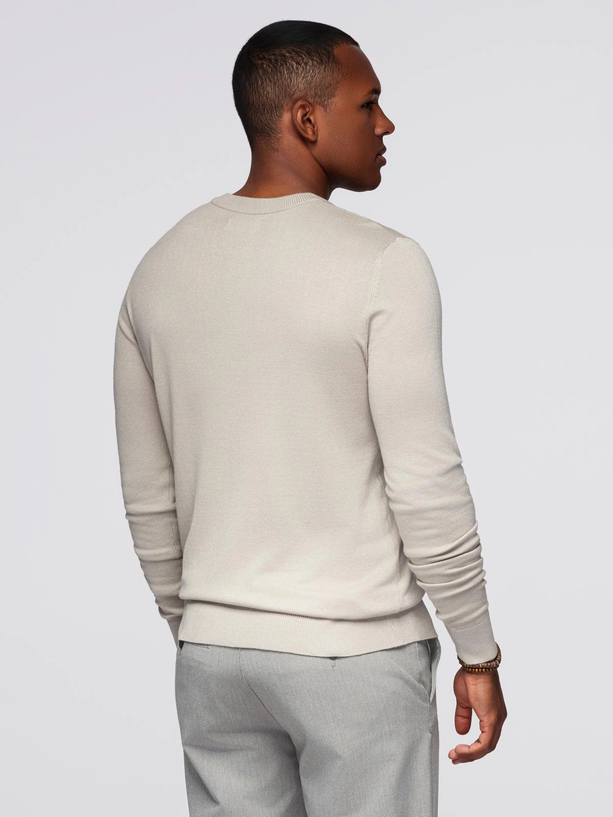 Sweter męski z okrągłym dekoltem z elastycznej dzianiny o klasycznym splocie - beżowy V3 OM-SWSW-0183