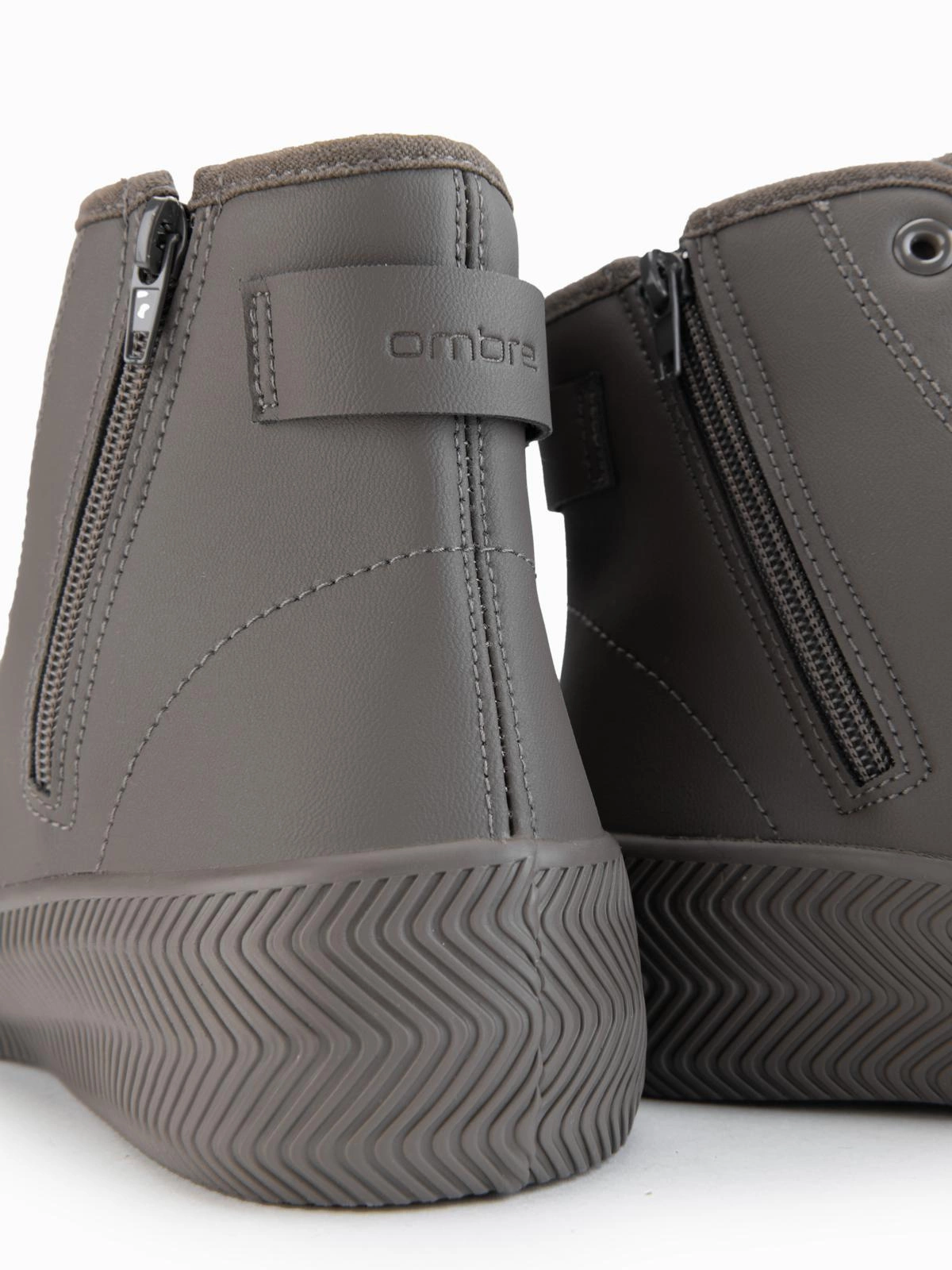 Trampki męskie z wysoką cholewką z zamkiem ułatwiającym zakładanie – khaki V3 OM-FOTH-0184