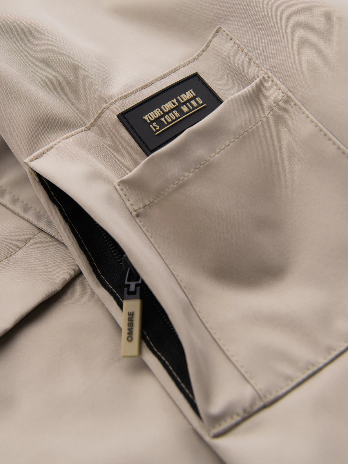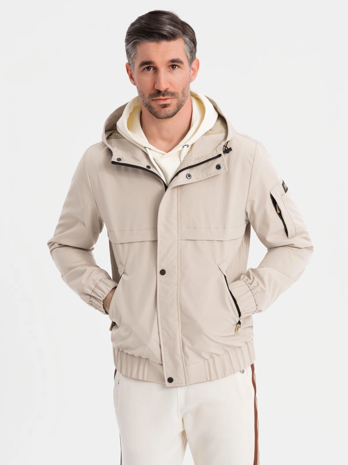 Funkcjonalna męska kurtka przejściowa z kapturem – beżowa V3 OM-JANP-0225
