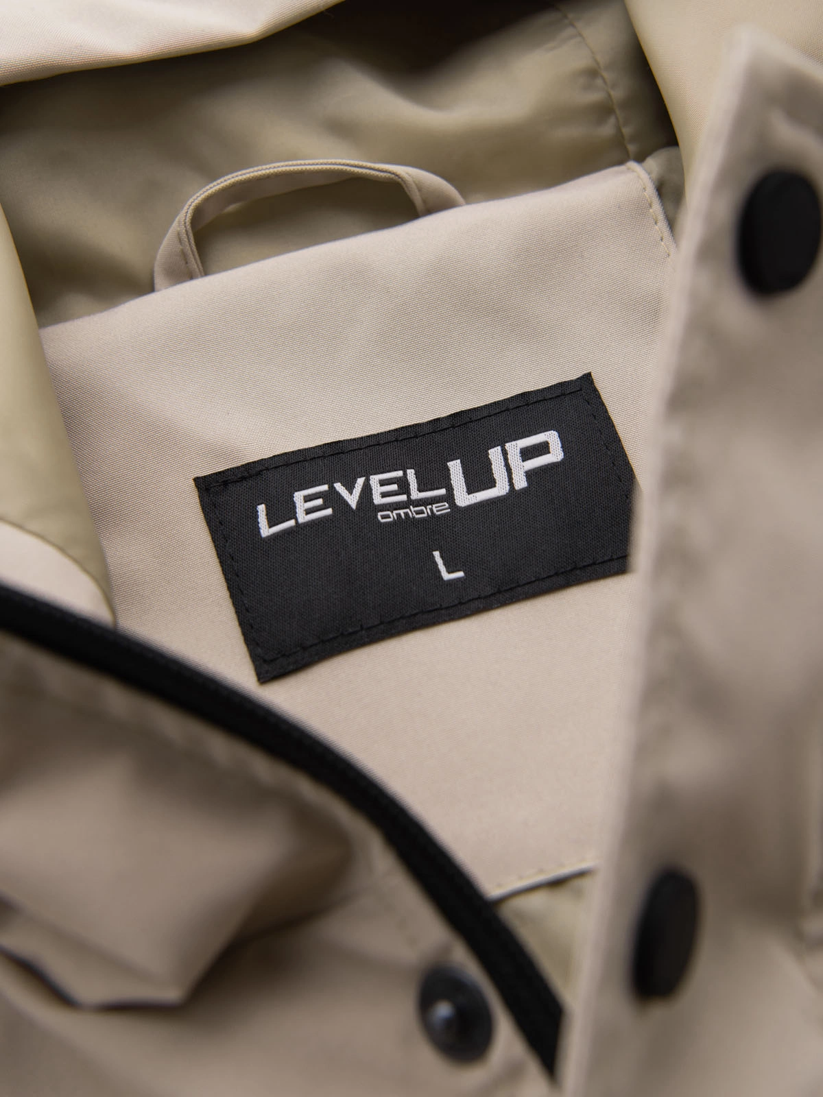 - Funkcjonalna męska kurtka przejściowa z kapturem – beżowa V3 OM-JANP-0225