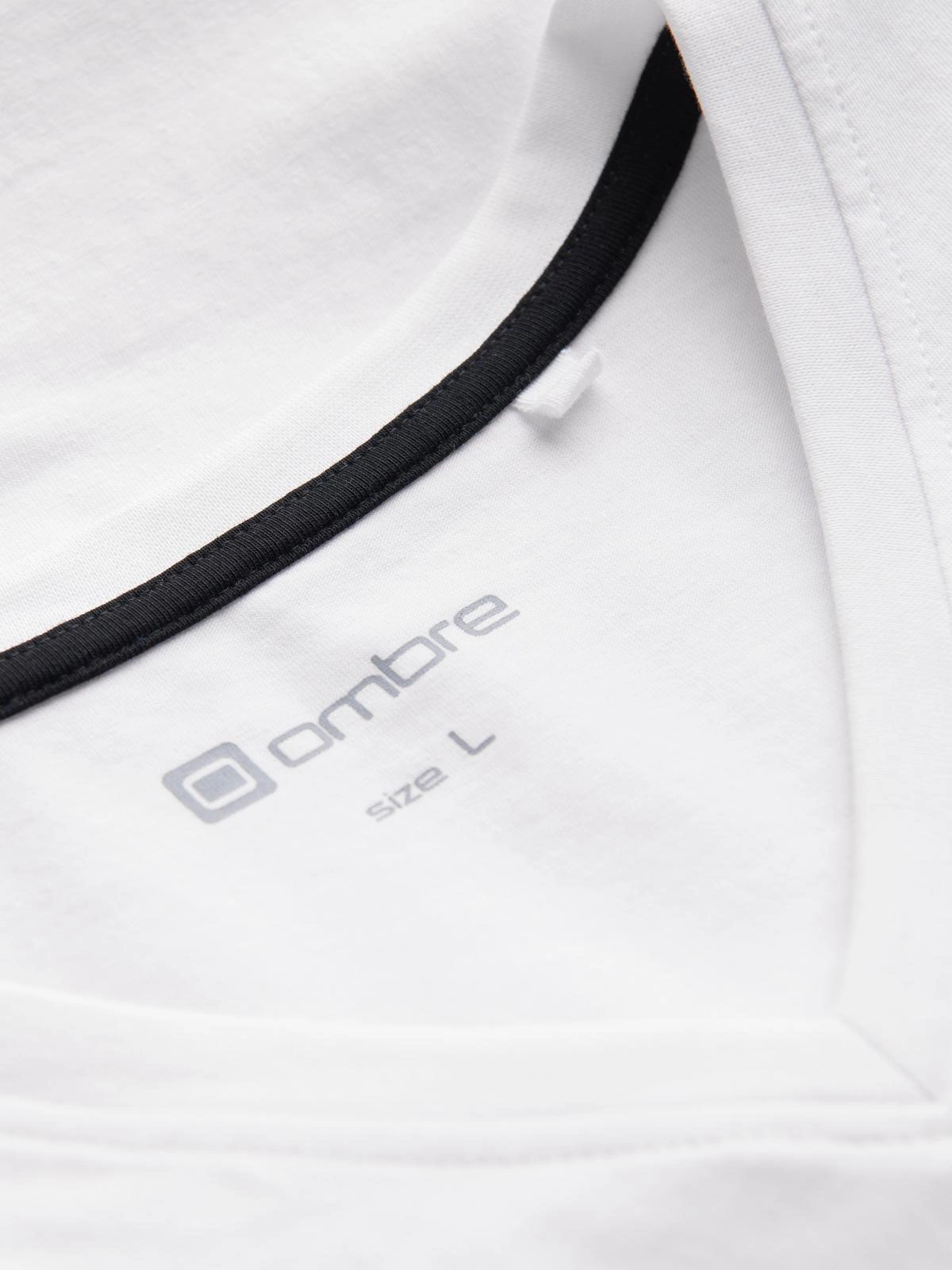 - Komplet koszulek z dekoltem V i elastanem oraz subtelnym logotypem 3-pak – 3x biały V2 Z100