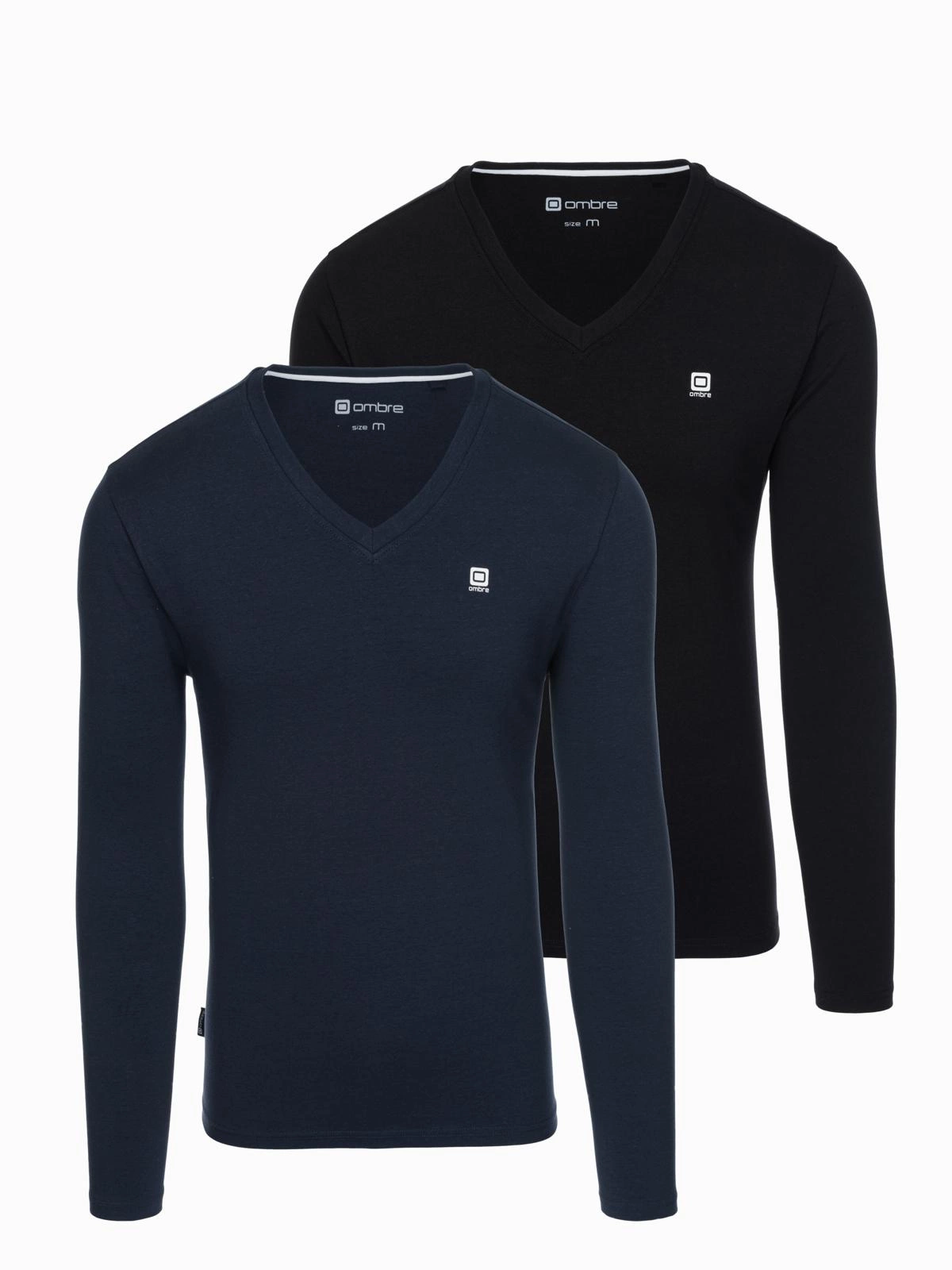- Komplet męskich longsleeve'ów SLIM FIT z dekoltem typu V i logotypem 2-pak – mix granatowy/czarny V3 Z103