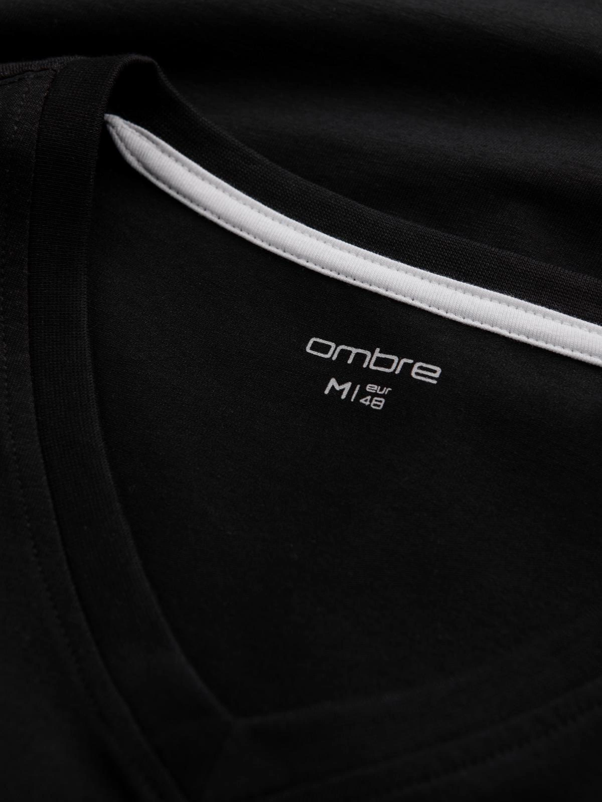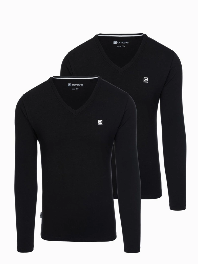 Komplet męskich longsleeve'ów SLIM FIT z dekoltem typu V i logotypem 2-pak – 2x czarny V5 Z103