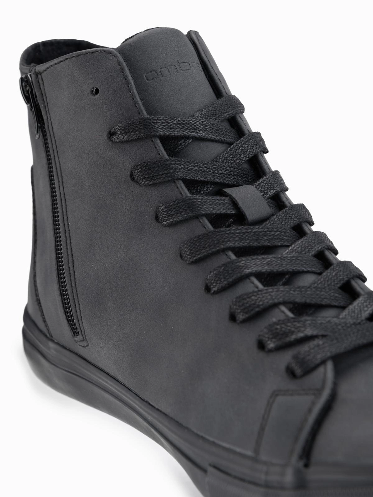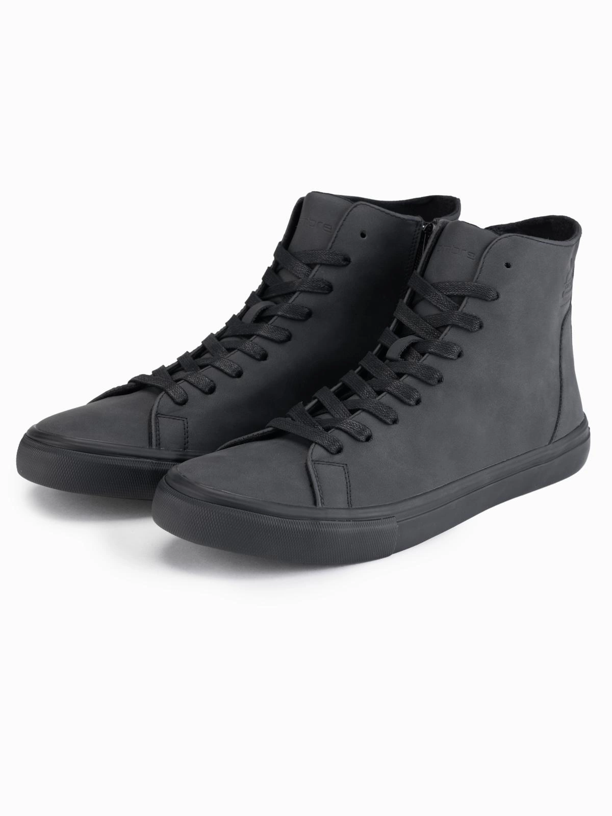 Wysokie męskie trampki z matową fakturą i wytłaczanym logo – czarne V1 OM-FOTH-0185