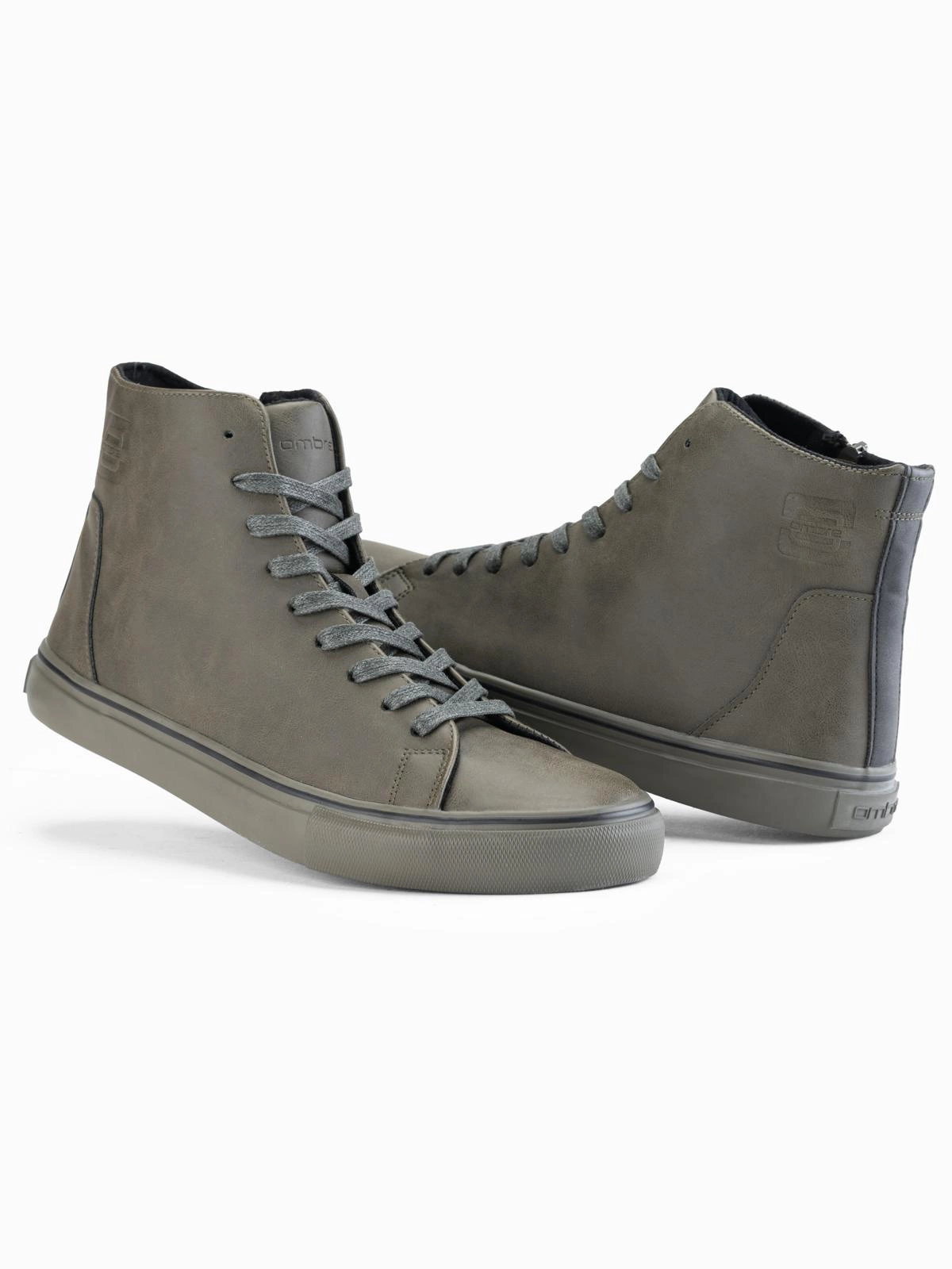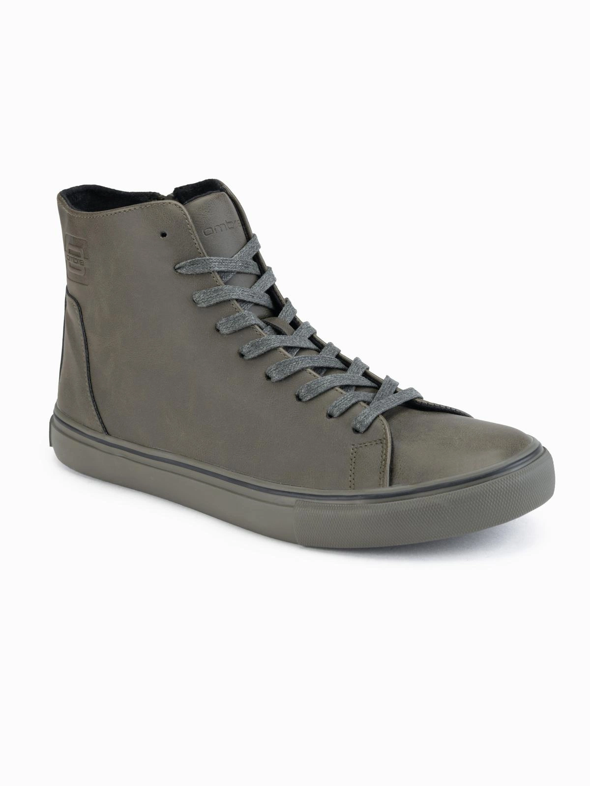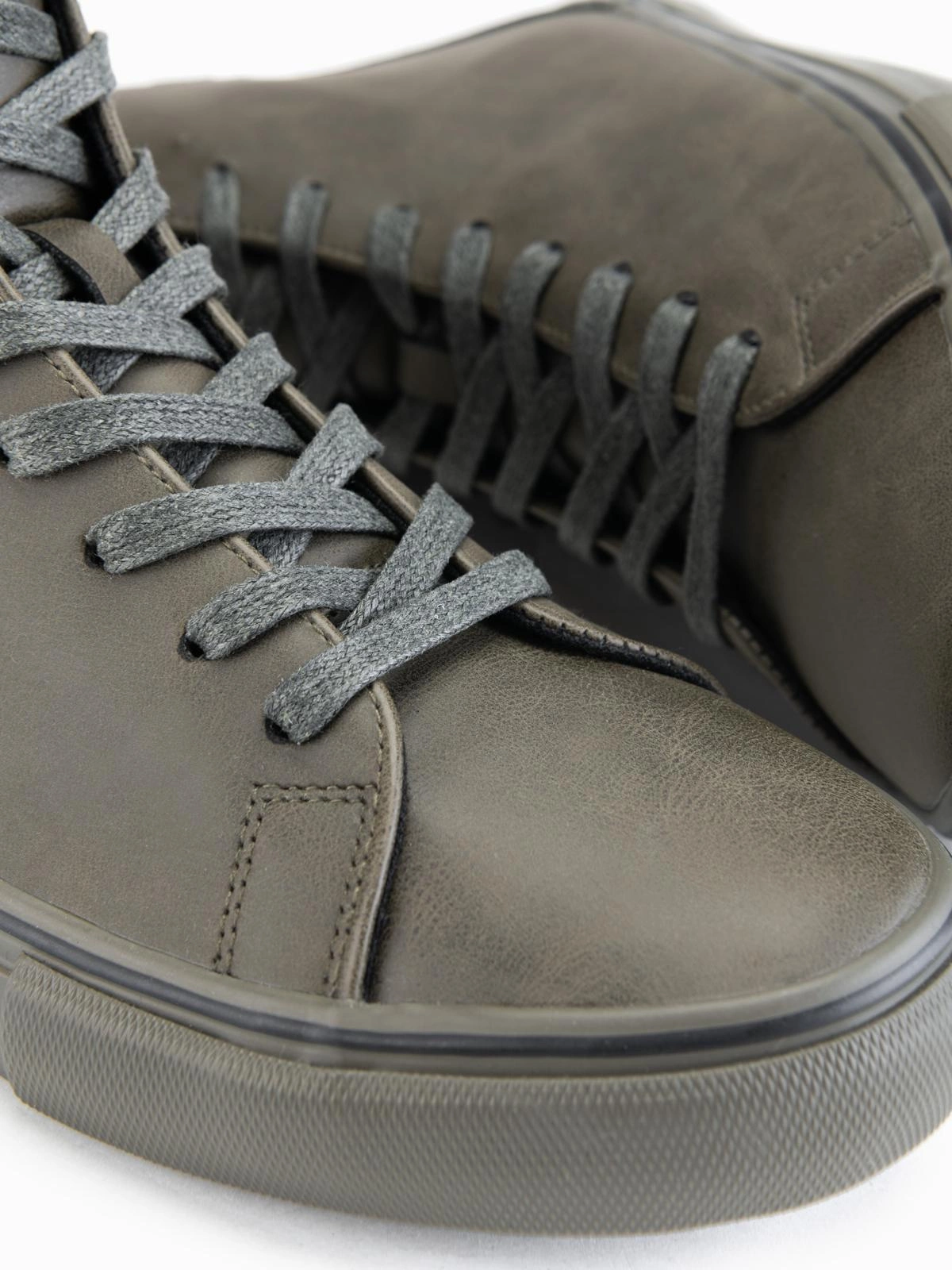Męskie wysokie trampki z matową fakturą i wytłaczanym logo – ciemnooliwkowe V2 OM-FOTH-0185