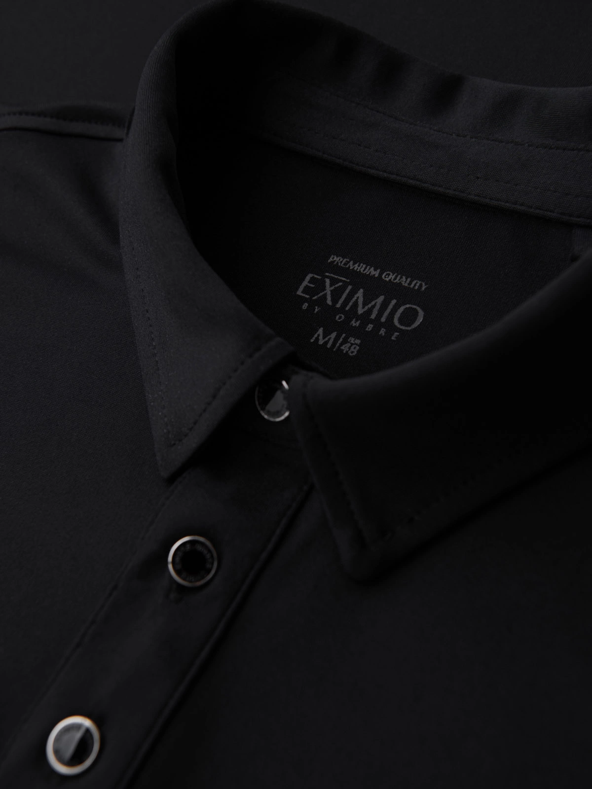 Stylowa męska koszulka polo z elastycznej tkaniny – czarna V1 OM-POSS-0150
