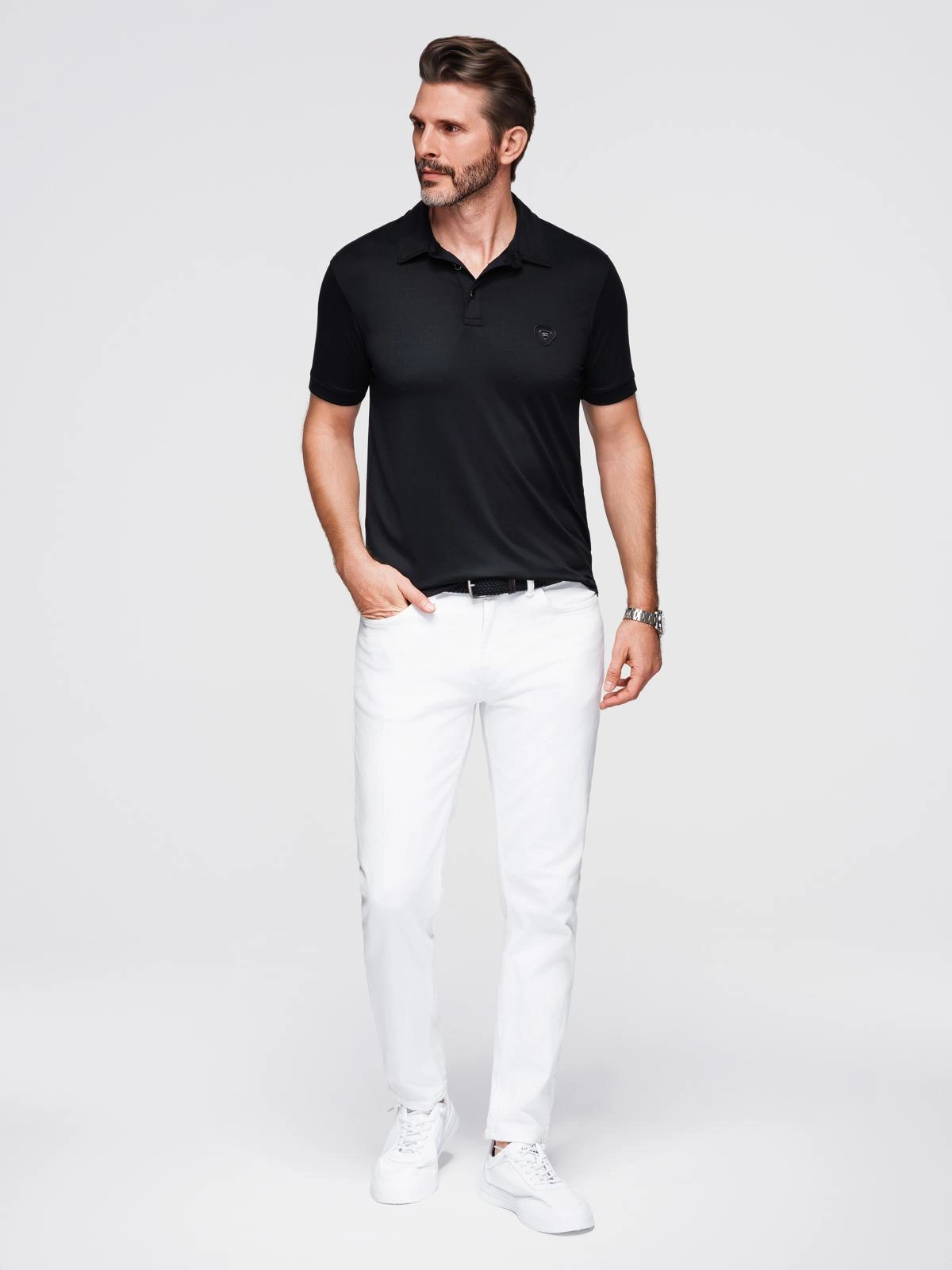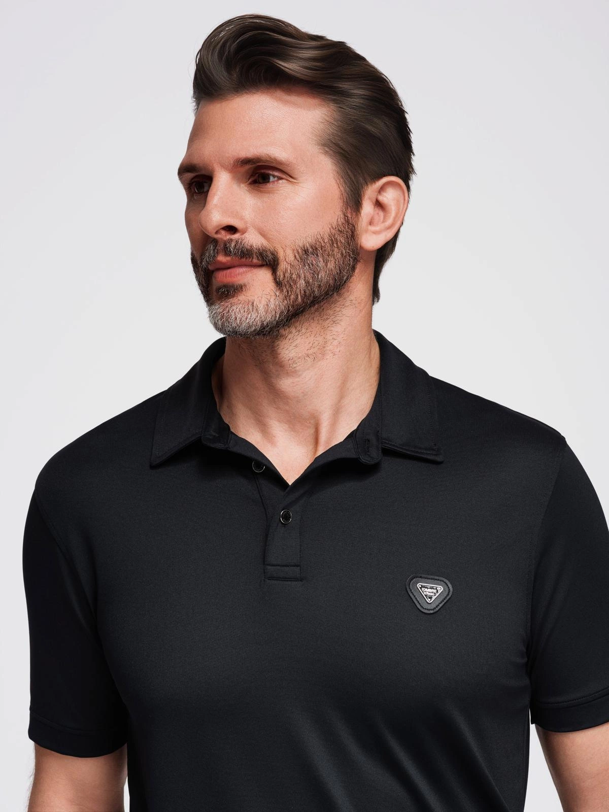 - Stylowa męska koszulka polo z elastycznej tkaniny – czarna V1 OM-POSS-0150