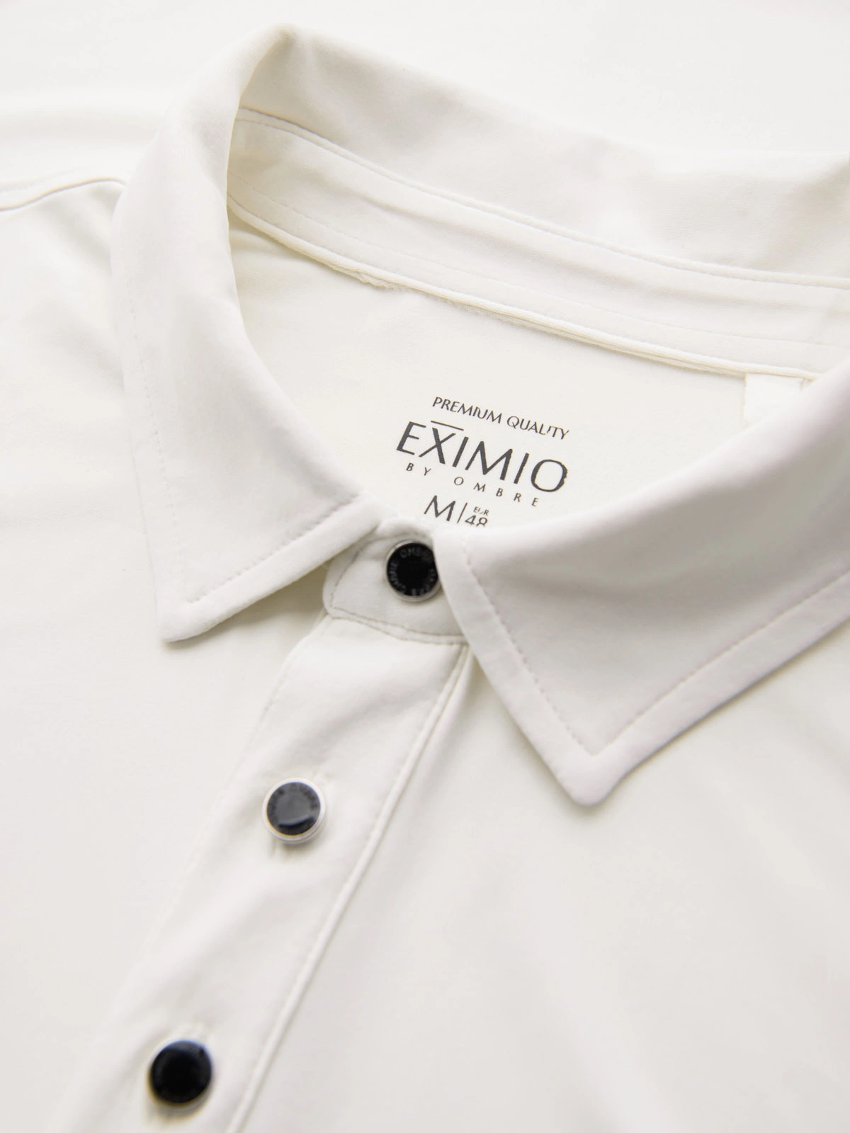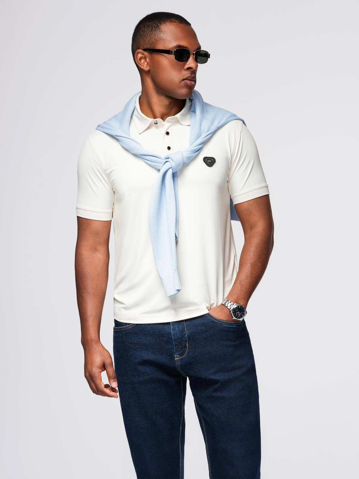 Męska stylowa koszulka polo z elastycznej tkaniny – kremowa V2 OM-POSS-0150