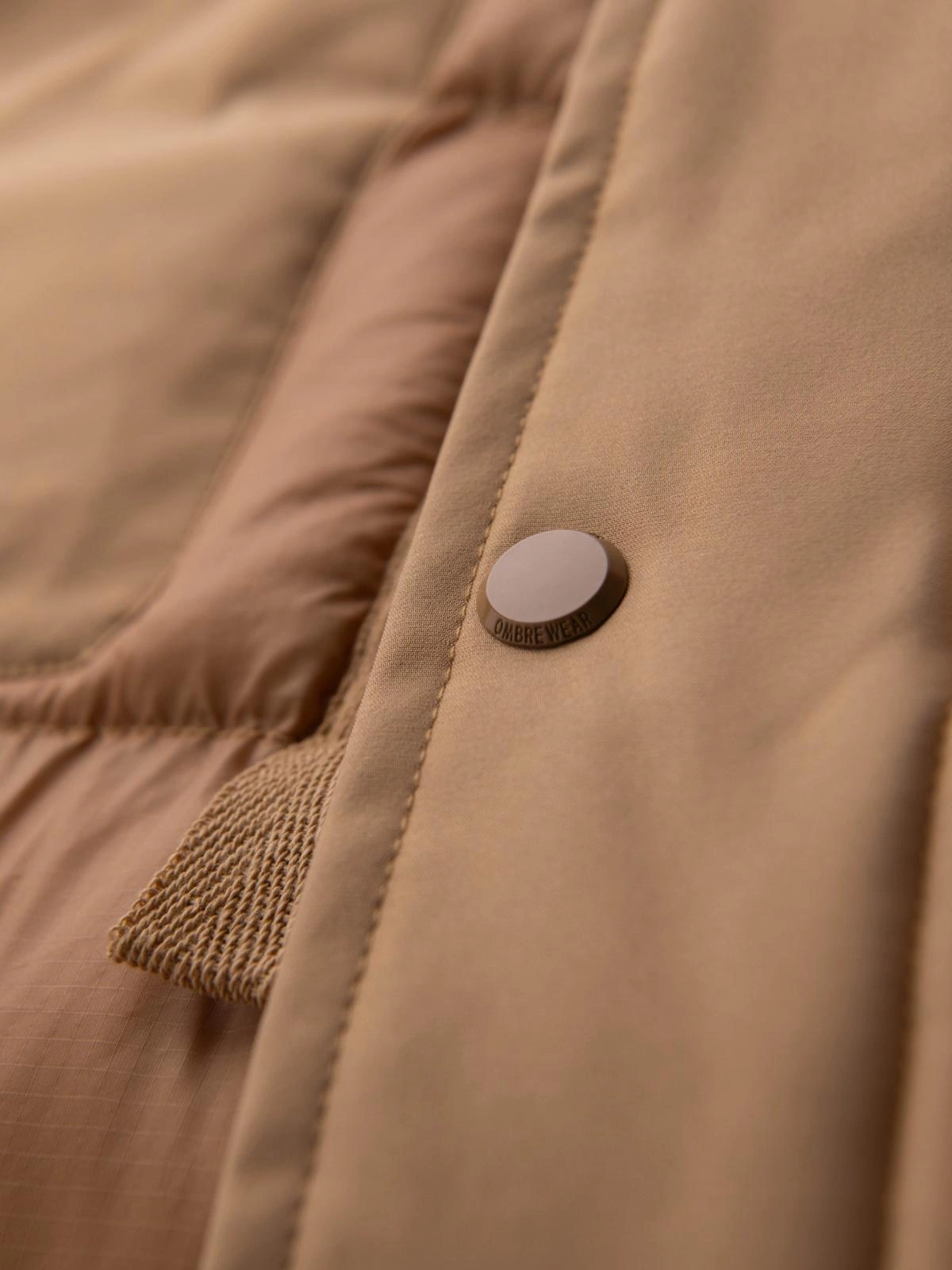 Długa pikowana kurtka męska z dużymi kieszeniami – beżowa V2 OM-JALJ-0308