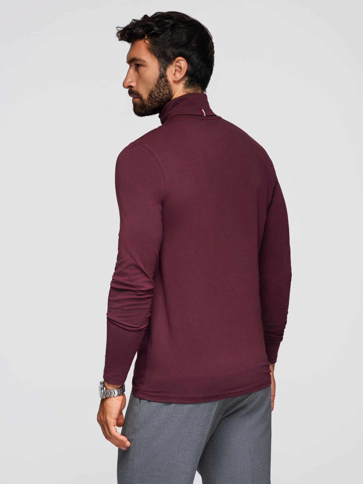 Longsleeve męski gładki z golfem - bordowy V6 OM-LSCL-0130