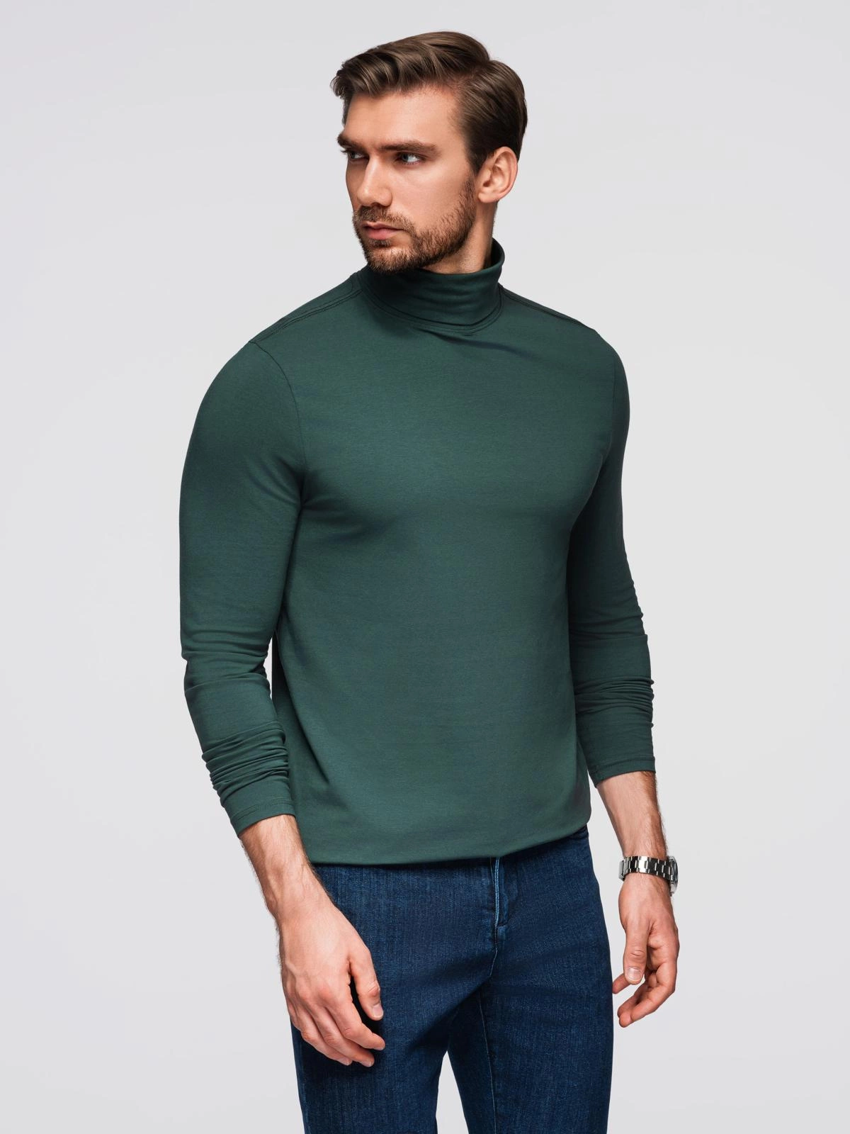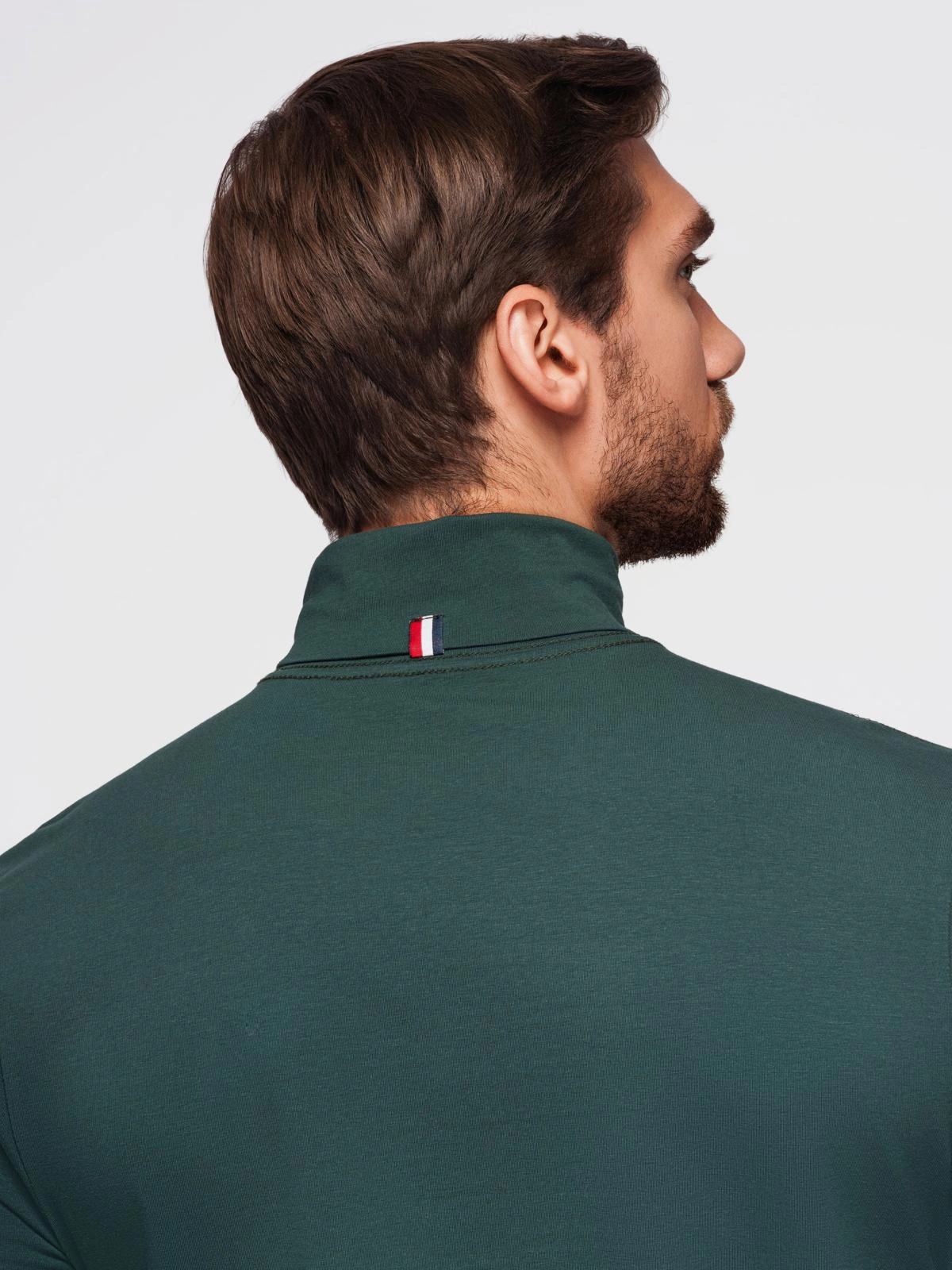 Męski longsleeve gładki z golfem - ciemnozielony V7 OM-OM-LSCL-0130