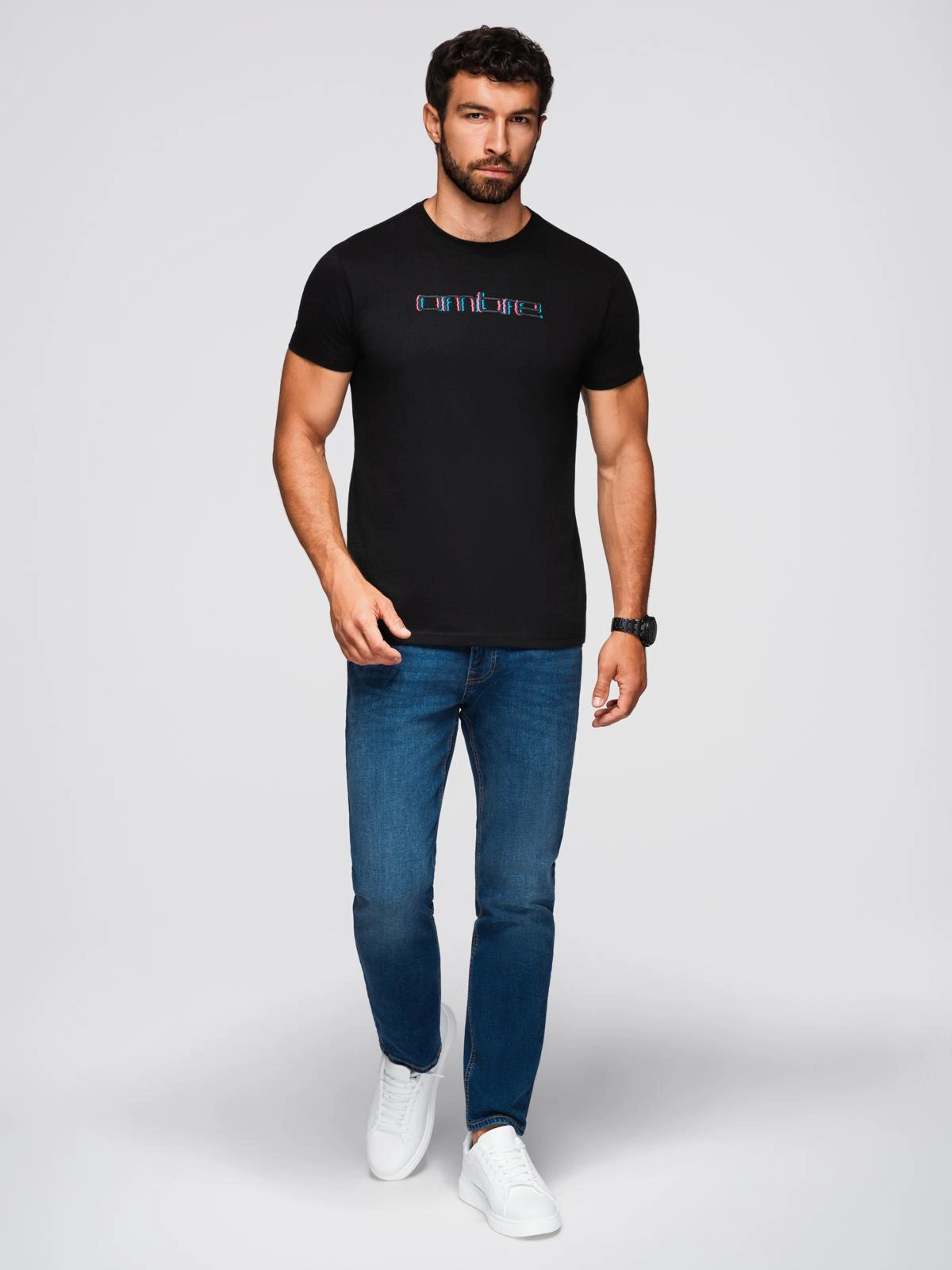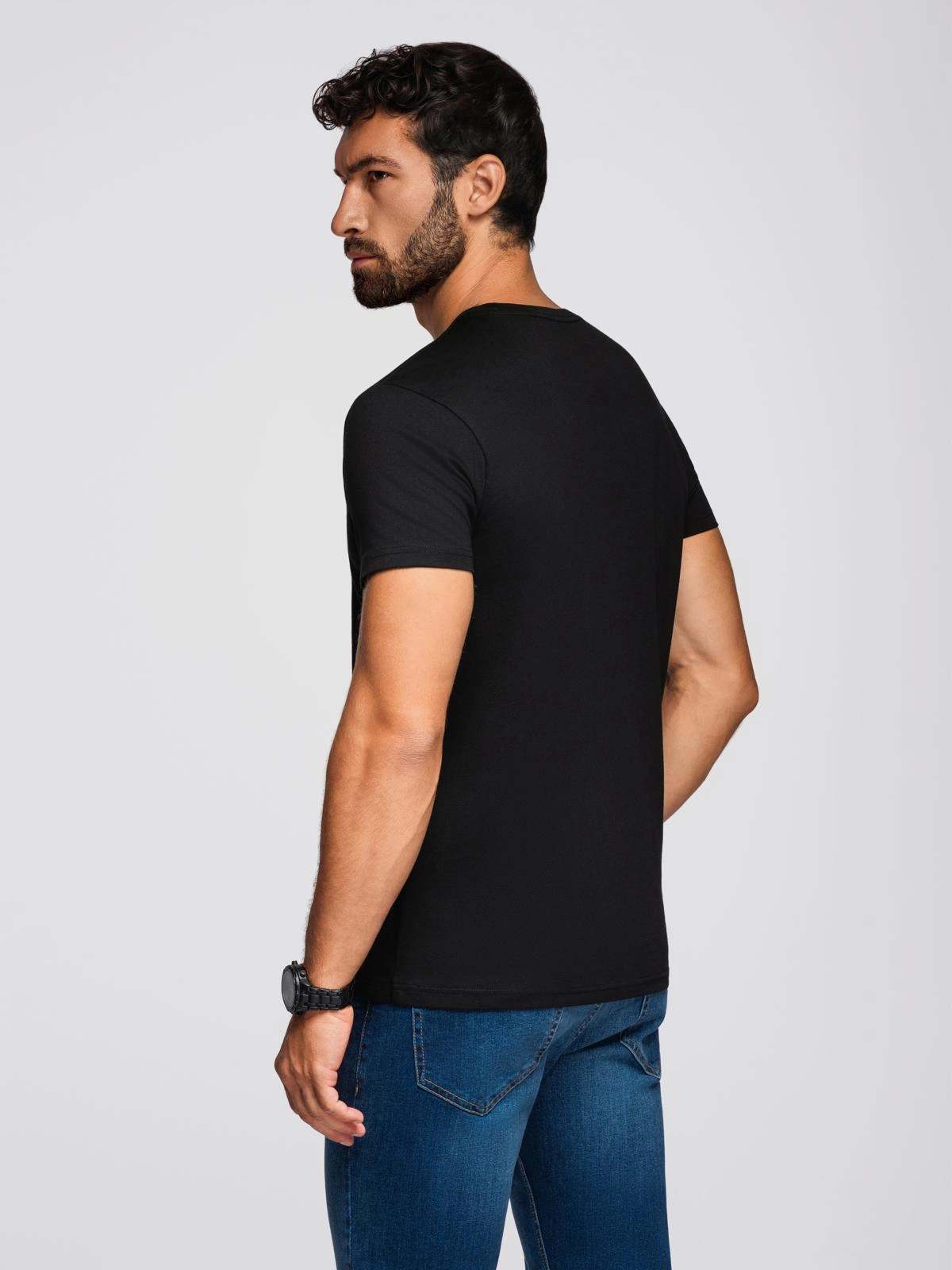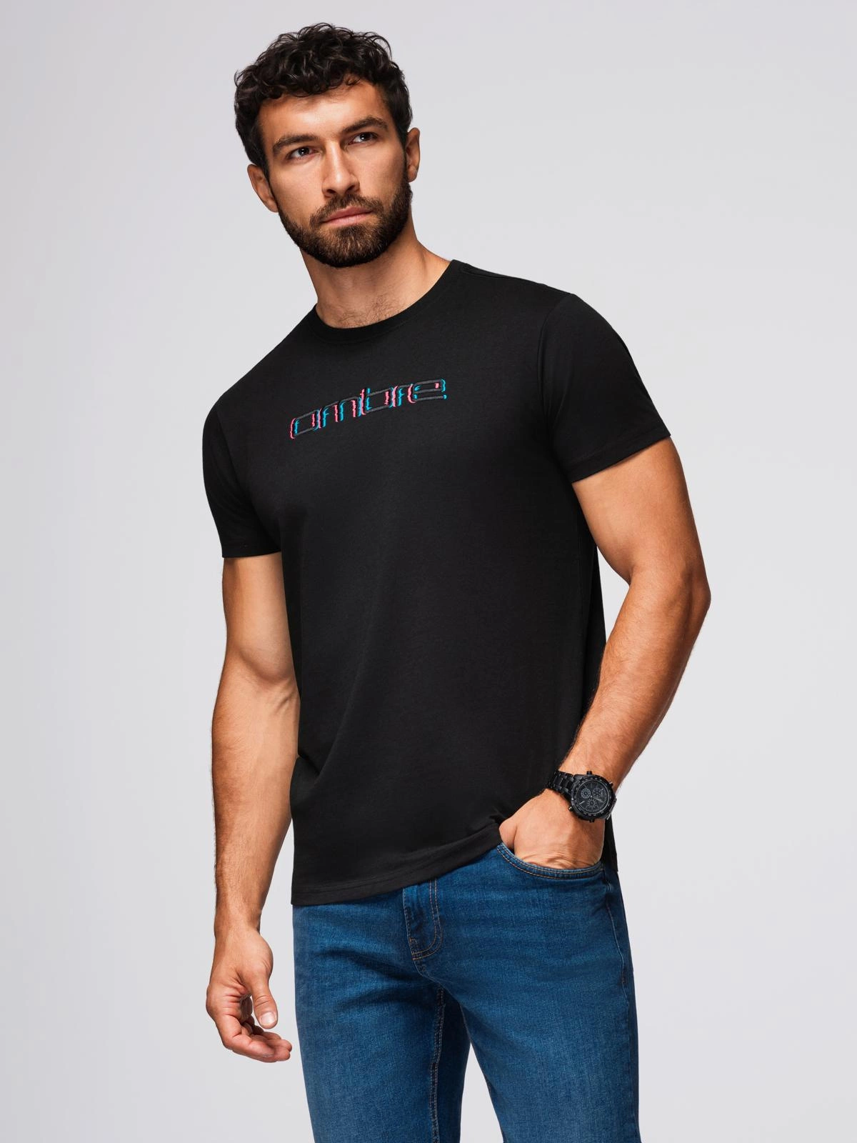 - Męski t-shirt z haftem na klatce piersiowej – czarny V1 OM-TSPT-0248