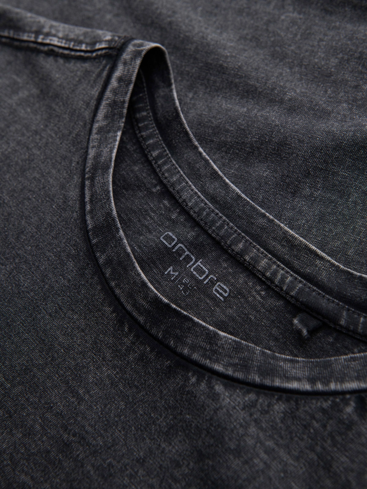 T-shirt męski z efektem sprania – czarny V1 OM-TSWT-0116
