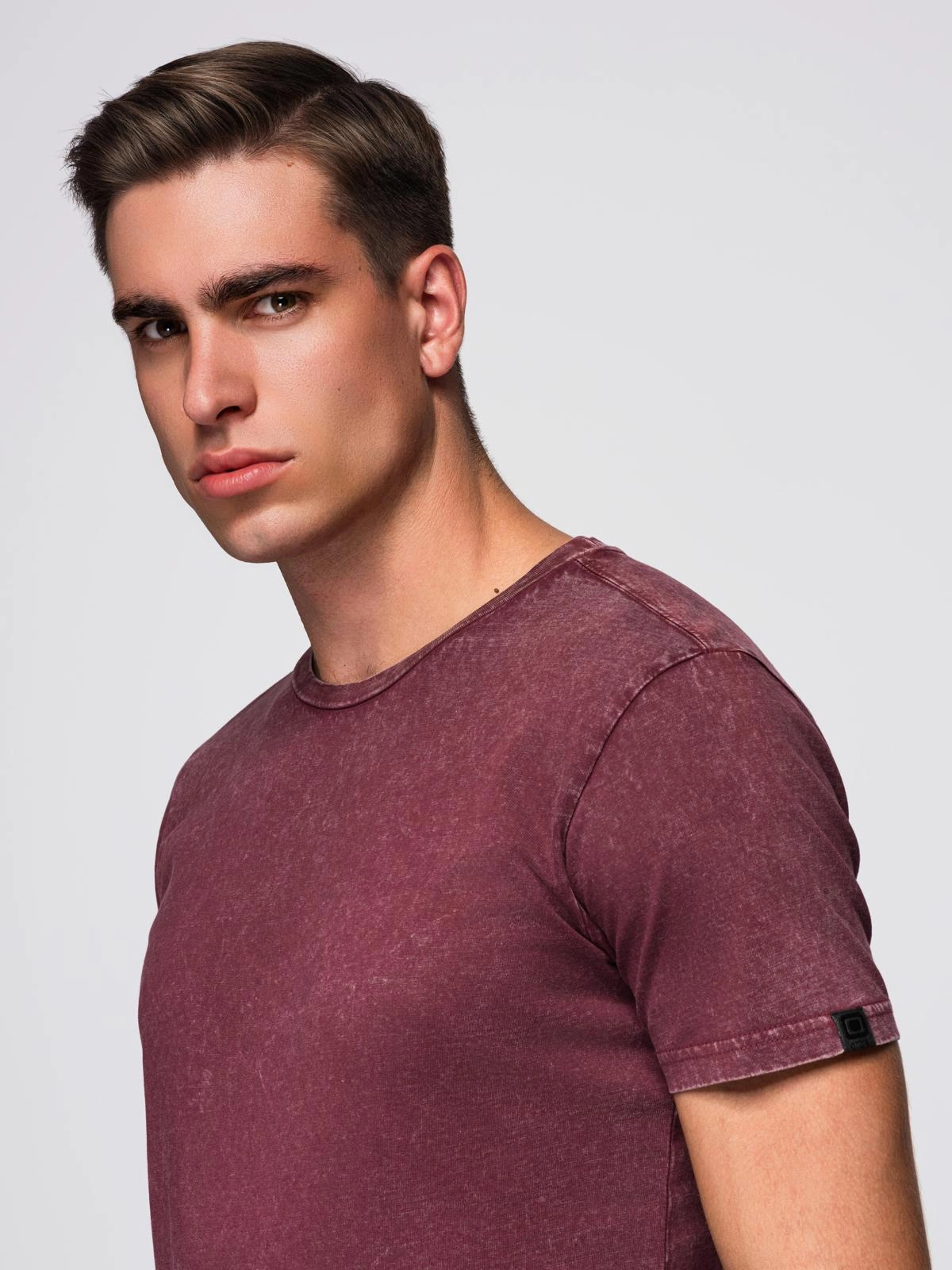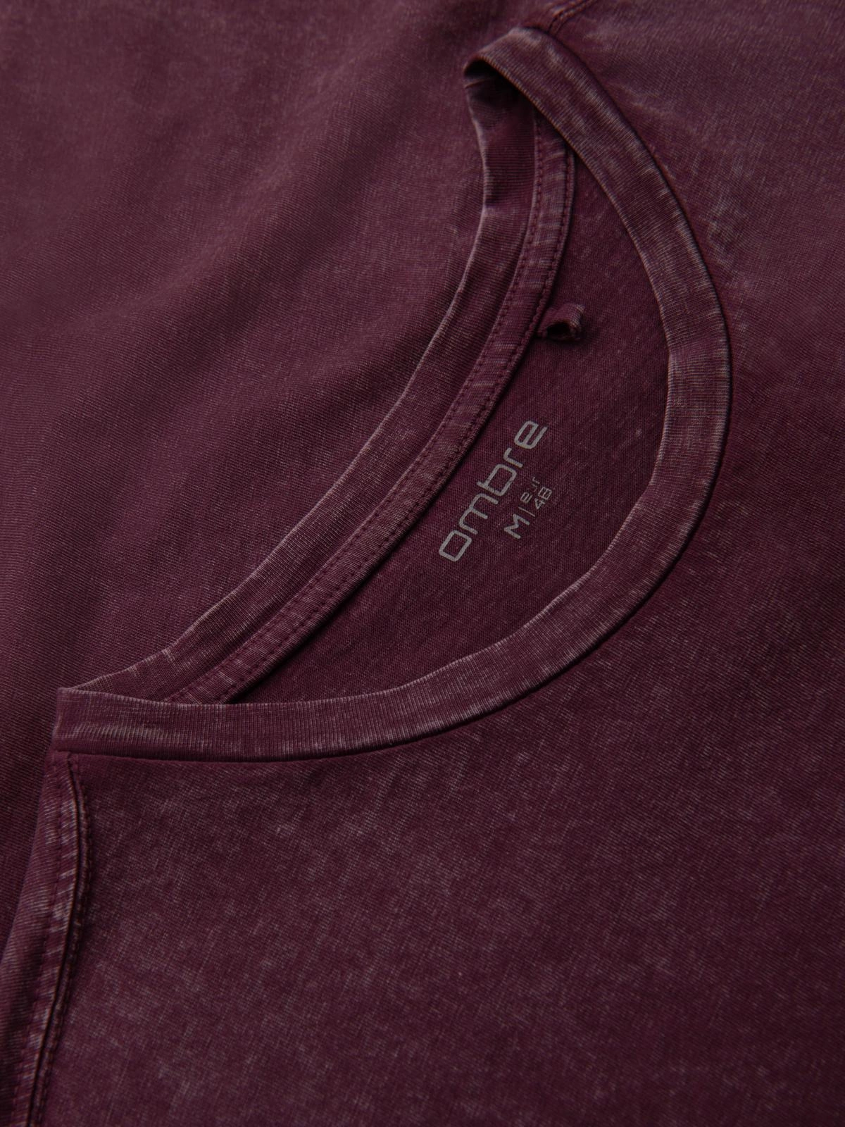 T-shirt męski z efektem sprania – burgundowy V3 OM-TSWT-0116