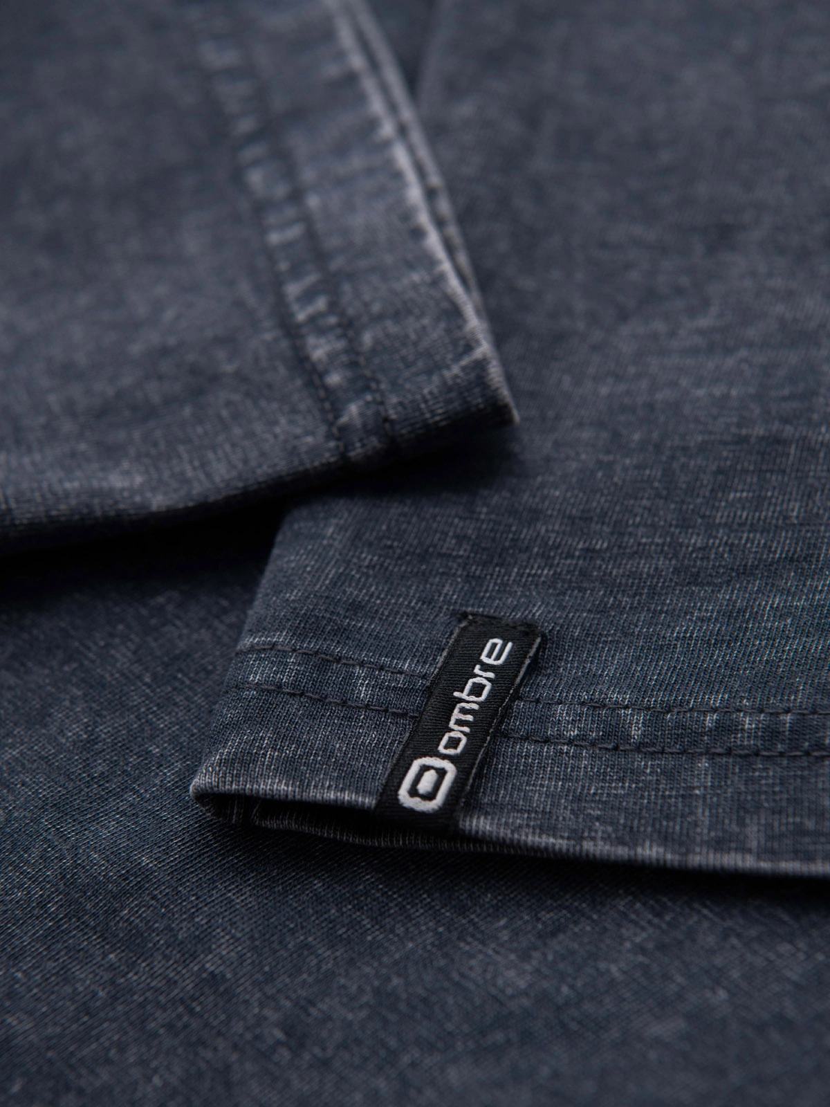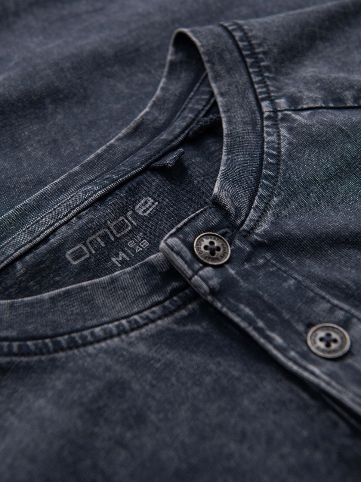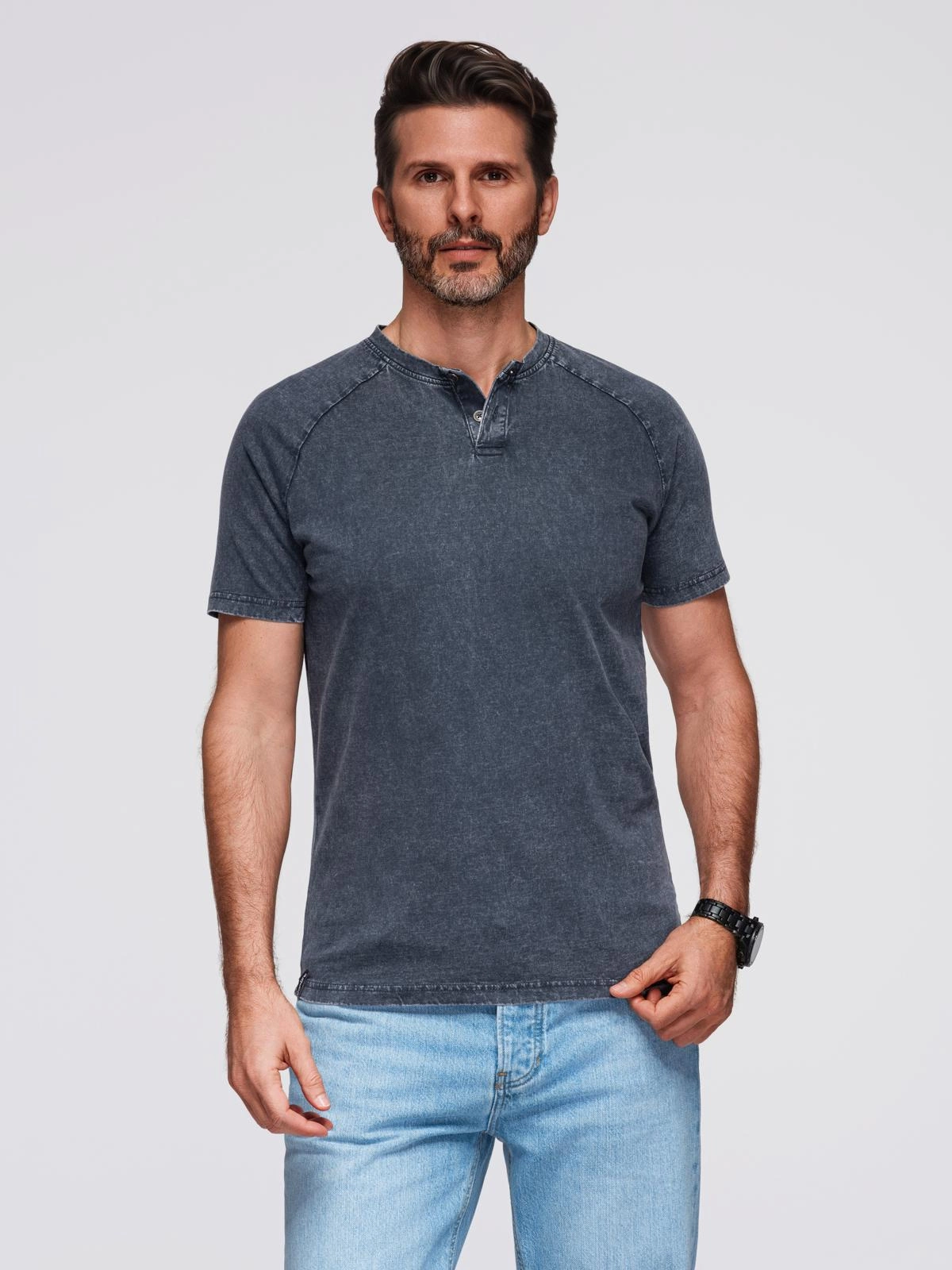 - Męski t-shirt z efektem sprania i guzikami przy dekolcie – granatowy V2 OM-TSWT-0150