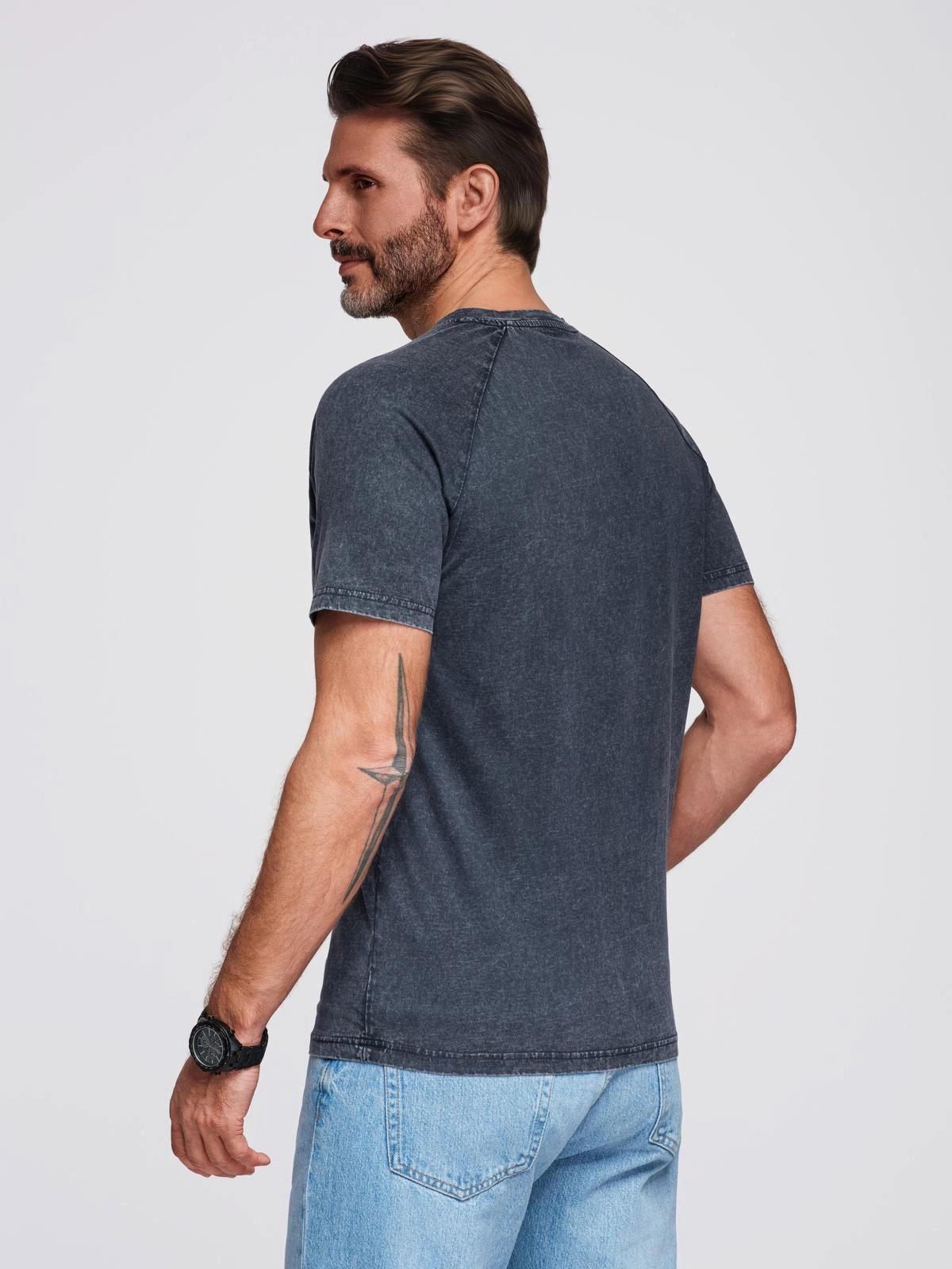 Męski t-shirt z efektem sprania i guzikami przy dekolcie – granatowy V2 OM-TSWT-0150