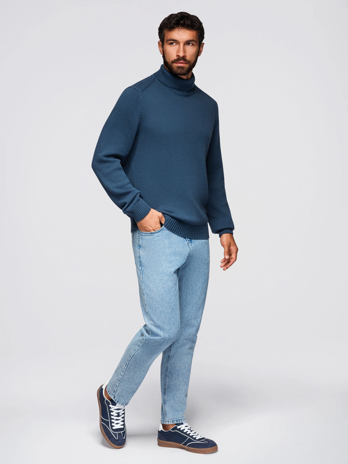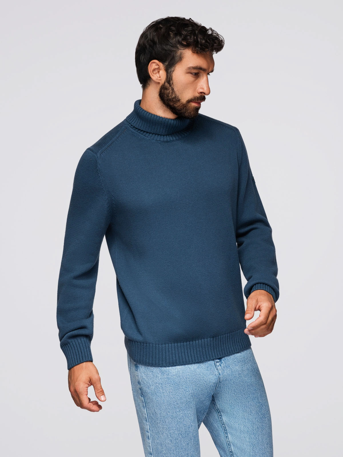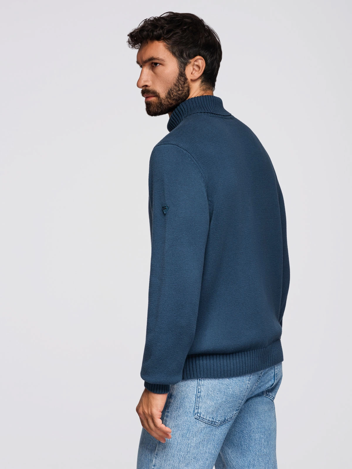 Męski golf sweter z dzianiny – ciemnoniebieski V2 OM-SWTN-0163