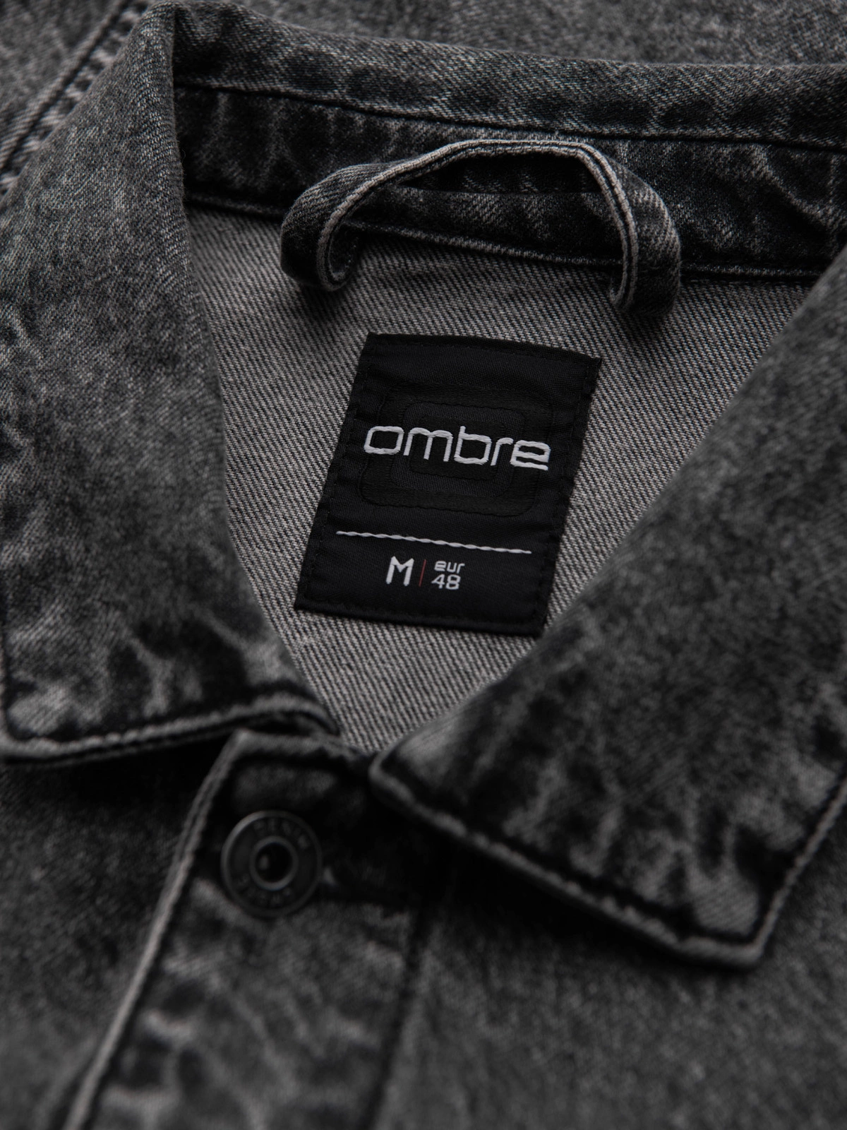 Jeansowa męska kurtka katana z washem – grafitowa V5 OM-JADJ-0219