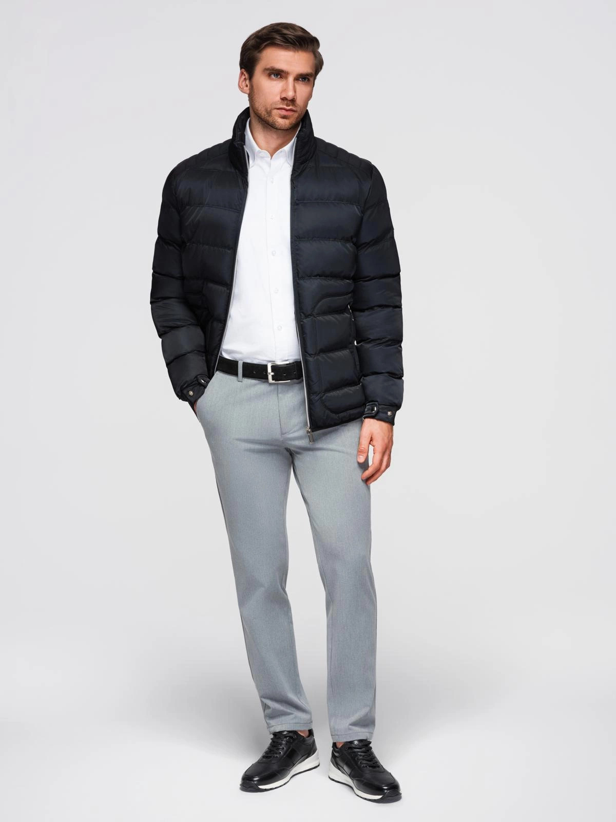 Lekka, a zarazem ciepła kurtka z połyskiem, która łączy elegancję z praktycznością. Jej geometryczne pikowanie i stójka z zamkiem nadają jej nowoczesnego charakteru, a wyraziste dodatki podkreślają męski styl. Idealna na chłodniejsze dni – zarówno do miejskich, jak i casualowych stylizacji – łączy komfort, ochronę i styl.